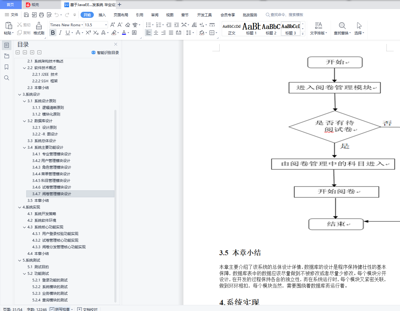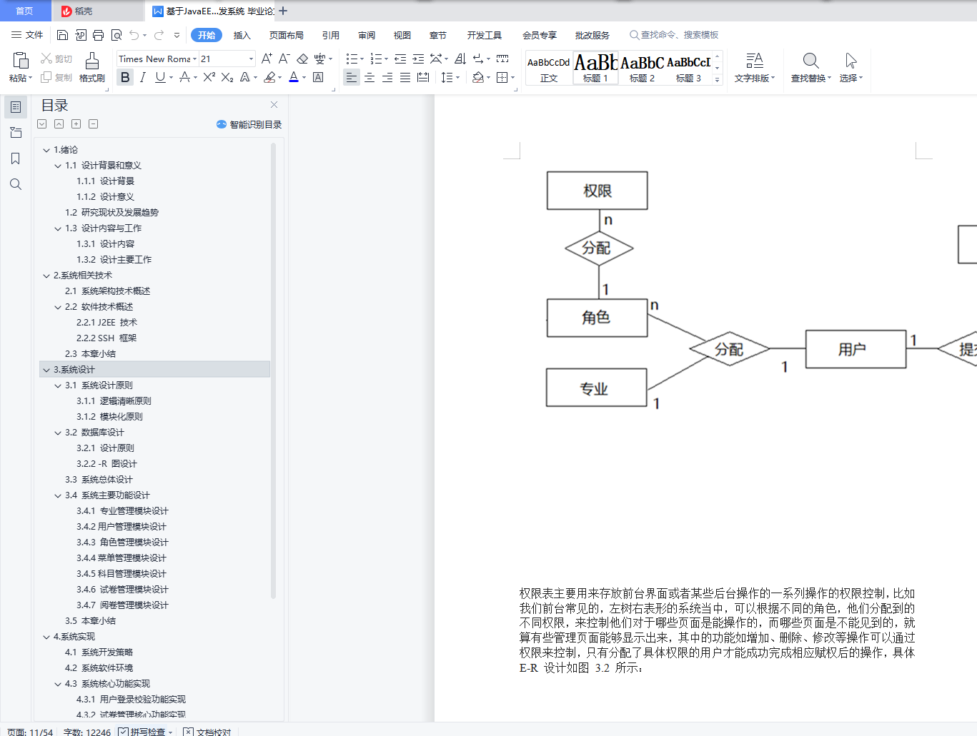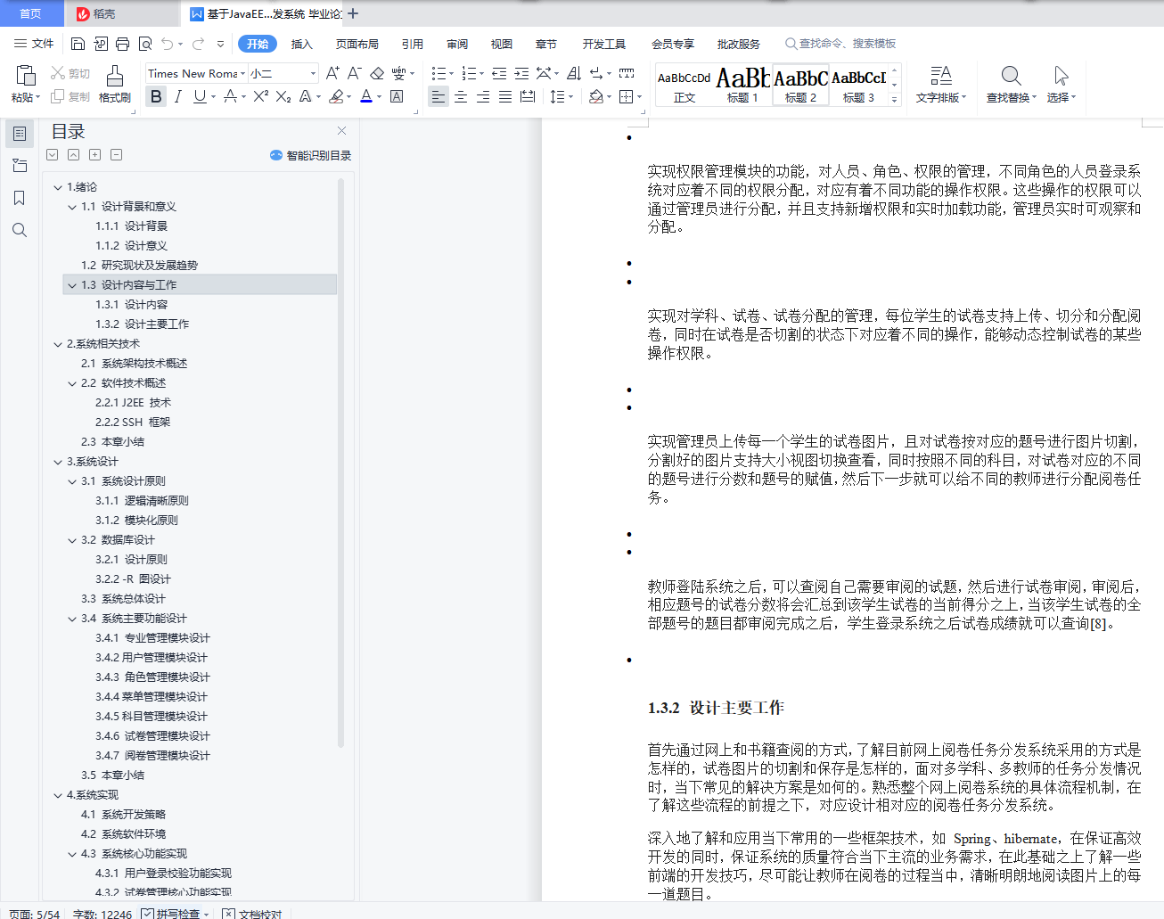 目录1.绪论 21.1 设计背景和意义 21.1.1 设计背景 21.1.2 设计意义 21.2 研究现状及发展趋势 31.3 设计内容与工作 31.3.1 设计内容 41.3.2 设计主要工作 42.系统相关技术 52.1 系统架构技术概述 52.2 软件技术概述 62.2.1 J2EE 技术 62.2.2 SSH 框架 72.3 本章小结 83.系统设计 83.1 系统设计原则 83.1.1 逻辑清晰原则 83.1.2 模块化原则 83.2 数据库设计 93.2.1 设计原则 93.2.2 -R 图设计 93.3 系统总体设计 173.4 系统主要功能设计 193.4.1 专业管理模块设计 193.4.2用户管理模块设计 203.4.3 角色管理模块设计 223.4.4菜单管理模块设计 233.4.5科目管理模块设计 253.4.6 试卷管理模块设计 263.4.7 阅卷管理模块设计 283.5 本章小结 304.系统实现 304.1 系统开发策略 304.2 系统软件环境 314.3 系统核心功能实现 314.3.1 用户登录校验功能实现 314.3.2 试卷管理核心功能实现 324.3.3 阅卷分发管理核心功能实现 354.4 本章小结 375.系统测试 375.1 测试目的 375.2 功能测试 375.2.1 登录功能的测试 375.2.2 系统模块的测试 425.2.3 业务模块的测试 485.2.4 查询模块的测试 521.绪论1.1 设计背景和意义1.1.1 设计背景在改革热潮兴起的当下,教育上的改革首当其冲,而在考试、阅卷评分模式上的改革对于教育改革至关重要,而基于网络技术而建立起来的网上考试和阅卷系统正在被越来越多的教育机构所重视。目前,较多经济不发达的地区,依然采用传统的考试阅卷方式。传统方式一般都存在着考试流程繁琐、时效性不高、阅卷的速度慢、效率低、录分数和统计分析较为困难,阅卷的时候无法保证阅卷的质量和潜在的公平性隐患。对于一些科目成绩的查询,往往只能查询到近期的,时间范围较长的成绩信息往往早已丢失,这对某些教学的评判和最终的鉴定造成了一定的影响[1]。另一方面,对于最终成绩的评判分析经常处于总分和单科分数的层次上,无法对其中潜在的规律加以分析和探索,进而更加无法对追寻更好的教学方法提供更好的数据分析的支持。随着目前计算机相关的技术飞跃发展,使得这些传统阅卷带来的弊端能够得以很好的规避,网上阅卷的方式正在被越来越多的教育方所接受和普及,并逐渐成为教育考试阅卷的主流发展方向。当下主要利用目前较为先进的数据库技术、计算机网络技术、和密码加密认证技术加以整合,利用计算机完成身份认证、网上考试、试卷扫描、试卷图片的切割、阅卷任务分发、成绩查询等模拟现实生活中的真实考试过程,完成了对学生的测评和考核。而在这一过程当中,试卷的审阅,在现实的实践过程当中,总是会出现分配不均、分数统计不到位、最终学生成绩查询出现误差,这时一套能够比较好处理试卷任务分发的系统成为了整套网上阅卷系统中不可或缺的一部分[2]。1.1.2 设计意义该系统提高了阅卷的效率,以前采用人工方式阅卷,需要将试卷装订起来,然后分发给每一教师去评阅,费时费力,而此时以网络技术为支持,使阅卷的传统需要手工的方式完成的任务,变成了只需要让评阅教师点击鼠标等简单的操作就都能完成的任务,大幅度地提高了整体阅卷的效率。同时在保证效率的同时,网上阅卷还能够保证阅卷的质量,网上阅卷系统可以对试卷的题目进行更加细致的评分和查询,且当多位阅卷老师对同一道题给出的分数出现较大的差距时,可返回重新评阅,直至阅卷的偏差降低至接近零,阅卷的质量因而大幅提高。另外对于教学上的帮助上来说,网上阅卷便于数据统计分析进而方便指导教学者教学。阅卷完成之后,系统可以提供客观题和主观题的成绩合并功能,并且根据不同学校制定的统计标准和相应的统计内容,进行相应考生成绩的统计分析和评价工作。网上阅卷的方式在某种程度上,也能上学生更快地适应中、高考的答题形式,熟悉和适应这种模式能够在最终的考试当中提高自己的答题成绩。1.2 研究现状及发展趋势在当下的国内来看,仍然存在很多地方,采用人工阅卷的方式,需要将试卷一一批改,不仅效率低下,而且出错的概率大,而且需要等待较长的时间才能查询分数,效率低下,耗费人力物力;且当下网上阅卷系统的使用,主要采用高速扫描仪,批量对提交的试卷进行扫描,扫描后得到的试卷图片再由专门的图片切割机器进行切割,然后依次分配给不同的教师进行试卷评阅,实现整个过程流程化,规范化。从整体上来看,目前网上阅卷的形式已经受到越来越多高校的接纳,因为该形式以流程简介、准确、高效的特点,极大地减少了老师们的日常工作量,在某种程度上规避了人工阅卷会带来的各种错误的发生,且其具备的公正、客观和效率优势不仅促进了阅卷信息化的发展,同时也得到社会上的一致好评[3]。在我国,中考和高考网上的阅卷方式,主要采用答卷和试卷相分离的操作方法,利用高速文档扫描仪将答卷扫描成图像,通过计算机对客观题进行自动判分统计,同时结合每学科的教师通过在网络在各自的计算机上对答卷的图片对应的主观题进行评分[4],然后由系统进行主观题和客观题的分数合成与成绩校验,并且按照要求对考试成绩进行质量分析和等级划分。但是因为中、高考的网上阅卷系统,它的建设投资非常的巨大,并且该系统对运行环境的要求非常高,同时需要配套地使用高昂的答题卡,因此该系统无法在广大的中小学校大规模地推广使用。所以,作为教育的先锋广大中小学校该如何使用网上阅
