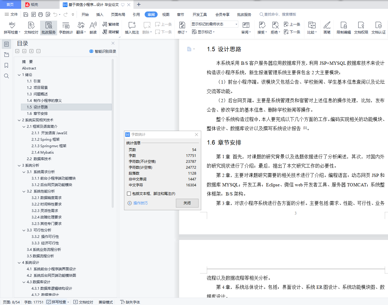 摘 要据教育相关数据统计,随着科教兴国战略政策的实施和人才强国战略的实施,在校大学生人数近几年在韩国每年都在增加,不断增加,各个学院也在不断扩大,如果信息量输入简单,就很难提高新生注册管理的效率。微信小程序免安装、快捷、简单的特性已经被众多应用开发者广泛接受和支持。基于此,作者设计了一个基于微信小程序的新生报到系统。一系列报送流程的信息化是促进高校新生入学报到流程、探索和完善大学校园信息化普及化的有利途径。基于微信小程序的新生报到系统采用MVC三层模型作为开发结构,降低代码耦合度,SSM开发框架实现后台网页端的逻辑,使用MySQL做管理.存储系统数据,使用Bootstrap完成用户交互页面的开发,结合jQuery技术和Ajax技术实现访问页面的非刷新操作,使用JSON格式进行客户端和服务器之间的数据传输。本论文开发的新生报到系统可以有效节省新生报到和管理的时间,为学校迎新工作的顺利开展提供信息支持。关键词:新生报到;报到系统;小程序;SSM;MySQLAbstractAccording to education related statistics, with the implementation of the strategy of rejuvenating the country through science and education and the implementation of the strategy of talent power, the number of college students in Korea has been increasing every year in recent years, and various colleges are also expanding. If the information input is simple, it is difficult to improve the efficiency of freshmen registration management.Wechat small program free installation, fast, simple features has been widely accepted and supported by many application developers.Based on this, the author designed a new registration system based on wechat small program.The informatization of a series of submission process is a favorable way to promote the enrollment process of college freshmen, explore and improve the popularization of university campus informatization.The new registration system based on wechat small program uses MVC three-layer model as the development structure to reduce the code coupling degree, SSM development framework realizes the logic of the background, and uses MySQL for management. Storage system data, using Bootstrap to complete the development of user interaction pages, combine jQuery technology and Ajax technology to achieve non-refresh operation of access pages, using JSON format for data transmission between client and server.The freshman registration system developed in this paper can effectively save the time of freshman registration and management, and provide information support for the smooth development of the school orientation work.Key words: new registration; registration system; small program; SSM; MySQL目 录摘 要 IAbstract II1绪论 11.1 引言 11.2 项目背景 11.3 问题概述 21.4 制作小程序的意义 21.5 设计思路 31.6 章节安排 32系统实现相关技术 52.1框架及语言简介 52.1.1 开发语言JavaSE 52.1.2 Spring框架 62.1.3 Springmvc框架 72.1.4 Mybatis 92.2 数据库技术 93系统分析 113.1 系统需求分析 113.1.1前台小程序端功能模块 113.1.2后台网页端功能模块 123.2 系统性能分析 143.2.1数据精度需求 143.2.2时间特性要求 143.2.3灵活性需求 143.2.4故障处理要求 143.2.5其他专门要求 153.3 可行性分析 153.3.2 操作可行性 153.3.3 经济可行性 153.4系统业务流程分析 163.5数据流程分析 174系统设计 184.1 系统前台小程序端界面设计 184.2 系统后台网页端功能模块图 194.3数据库设计 194.3.1数据库逻辑结构设计 194.3.2 数据表设计 254.3.3 数据库的连接原理 295系统实现 315.1 系统前台小程序端页面实现 315.2系统后台网页端功能实现 325.2.1用户管理实现 345.2.2 校园新闻管理实现 355.2.3 论坛交流管理实现 375.2.4 宿舍楼信息管理实现 385.2.5 班级信息管理实现 395.2.7 学生管理 405.2.8 新生签到管理实现 415.2.9 宿舍分配管理实现 425.2.10 系统管理实现 436系统测试 446.1系统测试目的与意义 446.2测试过程 446.2.1主页面的登录模块测试 446.3其他错误 457总结与展望 46参考文献 47致 谢 49