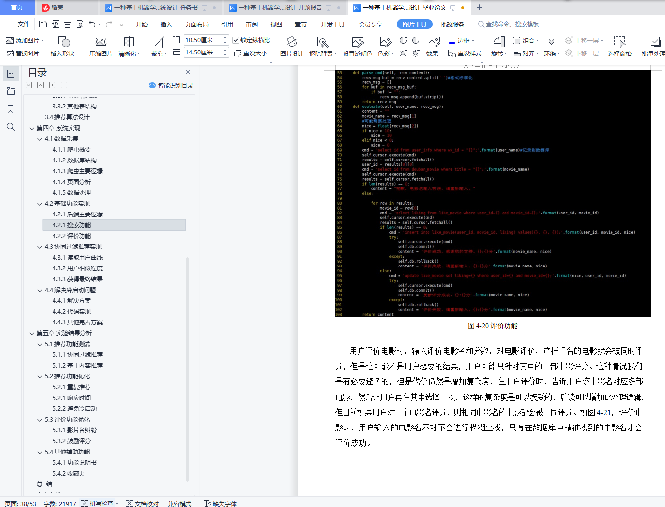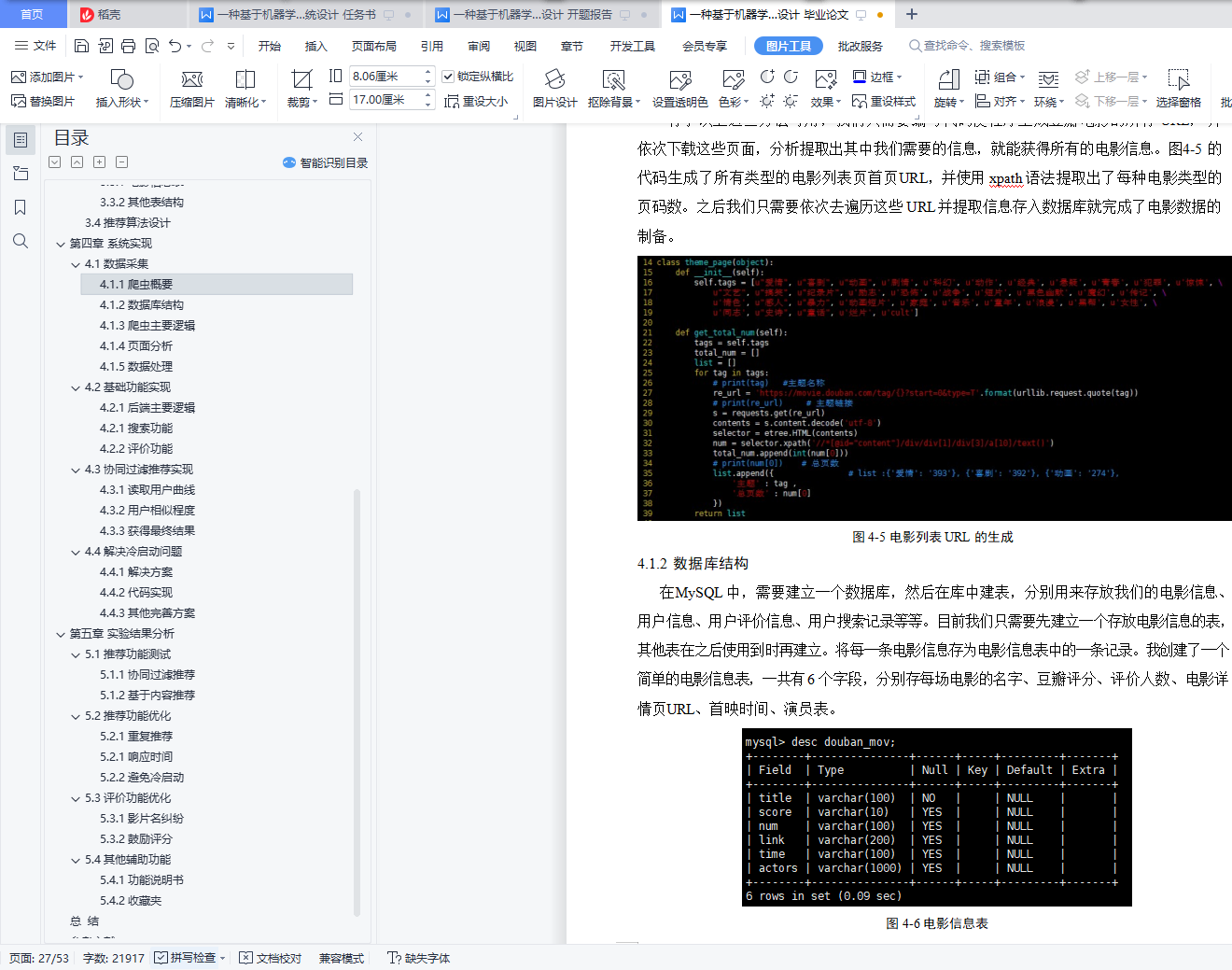 一种基于机器学习的电影推荐系统设计 毕业论文+任务书+开题报告+Python源码及数据库文件+查重检测报告