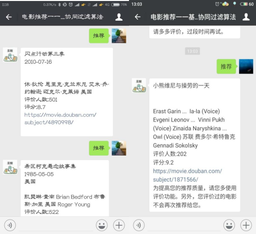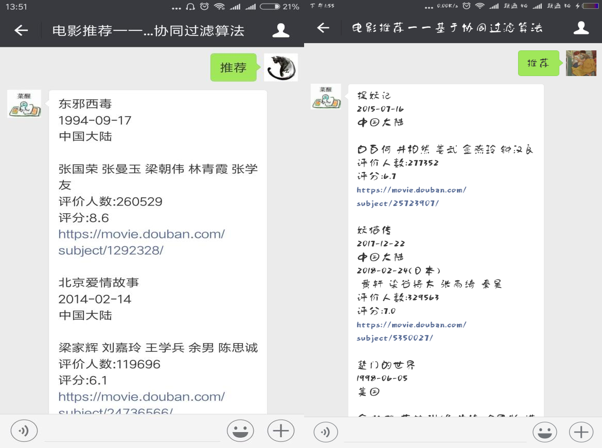 摘 要在互联网时代下,信息量呈指数级增长。海量数据以0、1 方式编码存放在磁盘等设备中非常方便,但是对于人类来说,我们的脑容量有限,在海量数据中挑选出适合自己的信息变得非常困难。简直如大海捞针,即使使用了分类方法和搜索引擎,我们还是要花大量时间去挑选适合自己的信息,并且经常选取了错误的信息。在这样的情况下, 个性化推荐系统应运而生。从起初的基于内容的推荐,到现在最常用的协同过滤推荐等推荐算法,我们从繁琐庞大的信息中解脱出来,可以接受大量系统推荐给我们的信息。在大多数电子商务网站上,都运行着个性化推荐系统,不仅提高了用户购买率,还提高了用户体验。其系统内部实现由于基础数据不同也各有不同,而协同过滤算法被广泛应用到这些系统中,发挥着巨大的作用。本文首先详细介绍了协同过滤算法与推荐系统概要,分析了各种协同过滤算法的优缺点。然后设计了一个简易的电影资源推荐系统,并使用 python、微信公众号等技术实现了这个推荐系统,最后对这个推荐系统做了简单的测试和结果分析。关键词:个性化推荐系统;协同过滤;机器学习;数据挖掘;数据分析;pythonAbstractIn the Internet age, the amount of information is exponential. Huge amounts of data to 0, 1, encoded in devices such as disk is very convenient, but for humans, our brain capacity is limited, selected for their own information in the huge amounts of data becomes very difficult.It's like looking for a needle in a haystack, and even using a taxonomy and search engine, we still have to spend a lot of time sorting out what's right for us and often picking the wrong information. In this case, the personalized recommendation system comes into being.Based on the recommendations from the content, from the beginning to now, the most commonly used collaborative filtering recommendation recommendation algorithm, such as free from complex huge information, we can accept a large number of system is recommended for our information.On most e-commerce sites, the personalized recommendation system is running, which not only improves the user purchase rate, but also improves the user experience.The internal implementation of the system is different due to the different basic data, and the collaborative filtering algorithm is widely applied to these systems and plays a huge role.In this paper, we first introduce the collaborative filtering algorithm and recommendation system profile, and analyze the advantages and disadvantages of various collaborative filtering algorithms.Then design a simple movie recommendation system resources, and using the python, micro letter of public technology implements this recommendation system, finally, the recommendation system has made the simple test and the result analysis.Key words:Personalized recommendation system;Collaborative filtering;Machine learning;Data mining;Data analysis;Python目 录摘 要 IAbstract II第一章 绪论 11.1 课题背景及意义 11.2 国内外研究现状 21.3 论文内容结构 2第二章 协同过滤与相关技术 32.1 推荐算法介绍 32.1.1 基于内容的推荐算法 32.1.2 协同过滤算法 42.1.3 协同过滤算法分类 42.1.4 协同过滤优化 52.1.5 协同过滤推荐的优缺点 52.1.6 应用场景 72.2 相关技术介绍 7第三章 系统分析与设计 93.1 需求分析 93.2 系统设计 103.2.1 微信公众号 113.2.2 接口定义 123.2.3 前后端交互接口 133.2.4 文本请求 143.2.5 事件处理 143.2.6 web服务器 153.3 数据库设计 173.3.1 电影信息表 173.3.2 其他表结构 173.4 推荐算法设计 18第四章 系统实现 204.1 数据采集 204.1.1 爬虫概要 204.1.2 数据库结构 224.1.3 爬虫主要逻辑 234.1.4 页面分析 244.1.5 数据处理 254.2 基础功能实现 264.2.1 后端主要逻辑 264.2.1 搜索功能 304.2.2 评价功能 324.3 协同过滤推荐实现 354.3.1 读取用户曲线 354.3.2 用户相似程度 364.3.3 获得最终结果 374.4 解决冷启动问题 384.4.1 解决方案 384.4.2 代码实现 394.4.3 其他完善方案 39第五章 实验结果分析 405.1 推荐功能测试 405.1.1 协同过滤推荐 405.1.2 基于内容推荐 415.2 推荐功能优化 435.2.1 重复推荐 435.2.1 响应时间 435.2.2 避免冷启动 435.3 评价功能优化 435.3.1 影片名纠纷 445.3.2 鼓励评分 445.4 其他辅助功能 445.4.1 功能说明书 445.4.2 收藏夹 45总 结 46参考文献 47致 谢 48