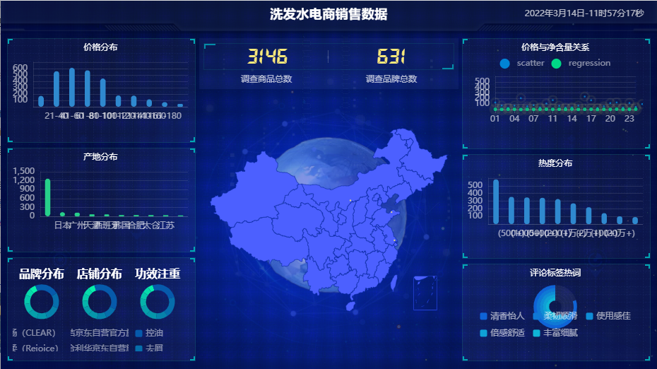 洗发产品网销信息分析系统的设计与实现 毕业论文+任务书+代码及可视化展示(京东)