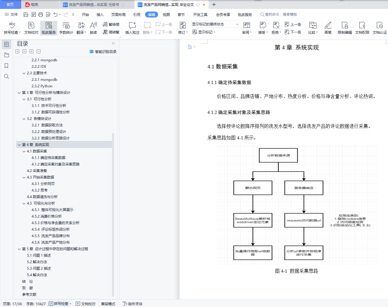 摘 要近年来,随着人们生活品质的不断提高,消费观念亦在不断升级。洗发水市场愈来愈繁荣,洗发水产品种类也在不断地增多,人们在进行电商浏览洗发水用品时,常常是通过店铺销量和已购买用户的评论进行选购的,面对如此繁多地产品以及网络购物中的不确定性,对大量的评论进行整合和处理,帮助消费者进行客观的判断从而选购到合适的洗发水用品是十分有必要的。对于大量评论的热销洗发水产品,消费者如果靠阅读评论得到某洗发水产品全面性的分析,工作量极大,耗时长,获取的信息也有限。网络爬虫作为一个自动提取网页的程序,可以高效地从数据库的海量信息中挖掘出有效的信息,大量数据可以得到处理和分析。而爬虫系统可以不断抓取网页数据到本地,经过一系列的分析、过滤,从而得到高质量的数据。本文选取京东真实存在的洗发产品店铺为研究对象,进行洗发产品销售数据分析,通过数据分析发掘出洗发产品的浏览倾向,利用Python获取各品牌洗发用品网销数据信息的数据。通过CSS、HTML、JavaScript等编程语言设计系统登录与显示页面的样式布局。本设计主要目标是获取洗发产品网销数据、分析各洗发品牌所宣称的效果是否良好,解决不同发质选择洗发用品的问题。关键词:Python;mongodb;电商平台;洗发水产品;数据分析ABSTRACTIn recent years, with the continuous improvement of people's quality of life, the consumption concept is also constantly upgrading.Shampoo market more and more prosperous, shampoo products are also increasing, people in electricity browsing shampoo, often through store sales and buy user comments to choose and buy, in the face of so many products and in the uncertainty in online shopping, a large number of comments integration and processing, help consumers to carry on the objective judgment to choose and buy to the appropriate shampoo is very necessary.For popular shampoo products with extensive reviews, consumers can have a heavy, time-consuming workload, and limited information.As a program of automatically extracting web pages, the web crawler can efficiently excavate effective information from the large amount of information in the database, and a large amount of data can be processed and analyzed.The crawler system can constantly grab the web page data to the local, after a series of analysis, filtering, so as to get high-quality data.This paper selects the real shampoo product stores of JD as the research object to analyze the sales data of shampoo products, explores the browsing tendency of shampoo products through data analysis, and uses Python to obtain the data of online sales information of shampoo products.S H programming languages like CSS, HTML and JavaScript.The main goal of this design is to obtain the online sales data of shampoo products, analyze whether the effect claimed by various shampoo brands is good, and solve the problem of choosing hair products with different hair qualities.Key words: Python; mongodb; e-commerce platform; shampoo products; data analysis目录第1章 绪论 11.1 背景及意义 11.1.1 背景 11.1.2 目标及意义 11.2 应用现状 21.3 数据模型及主要板块 21.3.1数据模型建立 21.3.2 主要板块 21.4 主要方法及技术路线 31.4.1 主要方法 31.4.2技术路线 4第2章 开发环境及技术 52.1硬件设备 52.1.1 CPU及操作系统 52.1.2 其他 52.2软件及IDE 52.2.1 mongodb 52.2.2 IDE 62.3主要技术 62.3.1 mongodb 62.3.2 Python 7第3章 可行性分析与模块设计 83.1 可行性分析 83.1.1 技术可行性分析 83.1.2 数据可获得性分析 83.2 各模块设计 83.2.1 数据获取方法 83.2.2 数据预处理设计 83.2.3 数据分析思路设计 10第4章 系统实现 114.1数据采集 114.1.1确定待采集数据 114.1.2确定采集对象及采集思路 114.2采集准备 124.3开始采集数据 124.3.1分析网页 124.3.2思考 154.4数据清洗与分析 164.5 可视化与分析 164.5.1 整体可视化大屏展示 174.5.2消费价格分析 174.5.3价格与净含量的关系分析 204.5.4 评论标签热词分析 214.5.5 洗发产品品牌分布 234.5.6 洗发产品产地分布 23第5章 设计过程中存在的问题和解决过程 245.1问题1描述 245.2解决办法 245.3问题2描述 245.4解决办法 25结 论 28致 谢 29参考文献 30