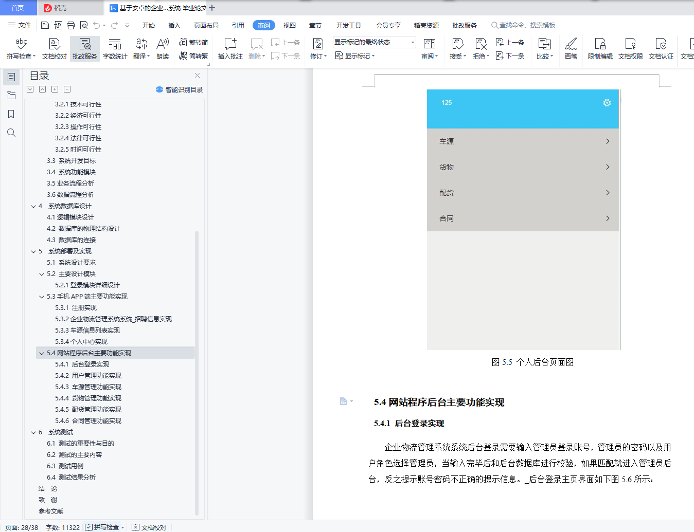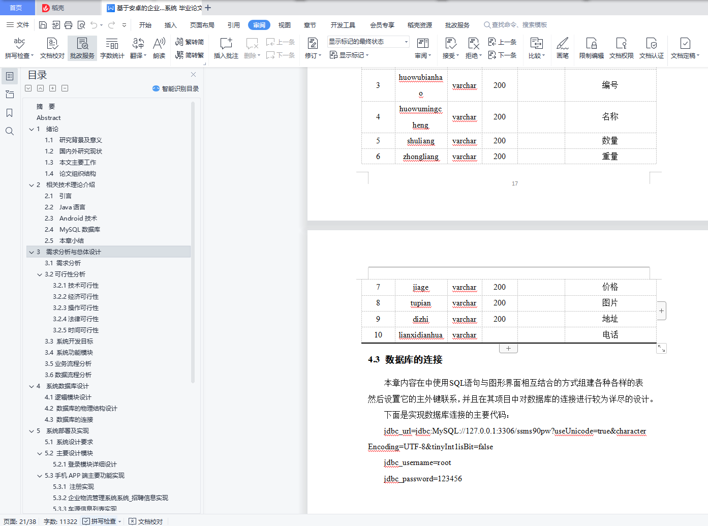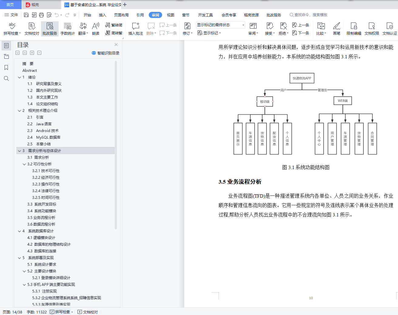 摘 要随着互联网的技术的快速发展和无线网络的更新迭代,使4G网络已成为过去式5G网络蓬勃发展。技术的发展,硬件的提高使人们使用智能手机可以更加快速、便捷的浏览信息、获取信息。本文首先介绍企业物流管理系统APP开发的背景和选题的意义,阐述了选择Android作为开发平台的优势。其次,对基于Android系统的快递公司物流管理APP的实现进行了需求分析和开发场景的设置。对于整个企业物流管理系统APP的数据表、功能模块做了详细的分析,并详细的介绍了各个功能模块的功能,绘制了重要的业务流程图。对于快递企业现在使用的物流管理系统进行了分析,并增加了和自己企业的功能模块,提出了无线网络和移动终端设备相结合的快递服务信息查询手段,设计出了一套完整的物流管理系统。系统管理、货物管理、车源管理、配货管理、用户管理、合同管理配送管理等功能。关键词:物流管理;快递公司;Android;MySQL;SSMAbstractWith the rapid development of the Internet technology and the update and iteration of the wireless network, the 4G network has become a type 5G network boom of the past.The development of technology and the improvement of hardware make people browse and obtain information more quickly and conveniently.This paper first introduces the background and topic selection significance of the APP development of the enterprise logistics management system, and expounds the advantages of choosing Android as the development platform.Secondly, the implementation of logistics management APP based on Android system includes demand analysis and development scenarios.The data table and function module of the APP of the whole enterprise logistics management system are analyzed in detail, and the functions of each function module are introduced in detail, and the important business flow chart is drawn.The logistics management system now used by express enterprises is analyzed, the functional module is added with its own enterprise is added, the express service information query means combined with wireless network and mobile terminal equipment is proposed, and a complete logistics management system is designed.System management, cargo management, vehicle source management, distribution management, user management, contract management and distribution management and other functions.Key words: logistics management; express delivery company; Android; MySQL; SSM目 录摘 要 IAbstract II1 绪论 11.1 研究背景及意义 11.2 国内外研究现状 11.3 本文主要工作 21.4 论文组织结构 32 相关技术理论介绍 42.1 引言 42.2 Java语言 42.3 Android技术 42.4 MySQL数据库 62.5 本章小结 73 需求分析与总体设计 83.1 需求分析 83.2可行性分析 83.2.1技术可行性 83.2.2经济可行性 83.2.3操作可行性 93.2.4法律可行性 93.2.5时间可行性 93.3 系统开发目标 93.4 系统功能模块 93.5业务流程分析 103.6数据流程分析 114 系统数据库设计 134.1逻辑模块设计 134.2 数据库的物理结构设计 154.3 数据库的连接 185 系统部署及实现 195.1 系统设计要求 195.2 主要设计模块 195.2.1登录模块详细设计 195.3手机APP端主要功能实现 205.3.1 注册实现 205.3.2企业物流管理系统系统_招聘信息实现 215.3.3车源信息列表实现 225.3.4个人中心实现 235.4网站程序后台主要功能实现 245.4.1 后台登录实现 245.4.2 用户管理功能实现 265.4.3 车源管理功能实现 275.4.4 货物管理功能实现 275.4.5 配货管理功能实现 285.4.6 合同管理功能实现 286 系统测试 296.1 测试的重要性与目的 296.2 测试的主要内容 296.3 测试用例 296.4 测试结果分析 31结 论 32致 谢 33参考文献 34