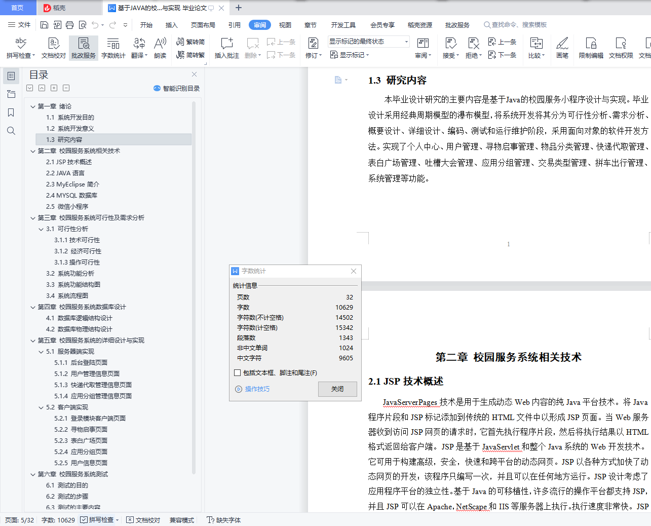 基于JAVA的校园服务小程序的设计与实现摘要:随着智能手机一步步走进人们的服务,它将成为人们获取信息的主要设备,相关应用越来越广泛,并在人们的日常服务中扮演着越来越重要的角色。因此,关键应用程序的开发成为影响移动智能终端普及的重要因素,设计并开发实用、方便的应用程序具有重要的意义和良好的市场前景。因此我选择了基于微信小程序的校园服务帮手,利用微信小程序“触手可及”,“用完即走”,“随时可用”,但又无需安装卸载的特点来吸引用户,实现对校园服务信息进行管理的系统。根据需求,确定系统采用JSP技术,JAVA作为编程语言,MySQL作为数据库。整个系统要操作方便、易于维护、灵活实用。主要实现了个人中心、用户管理、寻物启事管理、物品分类管理、快递代取管理、表白广场管理、吐槽大会管理、应用分组管理、交易类型管理、拼车出行管理、系统管理等功能。关键词:微信小程序;校园服务帮手;JSP;MYSQLDesign and implementation of the campus services applet based on JAVAAbstract: As smart phones step by step into people's services, it will become the main equipment for people to obtain information, related applications are more and more widely, and play an increasingly important role in people's daily services.Therefore, the development of key applications has become an important factor affecting the popularity of mobile intelligent terminals, and the design and development of practical and convenient applications are of great significance and good market prospects.Therefore, I chose the campus service helper based on the wechat small program, using the wechat small program "within reach", "use up", "available at any time", but do not need to install and uninstall the characteristics to attract users, to realize the system of campus service information management. According to the requirements, the determination system adopts JSP technology, JAVA as programming language and MySQL as database.The whole system should be easy to operate, easy to maintain, flexible and practical.It mainly realizes the functions of personal center, user management, object finding notice management, item classification management, express agent management, express square management, ridicule conference management, application group management, transaction type management, ride-sharing management, system management and so on.Key words: wechat mini program; campus service helper; JSP; MYSQL目录第一章 绪论 11.1 系统开发目的 11.2 系统开发意义 11.3 研究内容 1第二章 校园服务系统相关技术 22.1 JSP技术概述 22.2 JAVA语言 22.3 MyEclipse简介 32.4 MYSQL数据库 42.5 微信小程序 4第三章 校园服务系统可行性及需求分析 63.1 可行性分析 63.1.1技术可行性 63.1.2 经济可行性 63.1.3操作可行性 63.2 系统功能分析 73.3 系统功能结构图 83.4 系统流程图 8第四章 校园服务系统数据库设计 104.1 数据库逻辑结构设计 104.2 数据库物理结构设计 11第五章 校园服务系统的详细设计与实现 175.1 服务器端实现 175.1.1 后台登陆页面 175.1.2 用户管理信息页面 175.1.3 快递代取管理信息页面 185.1.4 应用分组管理信息页面 185.2 客户端实现 195.2.1 登录模块客户端页面 195.2.2 寻物启事页面 195.2.3 表白广场页面 205.2.4 应用分组页面 215.2.5 用户信息页面 22第六章 校园服务系统测试 246.1 测试的目的 246.2 测试的步骤 246.3 测试的主要内容 24第七章 总结与展望 26致 谢 27参考文献 28