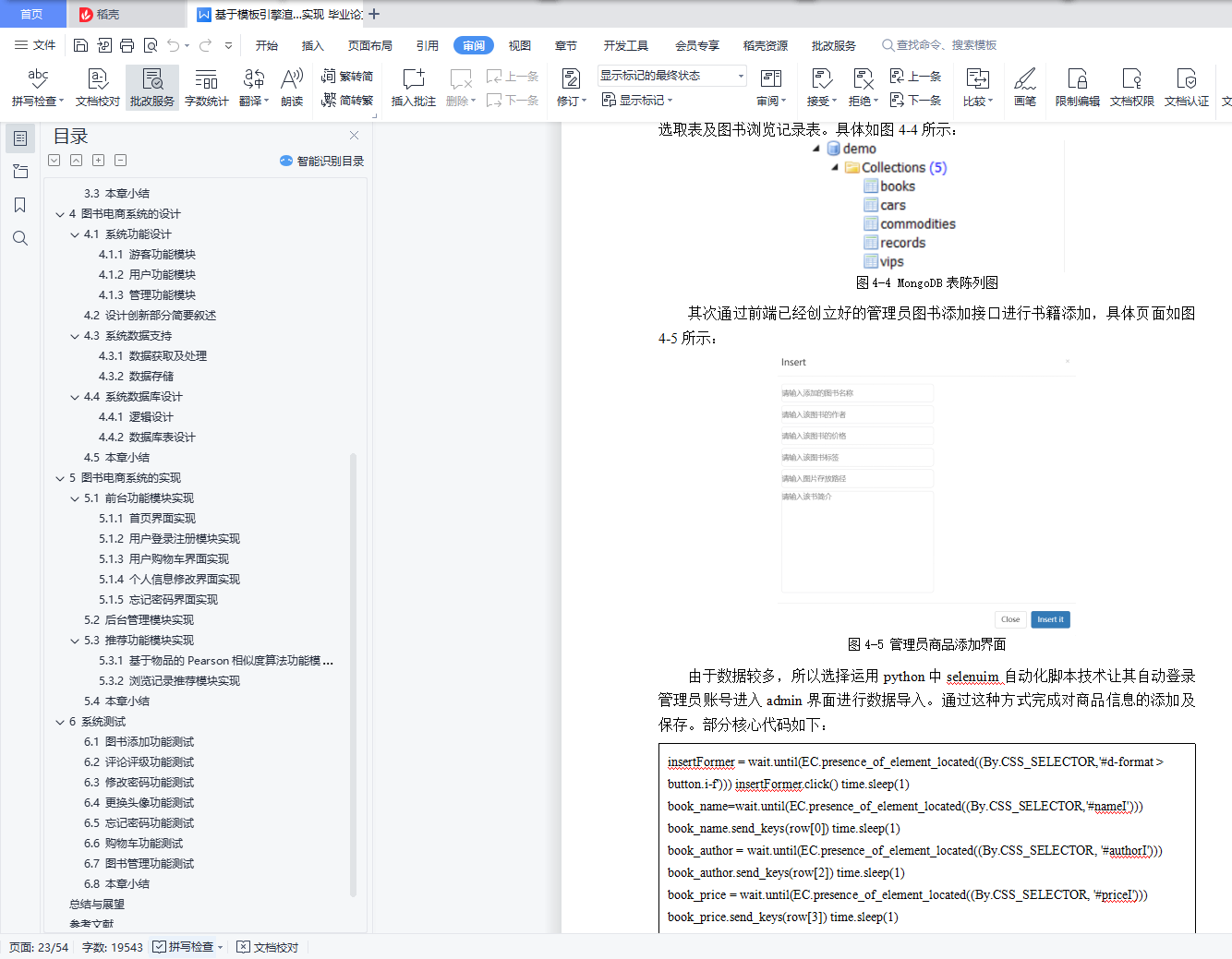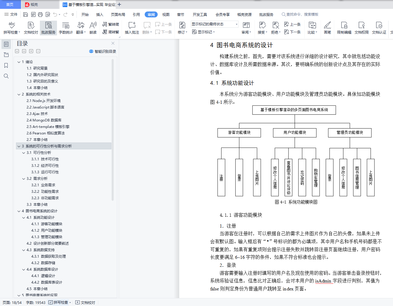 摘 要在新冠疫情的大背景下,顾客无法到实体店中去选购心仪的商品。然而,在信息化较为成熟的现今,互联网以历史潮流推动者的姿态席卷而来,各种的资源碰撞,几乎所有最新的信息都可以通过网络搜索来获得,这样一来便促进了电商的开展,也变相满足了客户足不出户也可以进行购物及货比三家的需求,所以电子商务平台开始慢慢地普及。电子商务,顾名思义,一种全新的线上交易模式。在数字化的时代,该模式会以领导者的姿态引领全球,成为潮流销售形式。企业可以通过这种模式,缓解店面租赁的问题,大大降低前期成本输入,增加企业创收。而且网络的信息散播十分迅速,可以有效的解决线下无人问的尴尬局面。所以研究并开发一个电商系统也就具有了实际效益。本文研究的主要内容是基于模板引擎渲染的图书电商系统。首先,运用Python中的requests、lxml第三方库对图书网站中的信息进行爬取。其次,以Node.js环境作为后端支撑,使用其Art-template第三方库满足前端的数据需求并以MongoDB作为后端的数据存储。然后运用前端相关技术构建网站框架,使用Ajax技术实现前后端数据分离,采用Python中的selenuim第三方库通过后端已建立的管理员信息管理途径将爬取数据写入数据库,作为本系统的商品供用户选择。为了解决用户选择迷茫的情况,运用Pearson相似度算法根据物品之间的联系,实现推荐功能。因此本系统不仅可以为用户提供良好的购书体验,也能缓解用户迷茫的尴尬处境。系统基本完成预期。关键词:电子商务;模板引擎;皮尔逊相似度算法AbstractIn the context of COVID-19, customers cannot go to physical stores to buy their favorite products. However, in today's more mature information, the Internet is sweeping in as a historical trend promoter, collision of various resources, can almost all the latest information through the Internet to search for, in this way, the development of e-commerce has been promoted, which also meets the needs of customers to shop and compare goods without leaving home. Therefore, e-commerce platform has begun to slowly popularize.E-commerce, as the name suggests, is a brand new mode of online trading. In the digital age, the model will lead the world as a leader and become a trend sales form. Through this mode, enterprises can ease the problem of store leasing, greatly reduce the input of upfront costs, increase the income of enterprises. And the network information dissemination is very fast, can effectively solve the offline nobody asked the embarrassing situation. So the research and development of an e-commerce system also has practical benefits.The main content of this paper is the book e-commerce system based on template engine rendering. First, we crawled the information from the book site using third party library requests, lxml in Python. Secondly, the Node.js environment is used as backend support, its Art-template third-party library is used to meet the data requirements of the front end and MongoDB is used as the data store of the back end. Then use the front-end related technology to build the framework of the website, use Ajax technology to achieve the separation of front and back end data, the selenuim third-party library in Python is used to write the crawled data to the database through the established administrator information management channel at the back end, as the system of goods for users to choose. In order to solve the confusion of users' choice, the Pearson similarity algorithm is used to realize the recommendation function according to the connection between books. Therefore, this system can not only provide users with a good experience of buying books, but also alleviate the confusion of the embarrassing situation of users. The system basically fulfilled the expectation.Key words: E-Commerce; template engine; Pearson Similarity Algorithm;目 录1 绪论 11.1 研究背景 11.2 国内外研究现状 11.3 研究目的及意义 21.4 本章小结 22 系统的相关技术 32.1 Node.js开发环境 32.2 JavaScript脚本语言 32.3 Ajax技术 32.4 MongoDB数据库 42.5 Art-template模板引擎 42.6 Pearson相似度算法 42.7 本章小结 43 系统的可行性分析与需求分析 53.1 可行性分析 53.1.1 技术可行性 53.1.2 经济可行性 53.1.3 运行可行性 63.2 需求分析 63.2.1 业务需求 63.2.2 功能性需求 103.2.3 非功能需求 123.3 本章小结 124 图书电商系统的设计 134.1 系统功能设计 134.1.1 游客功能模块 134.1.2 用户功能模块 134.1.3 管理功能模块 144.2 设计创新部分简要叙述 154.3 系统数据支持 154.3.1 数据获取及处理 164.3.2 数据存储 174.4 系统数据库设计 194.4.1 逻辑设计 194.4.2 数据库表设计 194.5 本章小结 215 图书电商系统的实现 225.1 前台功能模块实现 225.1.1 首页界面实现 225.1.2 用户登录注册模块实现 235.1.3 用户购物车界面实现 245.1.4 个人信息修改界面实现 245.1.5 忘记密码界面实现 255.2 后台管理模块实现 265.3 推荐功能模块实现 275.3.1 基于物品的Pearson相似度算法功能模块实现 275.3.2 浏览记录推荐模块实现 305.4 本章小结 316 系统测试 326.1 图书添加功能测试 326.2 评论评级功能测试 336.3 修改密码功能测试 346.4 更换头像功能测试 366.5 忘记密码功能测试 376.6 购物车功能测试 396.7 图书管理功能测试 396.8 本章小结 40总结与展望 41参考文献 42致谢 43附录 441 绪论本章对本论文研究的现代背景、目的及意义做了详细地阐述;介绍了电商系统在现如今信息化时代的重要地位,同时也分析了目前国内外电子商务的发展趋势及其所用技术利弊,并且根据这些分析引出本系统的构建目的及研究价值。1.1 研究背景随着民众
