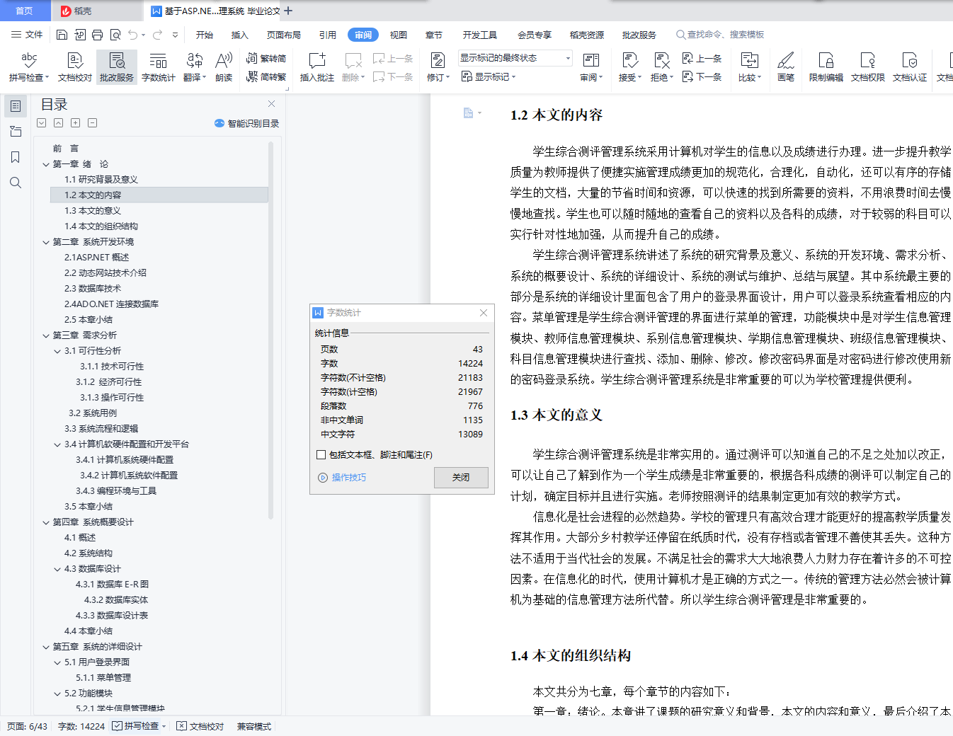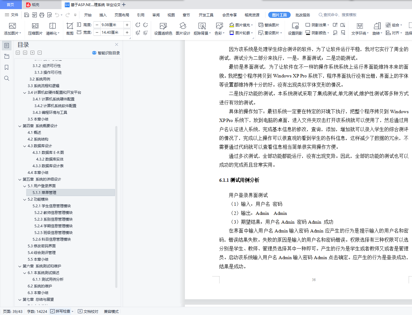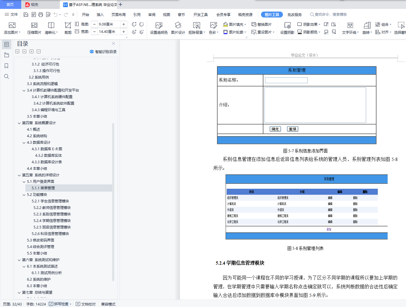 目 录前 言 1第一章 绪 论 21.1研究背景及意义 21.2本文的内容 31.3本文的意义 31.4本文的组织结构 3第二章 系统开发环境 52.1ASP.NET概述 52.2动态网站技术介绍 62.3数据库技术 62.4ADO.NET连接数据库 62.5本章小结 7第三章 需求分析 83.1可行性分析 83.1.1技术可行性 83.1.2经济可行性 83.1.3操作可行性 93.2系统用例 93.3系统流程和逻辑 103.4计算机软硬件配置和开发平台 123.4.1计算机系统硬件配置 123.4.2计算机系统软件配置 123.4.3编程环境与工具 123.5本章小结 12第四章 系统概要设计 144.1概述 144.2系统结构 144.3数据库设计 154.3.1数据库E-R图 154.3.2数据库实体 154.3.3数据库设计表 194.4本章小结 22第五章 系统的详细设计 235.1用户登录界面 235.1.1菜单管理 245.2功能模块 255.2.1学生信息管理模块 255.2.2教师信息管理模块 275.2.3系别信息管理模块 285.2.4学期信息管理模块 295.2.5班级信息管理模块 305.2.6科目信息管理模块 315.3修改密码界面 325.4综合测评管理 335.5本章小结 35第六章 系统测试和维护 366.1本系统测试描述 366.1.1测试用例分析 366.2系统的维护 376.3本章小结 37第七章 总结与展望 387.1本文总结 387.2后续工作展望 38参考文献 39致 谢 40摘 要随着信息技术在办理上越来越深切而普遍的应用,学生综合测评管理的实施在技术上已慢慢成熟。本文介绍了在VS 2010(Microsoft Visual Studio 2010)环境下采用自上而下地总体计划,自下而上的应用战略开拓一个学生综合测评管理系统。通过分析学生综合测评管理的不够,创建了一个学生综合测评管理系统的方案。文章讲了学生综合测评管理系统的系统分析部分,包含可行性分析、系统用例分析等,系统设计主要介绍了系统功能设计和数据库设计及代码设计。学生综合测评管理系统可以说是一个综合性的学生管理系统,这此中包括了用户登录模块的实现、学生信息管理模块、教师信息管理模块、系别信息管理模块、学期信息管理模块、班级信息管理模块、科目信息管理模块、修改密码模块、综合测评管理模块等,因此具有一定的实用性。本站是一个B/S(Browser/Server,浏览器/服务器结构)模式系统,采取了目前盛行的ASP.NET技术。系统界面友好,操作简单适用并且便利。关键词: 综合测评;ASP.NET技术;B/S前 言学生综合测评管理是最主要的管理方法之一,相对而言,传统的管理已经落后了如今都采用先进的技术进行有效的管理。怎样做到规范管理降低出错率,提高管理效率才是目前的首要任务。学生综合测评管理是学校一年一度的首要工作,为了保证公平公正公开的原则、数据庞大、计算复杂等特点,目前最普遍采用的方法是使用手工收集测评数据并进行计算,不能够保证测评数据的安全性和准确性。随着计算机信息技术日益发展壮大,很多领域都已经实现了信息技术的管理,如果本领域仍然在使用传统的手工方式,浪费了大量的人力物力和时间。随着技术的进一步发展,这一工作必将实现自动化管理,保证学生综合测评的数据更加的全面,让教师掌握学生各科成绩是否达标,针对不达标的科目采取针对性的措施让学生的成绩能够提高,对于取得好成绩的同学进行嘉奖,通过学生综合测评管理的表能够一目了然,掌握的信息更加的完善。基于上述所述,开拓了学生综合测评管理系统,界面友好,操作简单便利,易于使用,一心一意做到最好。当然系统中还是存在着许多的问题还需要努力。