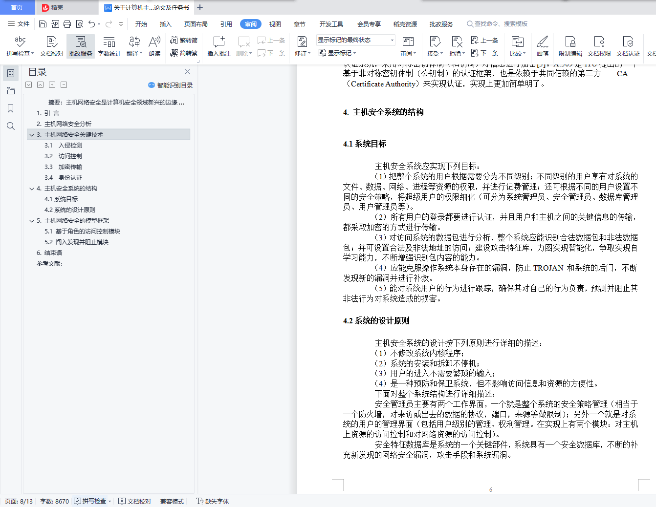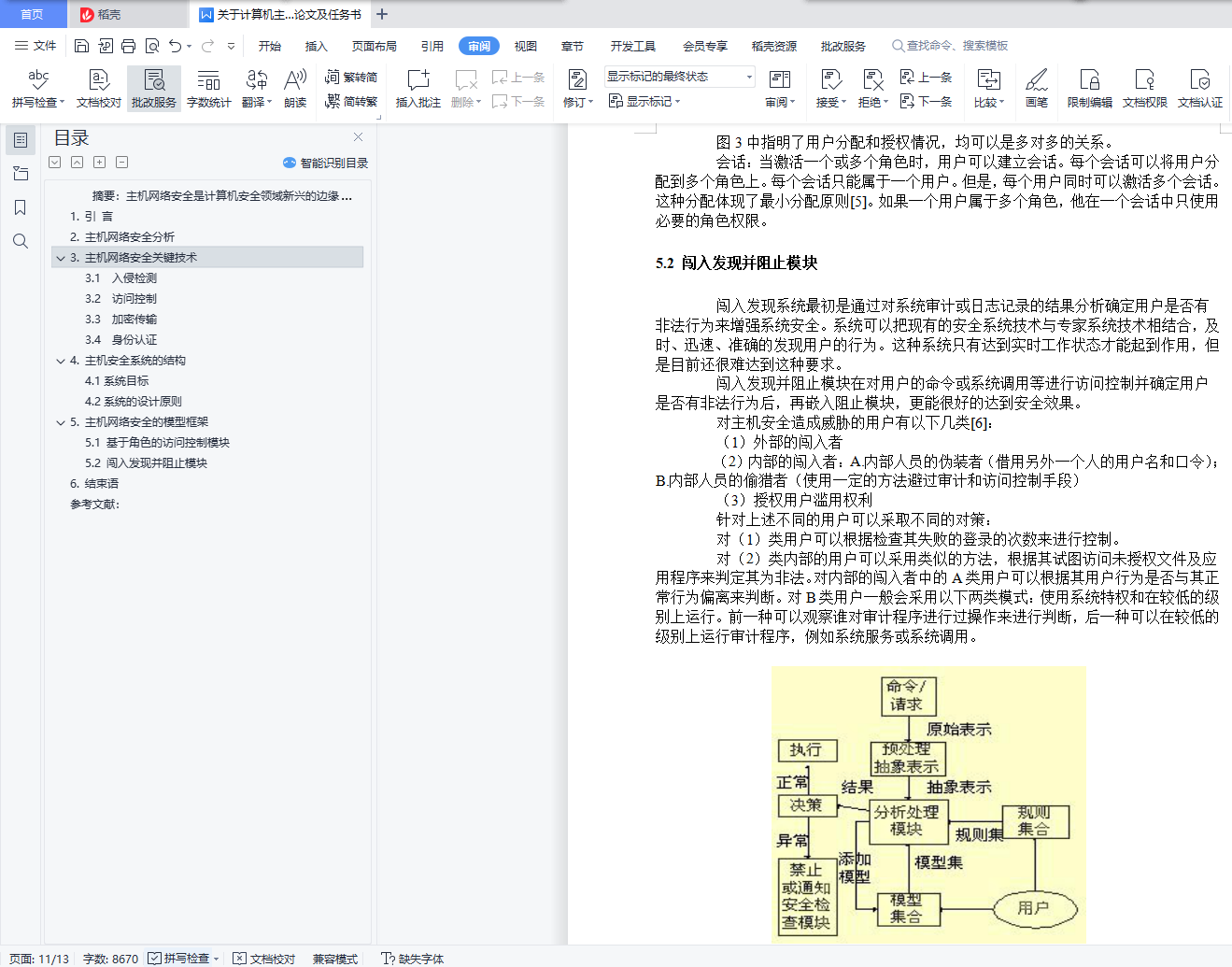 目录摘要 1Abstract. 11. 引 言 22. 主机网络安全分析 23. 主机网络安全关键技术 33.1 入侵检测 43.2 访问控制 43.3 加密传输 53.4 身份认证 54. 主机安全系统的结构 64.1系统目标 64.2系统的设计原则 65. 主机网络安全的模型框架 75.1 基于角色的访问控制模块 75.2 闯入发现并阻止模块 86. 结束语 10参考文献: 10主机网络安全及其构建研究摘要:主机网络安全是计算机安全领域新兴的边缘技术,它综合考虑网络特性和操作系统特性,对网络环境下的主机进行更为完善的保护。本文对主机网络安全作一简单定义,提出了主机网络安全体系结构,并对其中的关键技术和安全特性进行探讨,在此基础上给出了一种主机安全的模型框架,力图同时防范来自内、外部的攻击,全面增强主机安全。关键词:主机安全;网络安全;主机网络安全;基于角色的访问控制Research on Host-Network Security and ConstructionWu Fu-qiangAbstract: Host-network security is a rising marginal technology in the field of computer security. It provides more secure protection for hosts in network environment on the basis of consideration of the network attributes and OS attributes together. In this paper, it tries to give a simple definition of host-network security and describes the architecture of the host-network security system, and then some key technologies of host-network security is discussed. Finally, The paper presents a model of host security trying to check attacks from both outsiders and insiders and to increase host security in every aspects.Key words: Host-Network Security; Host Security; Network Security; Role-Based Access Control1. 引 言计算机网络的发展使计算机应用更加广泛和深入,但随之也使安全问题日益突出和复杂。从理论上讲,一旦主机连接到网络上,它就面临来自网络上的安全威胁,这些威胁主要有:非授权访问、冒充合法用户、破坏数据完整性、干扰系统正常运行、特洛伊木马、线路窃听等。为了有效防御和抑制这些威胁,现在最常用的技术手段有:身份验证、访问控制、加密、防火墙、记账审计等。通常情况下,从两个方面考虑计算机安全问题:主机安全和网络安全。主机安全主要是考虑保护合法用户对于授权资源的使用,防止非法入侵者对于系统资源的侵占与破坏。其最常用的办法是利用操作系统的功能,如Unix的用户认证、文件访问权限控制、记账审计等。网络安全主要考虑的是网络上主机之间的访问控制,防止来自外部网络的入侵,保护数据在网上传输时不被泄密和修改。其最常用的方法是防火墙、加密等。由于两者考虑问题的立脚点不同,它们各自采用的技术手段难以有机地结合起来,因此对于一些需要两者协同处理才能解决的问题[1],否则,就不能得到有效的解决。例如,用户希望在内部子网远程登录主机时具有较大权限,但在子网以外远程登录主机时只具有普通权限,就是一个典型的例子。目前而言,对主机的安全保护主要依赖于防火墙、IDS(闯入发现系统)和操作系统本身固有的安全特性。但是防火墙的最大缺点就是它的防外不防内的特点,而服务器经常是对外提供服务,这样实际上防火墙并不能从根本上解决主机安全问题。IDS是一种被动的防御措施,它并不能阻止任何非法行为。操作系统虽然提供了一些安全措施,但是其功能非常有限,并且经常存在各种漏洞,这只有经验丰富的系统管理员才能保证操作系统的安全。因此,如何保证主机安全,同时防止内、外非法用户的攻击就成为当前信息系统建设中一个至关重要的问题。本文提出的主机网络安全技术就是要解决类似的安全问题,本文提出一种主机安全的模型框架,力图同时防范来自内、外部的攻击,全面增强主机安全,可以根据网络访问的访问者及访问发生的时间、地点和行为来决定是否允许访问继续进行,实现对于同一用户在不同的场所拥有不同的权限,从而保证合法用户的权限不被非法侵占。
