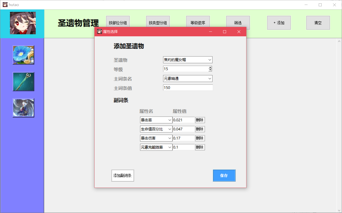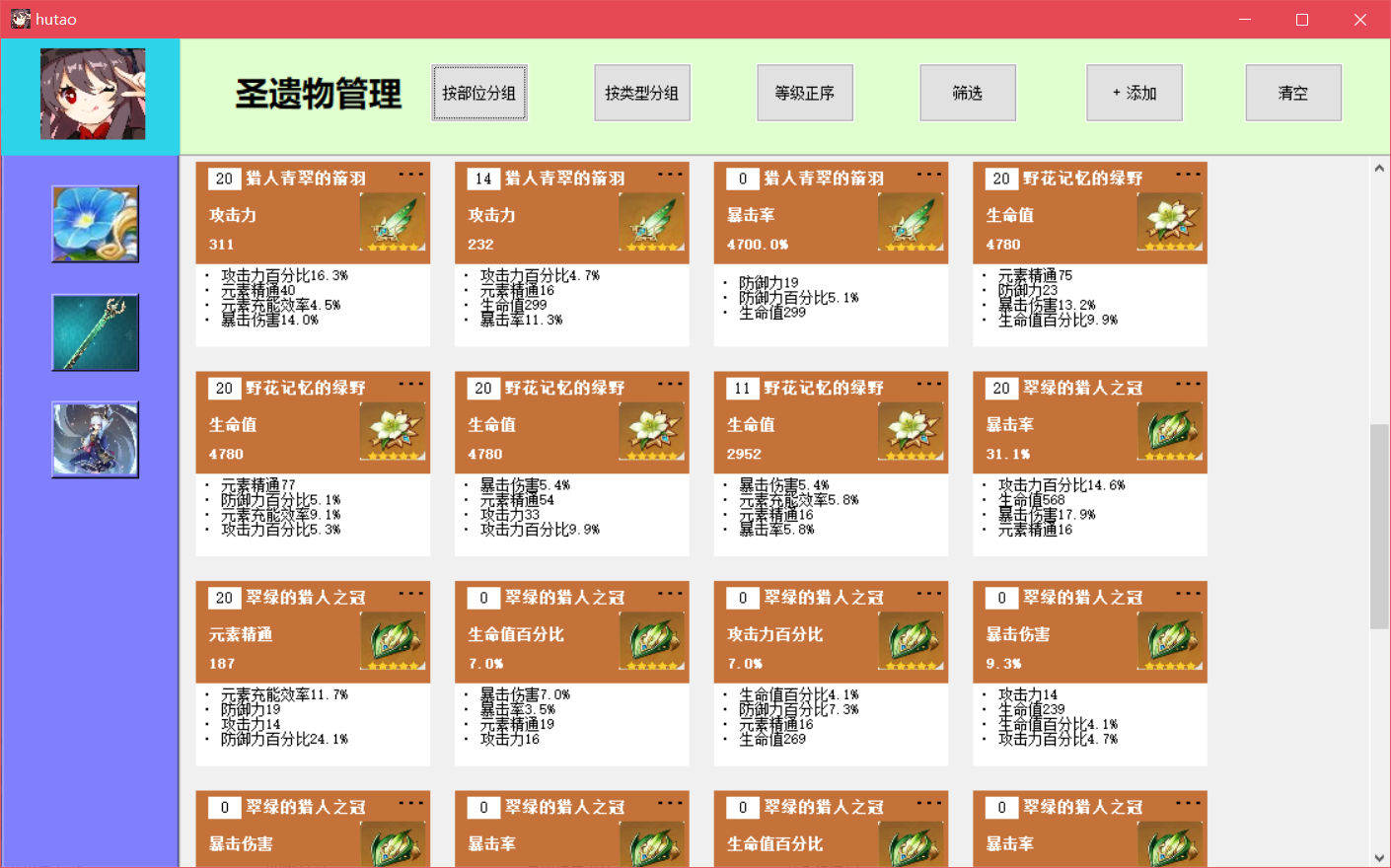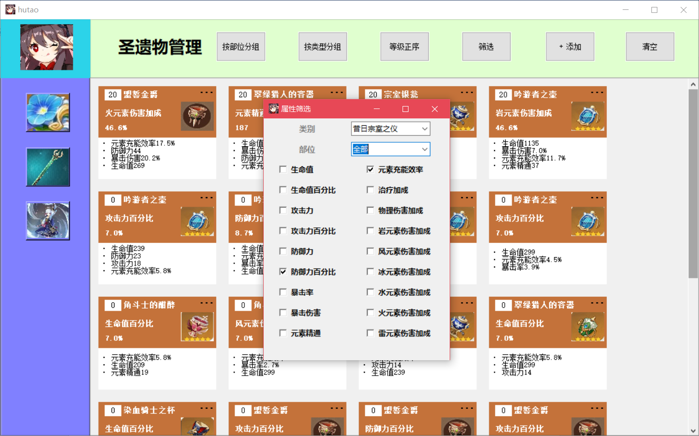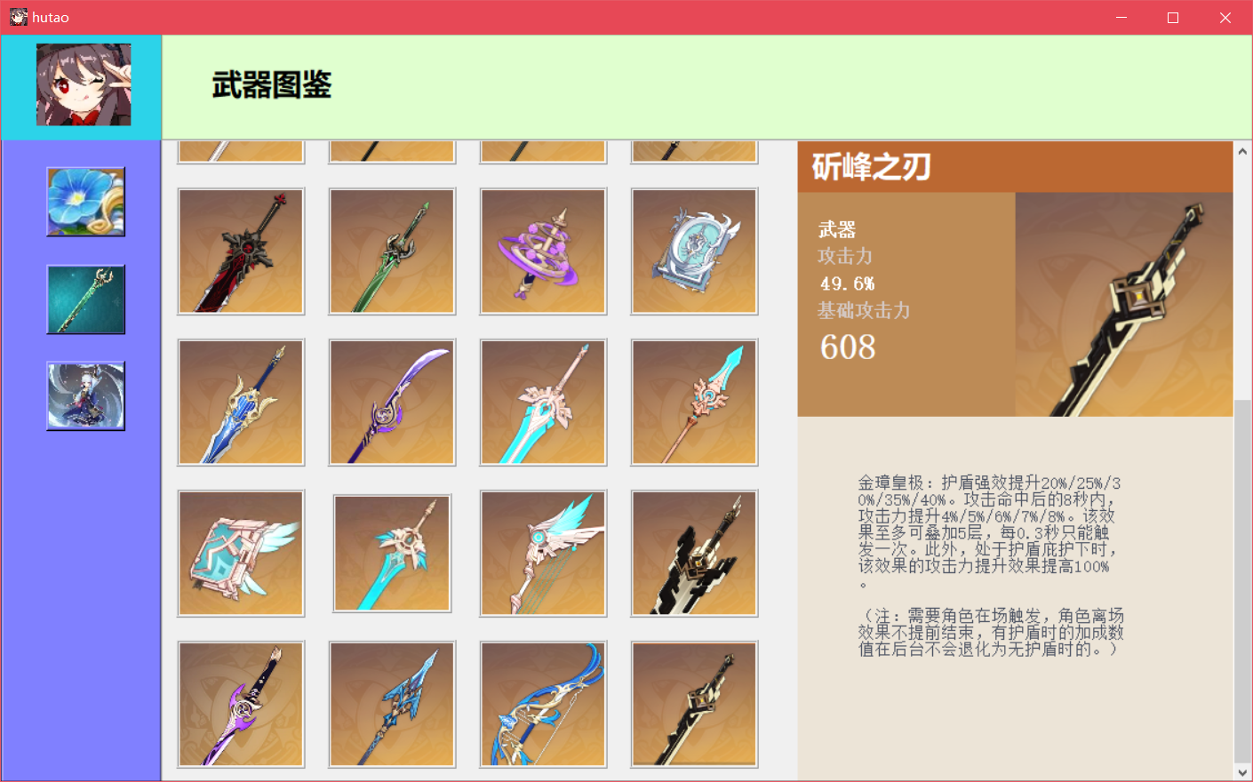 游戏装备管理与数值模拟系统目录游戏装备管理与数值模拟系统 11. 系统概述 12. 系统功能需求 22.1圣遗物背包管理 22.2武器图鉴 32.3角色装配模拟 32.4 登录系统 43. 数据库设计 53.1 ER图 53.2 数据库的逻辑结构设计 63.3 数据库物理设计 104. 详细设计与实现 114.1 数据库事务的定义与实现 114.2 数据库视图的定义与实现 214.3 数据库触发器的定义与实现 225. 数据库测试 305.1 圣遗物添加功能测试 315.2 圣遗物删除功能测试 335.3 圣遗物筛选功能测试 365.4 圣遗物排序功能测试 385.5 武器图鉴功能测试 425.6 角色装配模拟测试 435.7 登录系统与数据恢复测试 571.系统概述原神作为一款当下热门的游戏,有着较为丰富的装备系统和角色属性,该系统旨在辅助用户管理游戏装备,并对游戏角色进行模拟装配。系统通过复杂的数值计算帮助用户查看装配装备后的角色属性,如攻击力、暴击率、暴击伤害等,从而方便玩家对角色进行装备选择和强度评估。原神装备分为武器和圣遗物,圣遗物按装配部位又可进一步分为花、羽毛、沙漏、杯子、头盔五种。玩家拥有的每个角色只能装配一把武器和五个不同部位的圣遗物。武器拥有名称、主属性、副属性、技能信息,圣遗物拥有装配部位、类型、名称、等级、主属性、副属性信息。武器和圣遗物的详细信息可见数据库中表的属性定义。2. 系统功能需求系统应提供四大功能模块,分别为圣遗物背包管理、武器图鉴、角色模拟装配、登录系统,此外,系统应具有良好的GUI交互界面,方便用户使用。2.1圣遗物背包管理考虑到应用的实际用途及意义,由于原神中五星以下的圣遗物仅作为强化材料使用,并无实际用途,故圣遗物背包仅管理游戏中的五星级圣遗物。(1) 用户能在圣遗物管理界面浏览仓库中拥有的圣遗物,圣遗物用缩略图展示,用户能在缩略图中直观地看到圣遗物的名称、等级、外观、主属性、副属性、是否已装备等信息。(2)用户能向仓库中添加圣遗物,添加界面允许用户输入圣遗物的类型、等级、属性等信息。(3)用户能将圣遗物装配给角色,该部位已装配圣遗物的角色不能再进行装配。(4)用户能删除仓库中的圣遗物,删除分为单选删除与批量清空。(5)用户能筛选圣遗物,筛选条件包括圣遗物的类型、装配部位、具体拥有的属性类型,且能组合不同的条件进行筛选。(6)用户能对圣遗物进行排序,排序功能分为等级正序、等级逆序、按装配部位分组排序、按类型分组排序,其中按装配部位排序和按类型排序是互斥的。(7)用户能将外部的圣遗物数据批量导入数据库。2.2武器图鉴该系统收纳原神中的五星级武器,因武器数量少,玩家在游戏中没有管理需求,故需提供查询功能,方便用户进行合理地角色装配。(1)用户可在武器图鉴界面浏览游戏中的武器。(2)武器以图片形式展示,用户可单击武器图片,在界面右侧查看武器的详细信息。2.3角色装配模拟(1)用户可在角色装配模拟界面添加角色,新添加的角色默认无装备,相同角色在仓库中不能存在多个。(2)用户可为仓库中的角色装配或卸载武器和圣遗物。(3)用户能查看角色的属性值,新角色入库后,属性为游戏中该角色90级的基本属性,角色的属性值会随着武器,圣遗物的装配和卸下而动态变化。(4)用户能删除仓库中的角色,删除功能分为单选删除与批量清空。2.4 登录系统(1)用户拥有自己的账户信息,每次启动该系统前需要输入登录信息连接数据库。(2)系统能根据用户的登录信息,用后端数据库的数据初始化用户仓库,即用数据库信息在前端界面恢复用户数据。(3)用户输入了错误的账户信息,系统能提示用户信息有误,需要重新输入信息。