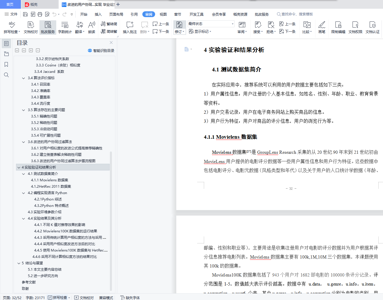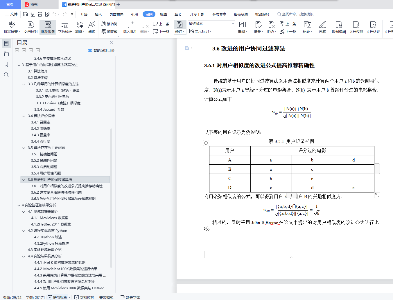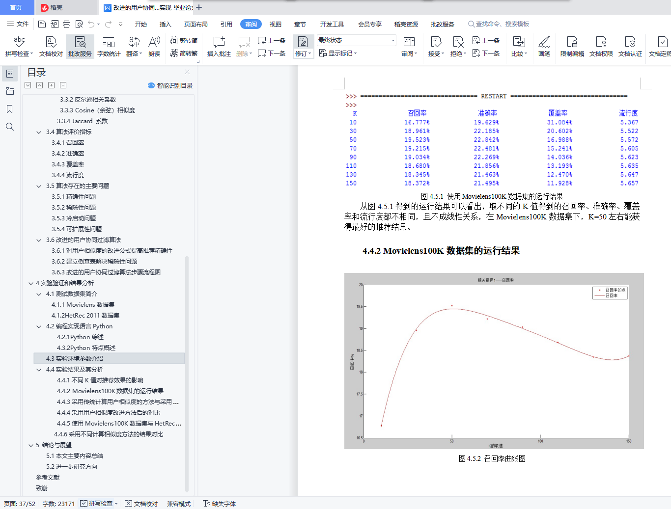 改进的用户协同过滤推荐算法的对比与实现 毕业论文