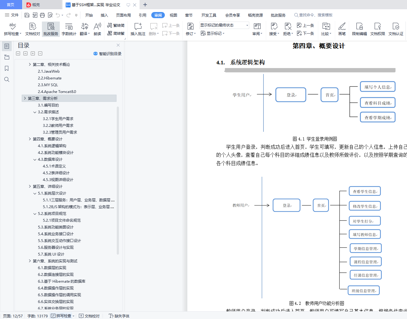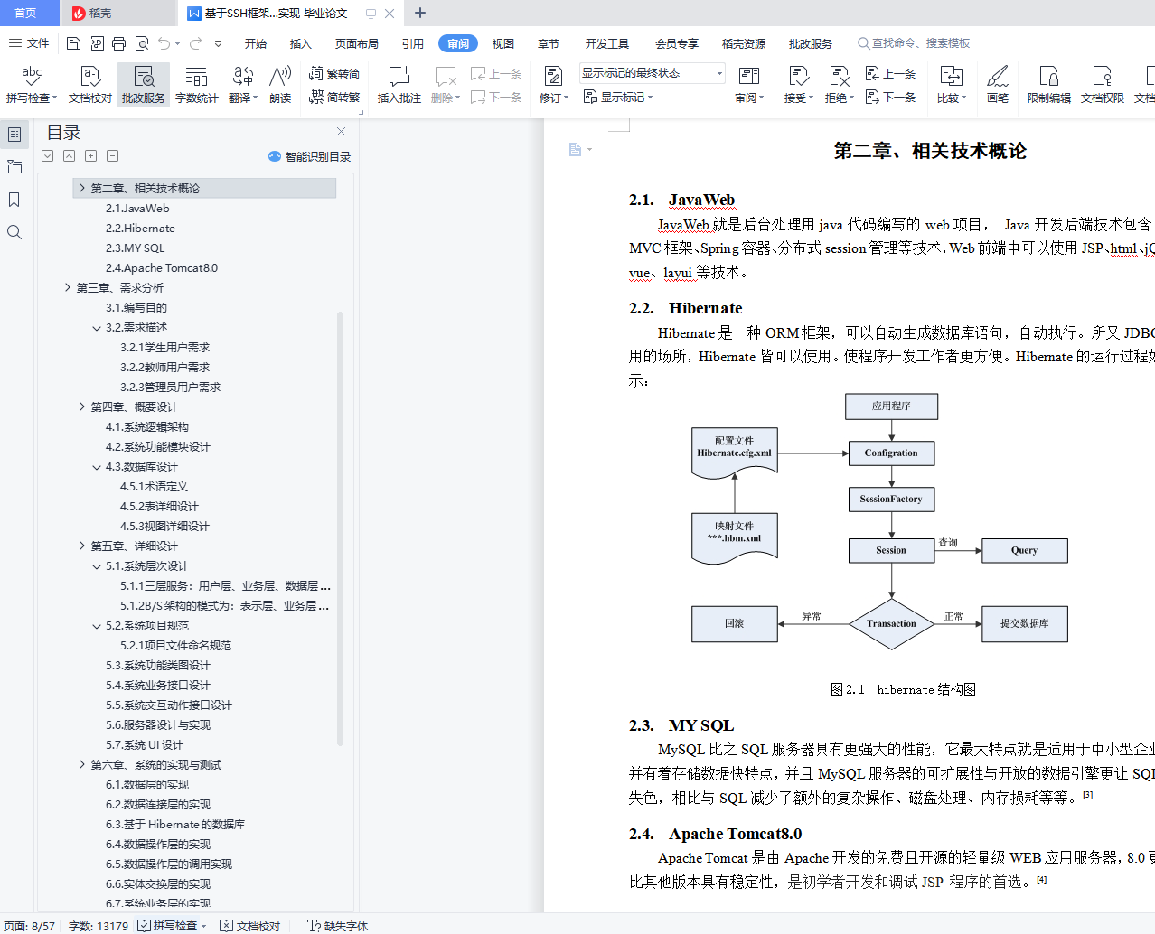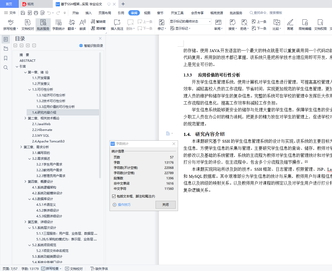 基于SSH框架的学生信息管理系统的分析与实现摘 要本次课题主要应用于高校学生管理,主要为解决高校学生管理工程量大,信息储存困难,流程复杂化而开发的一个管理系统,主要介绍开发工程师在开发系统过程中所经历的需求分析,系统的功能设计与数据库设计到代码的编写与完成,和对系统进行的各项测试,本人在本次课题内担任全栈开发工程师。依照本次课题所设计的管理系统,为解决各项难题所需要用到Spring、Spring MVC 、Hibernate以及B/S框架技术和前端的Layui框架,数据库采用MySQL服务器。该系统完成后,能够减轻高校管理人员的工作负担,高效率、规范化地处理、储存大量的学生信息,促进学校对于学生的规范管理。本次课题能积累大量的开发经验与了解高校学生管理的复杂逻辑,熟悉系统开发的生命周期,锻炼独立解决问题能力,更多的了解系统各项错误的解决方法。关键词:基于SSH框架的学生信息管理系统;全栈开发工程师;Spring+SpringMVC +Hibernate;B/S;J2EE;ASP;JavaABSTRACTThis subject is mainly applied to the management of college students. It is mainly developed to solve the problems of large amount of student management engineering, difficult information storage and complicated process. It mainly introduces the requirement analysis experienced by the development engineer in the process of developing the system, the functional design and database design of the system to the compilation and completion of the code, and the various tests of the system. I am a full stack development engineer in this project.[][1]According to the management system designed in this paper, in order to solve the problems, Spring~SpringMVC, Hibernate, B / S framework technology and front-end Layui framework are used, and the database adopts MySQL server.[][2]After the completion of the system, the work burden of university managers can be reduced, a large number of student information can be processed and stored efficiently and standardized, and the standardized management of students can be promoted.This project can accumulate a lot of development experience to understand the complex logic of college student management, familiar with the life cycle of system development, exercise the ability to solve problems independently, and more understand the solutions to the errors of the system.Key Words: Student information management system based on SSH framework; full stack development engineer;Spring+SpringMVC+Hibernate;B/S;J2EE;ASP;Java目 录摘 要 IABSTRACT II引言 1第一章、绪 论 31.1. 开发背景 31.2. 开发意义 31.3. 可行性分析 31.4. 研究内容介绍 4第二章、相关技术概论 52.1. JavaWeb 52.2. Hibernate 52.3. MY SQL 52.4. Apache Tomcat8.0 5第三章、需求分析 73.1. 编写目的 73.2. 需求描述 7第四章、概要设计 94.1. 系统逻辑架构 94.2. 系统功能模块设计 104.3. 数据库设计 14第五章、详细设计 275.1. 系统层次设计 275.2. 系统项目规范 275.3. 系统功能类图设计 285.4. 系统业务接口设计 285.5. 系统交互动作接口设计 345.6. 服务器设计与实现 395.7. 系统UI设计 39第六章、系统的实现与测试 436.1. 数据层的实现 436.2. 数据连接层的实现 436.3. 基于Hibernate的数据库 436.4. 数据操作层的实现 436.5. 数据操作层的调用实现 446.6. 实体交换层的实现 456.7. 系统业务层的实现 476.8. 信息业务层的调用实现 476.9. 控制层的实现 486.10. 控制层的调用实现 486.11. 表示层的实现 496.12. 软件测试用例说明 496.13. 测试报告 52结 论 53致 谢 54参考文献 55