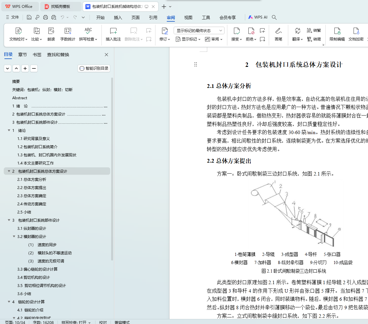 2 包装机封口系统总体方案设计 ……………………………………………7
