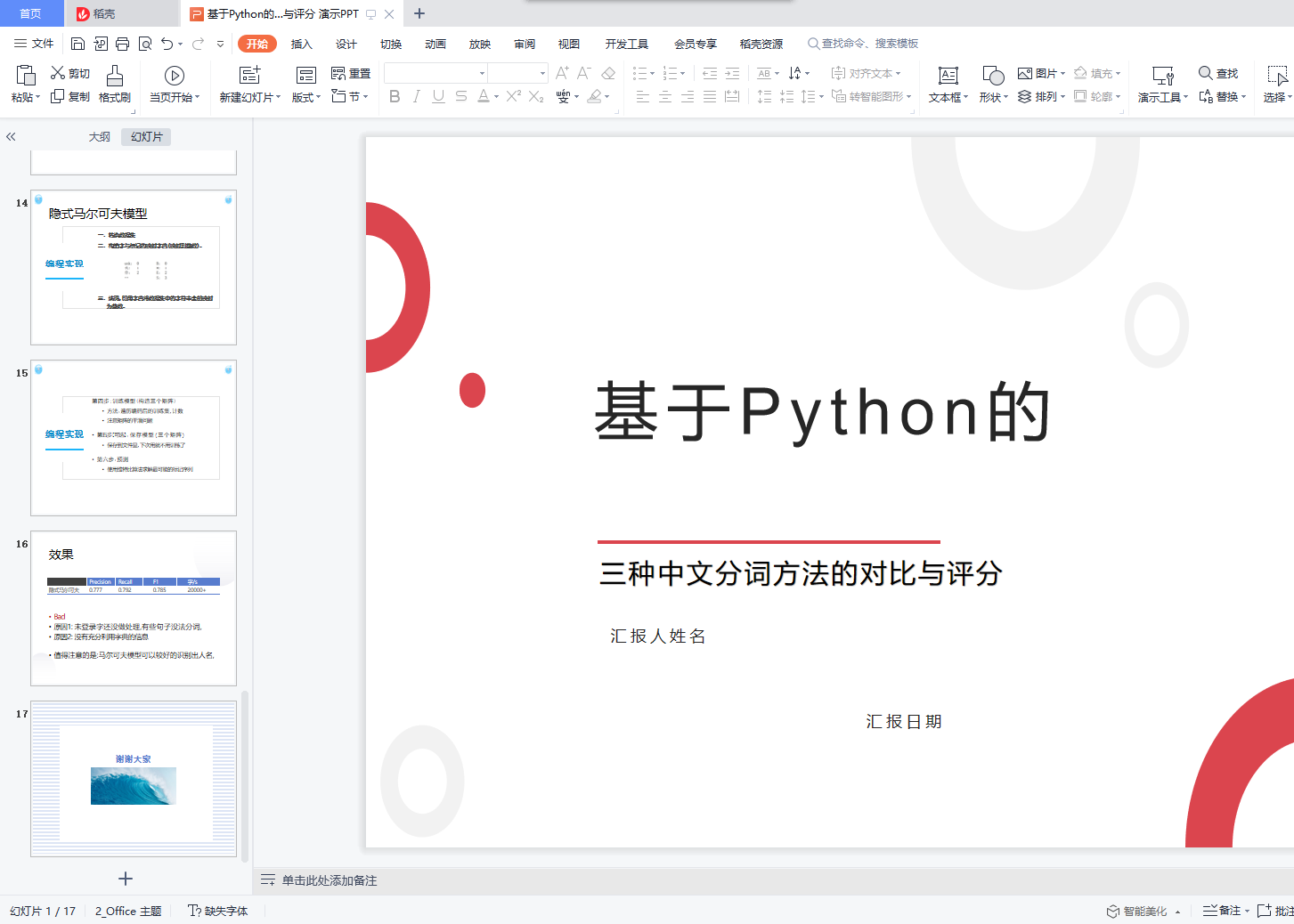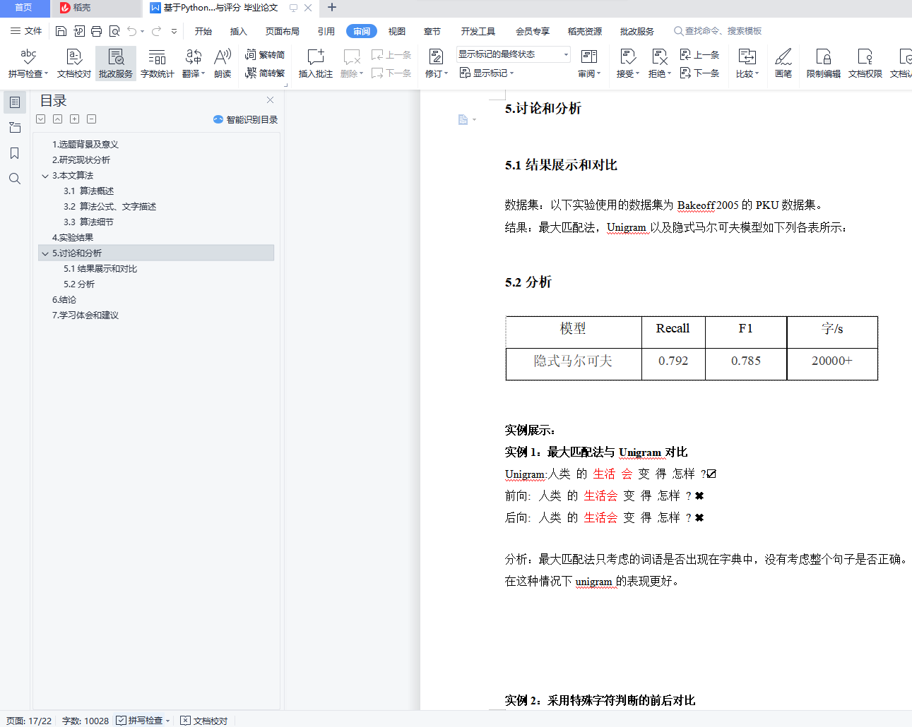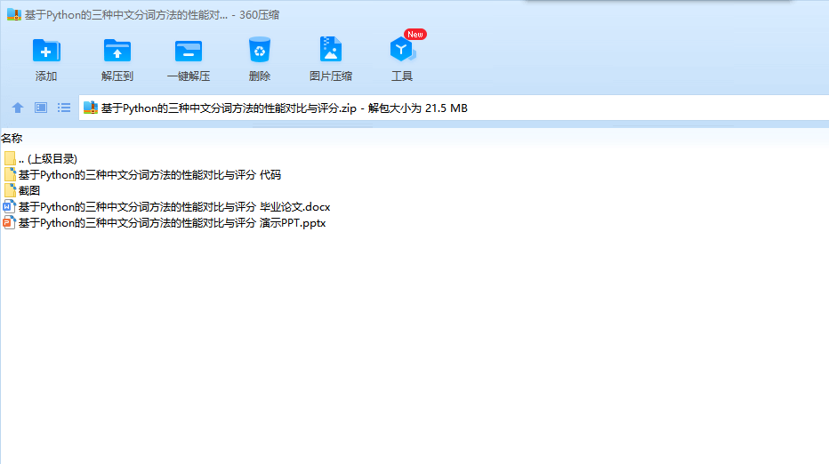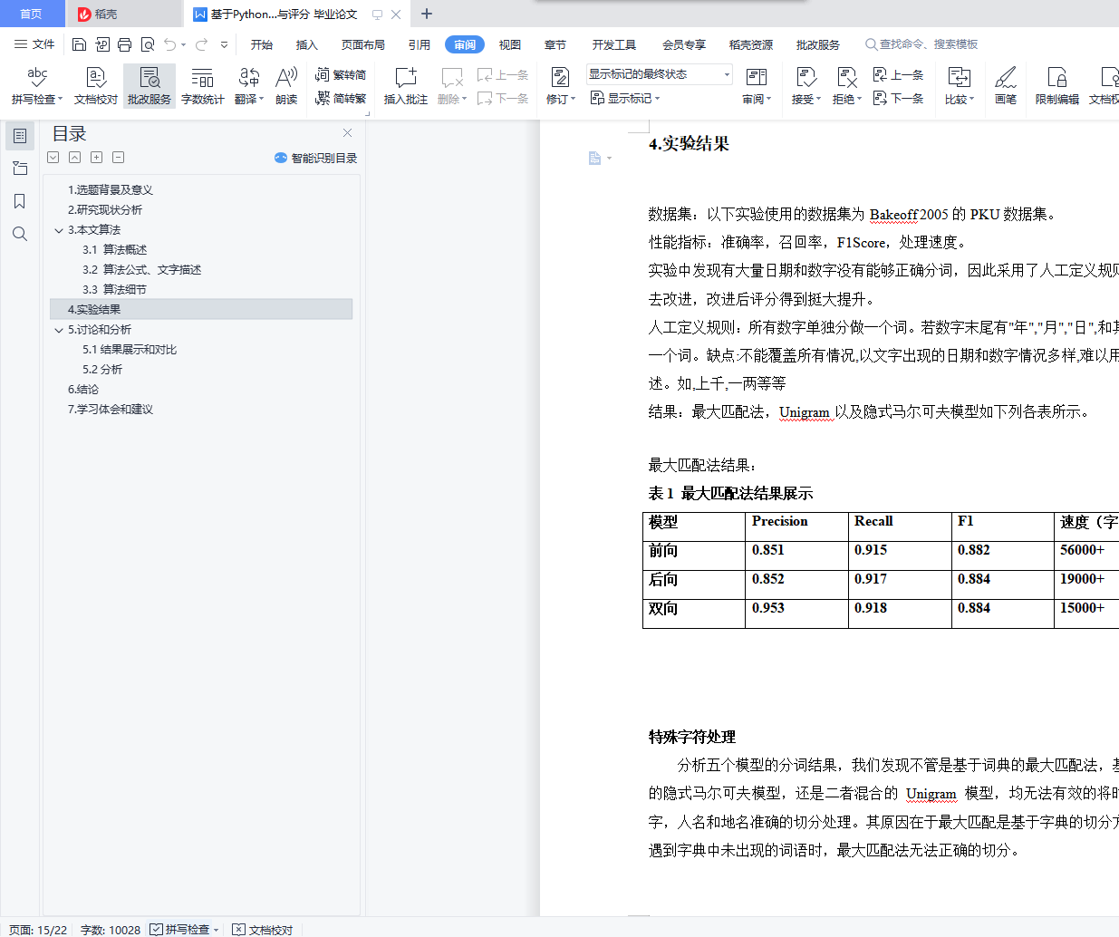 基于Python的三种中文分词方法的性能对比与评分 毕业论文+演示PPT+源码