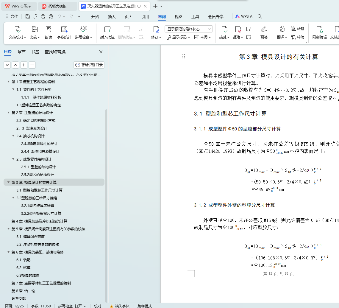 3.1 型腔和型芯工作尺寸计算…………………………………………… 9