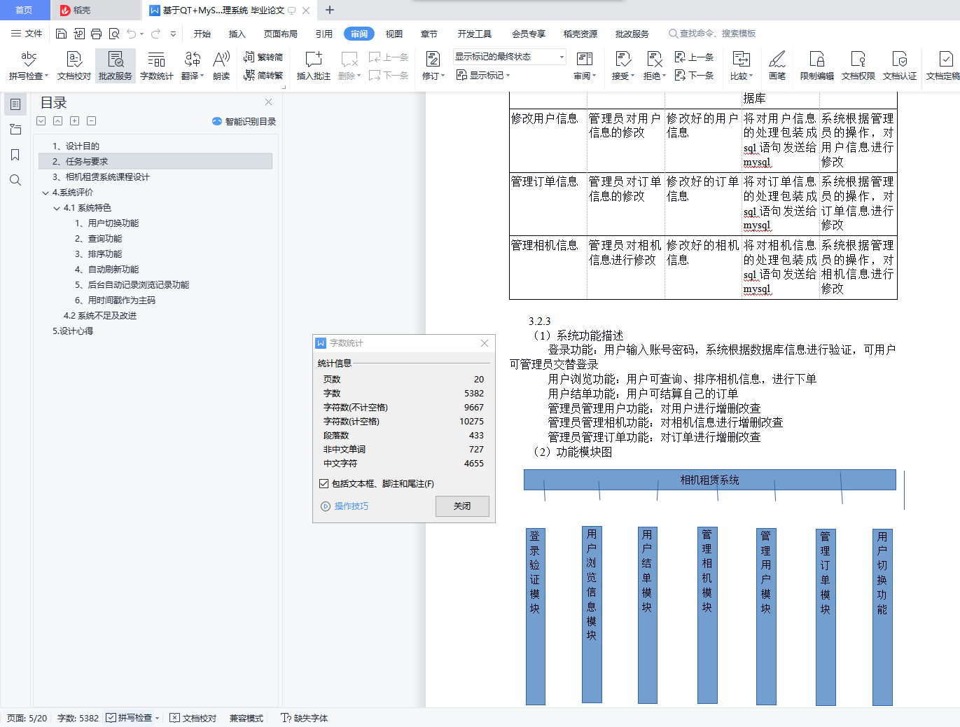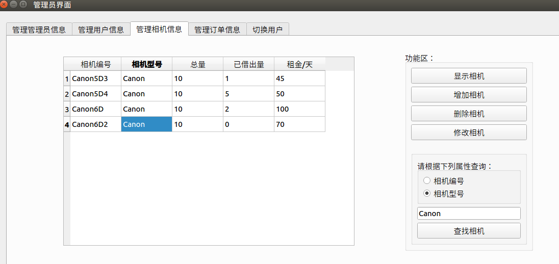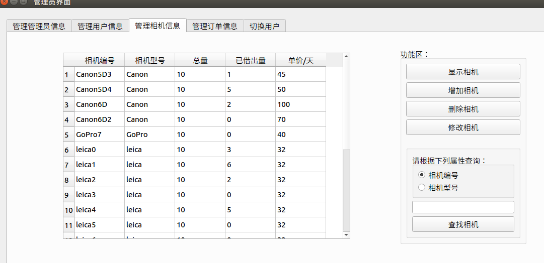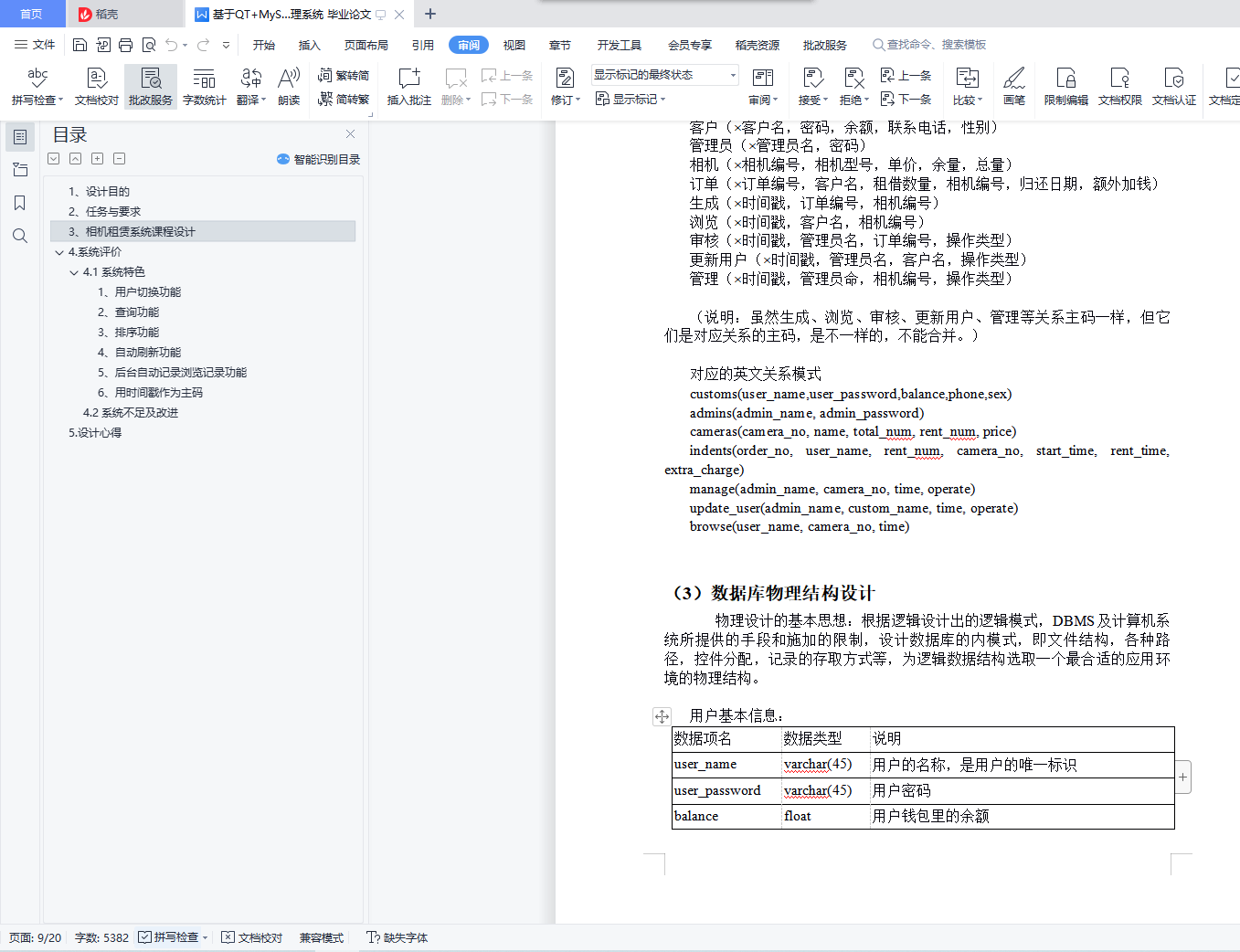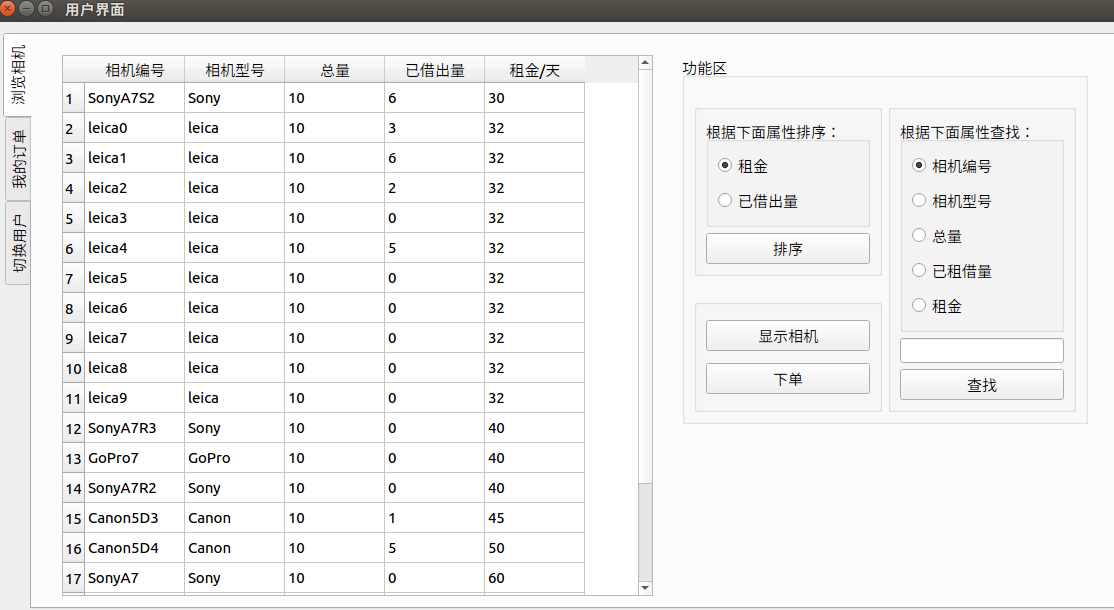 目录1、设计目的 12、任务与要求 13、相机租赁系统课程设计 14.系统评价 214.1 系统特色 211、用户切换功能 212、查询功能 213、排序功能 214、自动刷新功能 215、后台自动记录浏览记录功能 216、用时间戳作为主码 224.2 系统不足及改进 225.设计心得 221、设计目的《数据库系统原理》课程设计是软件工程和计算机科学与技术专业集中实践性环节之一,旨在让同学们加深对数据库基础理论和基本知识的理解,掌握设计数据库管理系统的基本方法,锻炼运用知识解决实际问题的动手能力。2、任务与要求要求学生们从给定的设计题目中进行选择,进行需求分析,概念设计、逻辑设计,数据库的设计过程,表结构、表之间的关联,给出视图的定义、触发器的定义、索引,安全性的实现,用SQL语句等在SQL Server 2008系统中实现数据库的数据输入,查询,更新和输出;给出实现效果截图及部分测试结果。3、相机租赁系统课程设计3.1 引言现在手机的拍照质量已经能够满足人们对于拍照的需求了,但是共享相机应用的开发还是很有必要。手机拍照存在着很多的不足,在一些场合像是出外旅游,重要的场合拍照,这些都需要专业的拍照设备。只有相机才能拍出质量高,画面好的照片。不可否认的是手机拍照的优势,简单实用场景广泛。只需要轻轻地按一下拍照键,就能生成图片,还配有各种各样的功能和表情,丰富拍摄体验,应对日常的自拍等。但是对于有时候对于要求高一点的时候,手机拍照就显得不足。就需要专业的相机拍照来弥补。面对一些大场景的拍照,特写,手机拍出来的照片会比较的模糊,成像不清晰,噪点多等问题。而相机能够解决这些问题,通过拍摄技巧的拍摄参数的设定,便能解决这些问题。 共享相机应用面对的市场需求是手机拍照功能的不足,相机流入渗透用户率低下的市场的状况,所以共享相机应用的开发很有必要。3.2需求分析3.2.1系统调查的方法:系统需求的调差方法为访谈法和亲自参加业务活动。在做系统之前亲自询问了在网上租赁过相机的同学,了解相机租赁的基本流程和需要注意的步骤。自己也亲自上淘宝,京东等网上商店体验了一遍相机租赁的流程。系统的主要任务是用户进行浏览、下单,管理员管理用户、相机、订单,实现对其的增删改查,并把结果保存到数据库中。完整性要求:防止不符合语义的数据进入数据库,定义断言实现。安全性要求:需要防止客户对数据进行未经授权的访问,定义视图实现。性能要求:最好能够实现并发访问,允许多个用户同时对数据库中的数据进行访问。一致性要求:防止数据库进入不一致状态。数据库要求:各种各样的故障都可能发生,出现意外时,尽可能的确保任何数据在任何情况下都不会丢失。使用数据库镜像技术实现。3.2.2业务流程(1)业务流程用户登录系统,浏览相机信息,生成相应订单。用户可以对订单进行结算。管理员登录系统,管理管理员信息、管理用户信息、管理相机信息、管理订单信息。管理员对相机进行检查,可对相应订单进行加钱处理。管理员和用户可以相互切换。