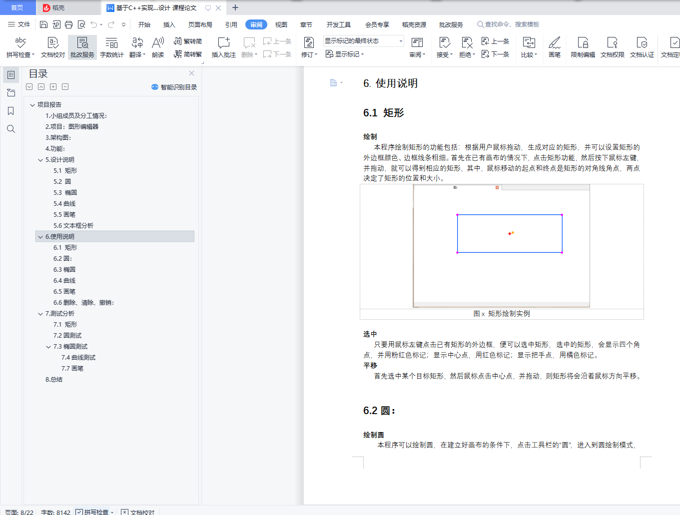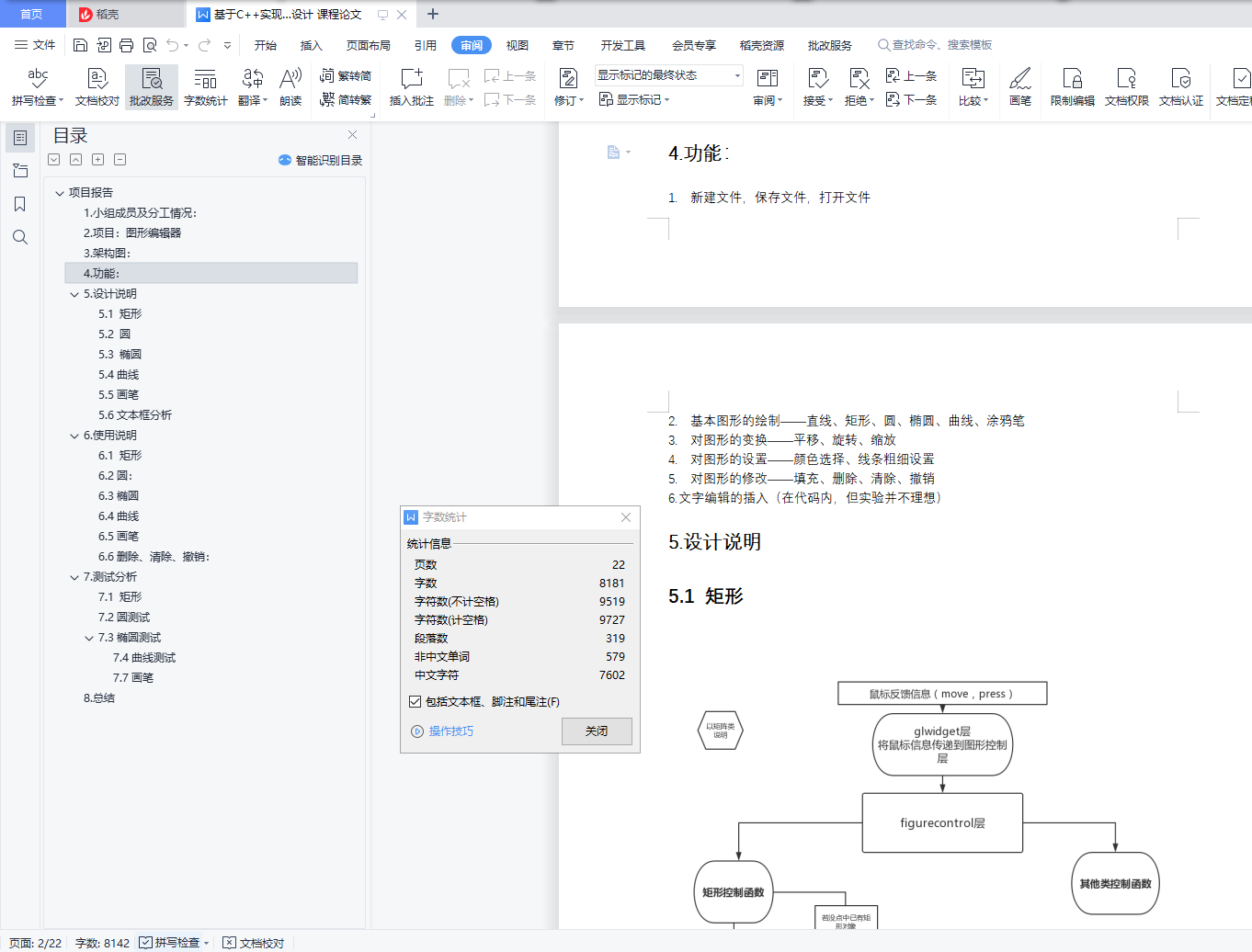 项目报告目录项目报告 11.小组成员及分工情况: 12.项目:图形编辑器 23.架构图: 24.功能: 25.设计说明 25.1 矩形 25.2 圆 35.3 椭圆 45.4曲线 65.5画笔 65.6文本框分析 76. 使用说明 86.1 矩形 86.2圆: 86.3椭圆 106.4曲线 126.5画笔 136.6删除、清除、撤销: 137. 测试分析 147.1 矩形 147.2圆测试 157.3椭圆测试 168.总结 211.小组成员及分工情况::负责窗口类搭建和交互,完成曲线类的具体实现,完成颜色选择、保存、打开文件的操作。:负责Point类的构建,完成对椭圆和画笔两个功能。完成所有图形设置线宽的操作。:完成Circle类和CircleControl类的具体实现。完成填充,删除,撤销的具体实现。:负责直线绘制、SimpleFigure类的构建、完成Rectangle类和RectangleControl类的具体实现。