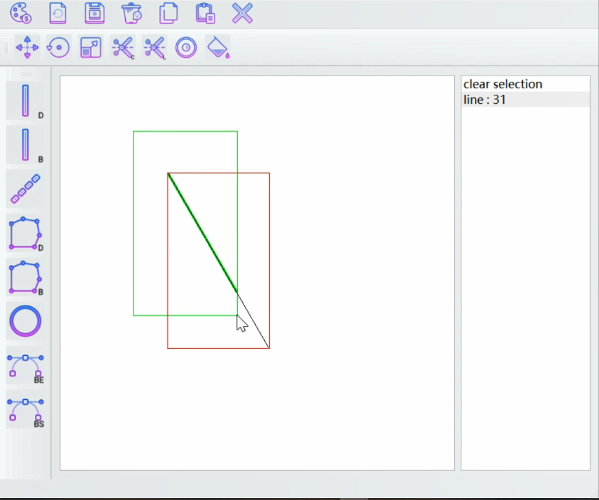 目录1 综述 12 算法介绍 22.1 绘制线段 22.1.1 DDA算法 22.1.2 Bresenham算法 22.1.3 代码处理 22.2 绘制多边形 32.3 绘制椭圆 32.4 绘制曲线 32.4.1 Bezier曲线 32.4.2 B-spline曲线 32.4.3 代码处理 32.5 平移 42.6 旋转 42.7 缩放 42.8 裁剪 42.8.1 Cohen-Sutherland算 42.8.2 Liang-Barskey算法法 43 系统介绍 53.1 CLI框架 53.2 GUI框架 53.3 GUI功能 63.4 额外功能 93.4.1 界面美化 93.4.2 菜单部分 93.4.3 绘图工具栏 103.4.4 编辑工具栏 104 总结 104.1 遇到的一些问题 104.2 6月更新 104.2.1 添加功能 104.2.2 bug修正及其他更新 11参考文献 111综述在老师所给框架代码上进行修改完善,完成了所有要求的指令输入输出,GUI界面实现了CLI部分的所有功能,包括设置画笔颜色、重置画布、保存画布、两种算法绘制线段、两种算法绘制多边形、绘制椭圆、两种算法绘制曲线、平移、旋转、缩放和两种算法裁剪线段.额外实现了如下内容:•点击画布右、下、右下角边框调整画布大小; 点击画布选择图元; 编辑时显示平移等操作控制点.•删除选中图元,复制选中图元,粘贴已复制图元.•绘制虚线段; 凸多边形和椭圆填充.•更美观的界面.2算法介绍2.1绘制线段2.1.1DDA算法基本思想是记下起点,然后让长的一边变量不断加一,短的一边则不断加斜率乘1后近似为int值.代码参照[7].2.1.2Bresenham算法基本思想其实和DDA是一样的.只是Bresenham算法通过变形避免了浮点运算.这样一来,既提高了运算的效率,又避免了浮点数不断累加造成的长线段误差.所以本质上,Bresenham是DDA算法的优化形式.代码参照[7].2.1.3代码处理•特判使得能够处理两端点相等的情况.•因为讲义中说不要求像素级一致,所以和伪代码一样只亮一边端点,即线段点的范围[P0, P1).2.2绘制多边形默认指令中的点是排好序的, 直接调用线段绘制算法按顺序连点.2.3绘制椭圆使用ppt上的中点椭圆算法, 先画出1/4椭圆, 然后对称. 画1/4椭圆时,根据是否到达切线斜率为-1的位置, 来判断选点的方向是基于x还是基于y, 再根据实际椭圆上的点离哪个点更近取近似.实际代码要先求出中心和长短轴, 然后以中心为原点求点, 再映射回原来的坐标系.对称的时候考虑了x轴和y轴上的特例, 不然x=0和y=0的点对称后相当于1个点出现了两次.代码流程参考书上ppt相关部分.