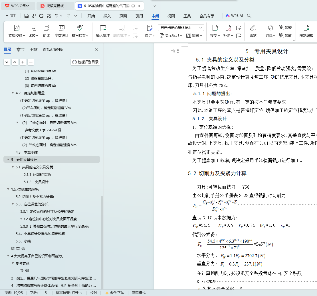 5.2 切削力及夹紧力计算: