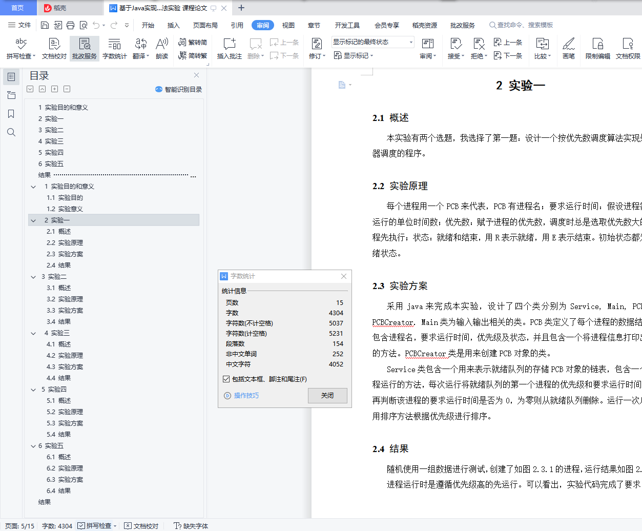 摘 要操作系统实验的实验目的是为了了解处理器调度,存储空间的分配与回收,进程与程序的区别以及死锁的避免。实验内容主要包括:1、选择一个调度算法,实现处理器调度。2、主存储器空间的分配和回收。3、模拟磁盘空闲空间的表示方法,以及模拟实现磁盘空间的分配和回收。4、利用fork()系统调用创建进程。5、设计实现银行家算法。目 录1 实验目的和意义1.1 实验目的 ………………………………………………………………………11.2 实验意义 ………………………………………………………………………12 实验一2.1 概述…………………………………………………………………………… 22.2 实验原理……………………………………………………………………… 22.3 实验方案……………………………………………………………………… 22.4 结果…………………………………………………………………………… 23 实验二3.1 概述…………………………………………………………………………… 43.2 实验原理……………………………………………………………………… 43.2 实验方案……………………………………………………………………… 43.4 结果…………………………………………………………………………… 54 实验三4.1 概述……………………………………………………………………………… 64.2 实验原理……………………………………………………………………… 64.3 实验方案……………………………………………………………………… 64.4 结果…………………………………………………………………………… 75 实验四5.1 概述……………………………………………………………………………… 85.2 实验原理………………………………………………………………………… 85.3 实验方案………………………………………………………………………… 85.4 结果……………………………………………………………………………… 86 实验五6.1 概述…………………………………………………………………………… 106.2 实验原理……………………………………………………………………… 106.3 实验方案……………………………………………………………………… 116.4 结果…………………………………………………………………………… 12结果 …………………………………………………………………………………… 131 实验目的和意义1.1 实验目的本实验分为五个小实验,实验一的目的是模拟在单处理器环境下的处理器调度,加深了解处理器调度的工作。实验二的目的是理解在不同的存储管理方式下应怎样进行存储空间的分配和回收。实验三的目的是掌握磁盘存储空间的分配和回收算法。实验四的目的是了解进程的创建过程,进一步理解进程的概念,明确进程和程序的区别。实验五的目的是了解死锁的避免,掌握银行家算法。1.2 实验意义通过完成本实验,深入了解操作系统的处理器调度,存储调度,进程线程调度,从而了解操作系统对各类资源的分配方式以及是如何利用各类算法提高系统对资源的利用率。