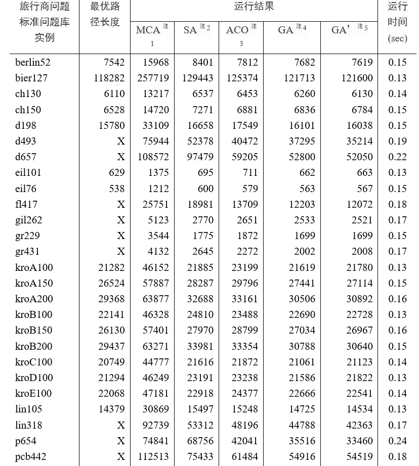 基于对称TSP问题的研究摘 要 旅行商问题(简称TSP)是一个著名的NP-Hard问题,也是离散优化的一个经典的重要问题,对其相关求解算法的研究非常重要。本文在介绍了TSP问题本身相关的问题后,又详细讨论了求解TSP问题的动态规划方法、改良圈算法、二交换算法、模拟退火算法、蚁群算法、遗传算法,并通过整合各种优化方式,对遗传算法进行了少量优化。针对测试库中的的改良圈算法、模拟退火算法、蚁群算法、遗传算法。本文使用MATLAB软件实现这些算法,并对这些算法的运行时间和解进行比较分析等研究。结果表明在任何清空下改良圈算法的性能都最差,其余算法在小型TSP问题下差别不大,在较大型TSP问题下,模拟退火所用时间最短,蚁群算法所用时间最长,遗传算法的解最好。实验结果证明,改进后的遗传算法效果不明显,在解的大小上改善1%-3%,但时间提高了10%。关键词 对称TSP问题; 算法研究; 近似算法;模拟退火;遗传算法;蚁群算法Study based on symmetric TSP problemXu Bu-Fan Yan Yang-Sheng Dong Xiu-Liang Wang You-Wei Yu Yong-XunAbstract Travelling salesman problem (TSP) is both a well-known problem as a NP-Hard problem and a classical problem in the field of discrete-optimization. This paper first introduce something about itself, then discusses many ways such as dynamic programming, 2-opt, exchange algorithm, simulated annealing algorithm, ant colony optimization and genetic algorithm in detail. After that, this paper proposes an improved genetic algorithm by the means of integrating many papers’ methods.Finaly, this paper .Experiments show that Improved cycle algorithm perFORms worst, and when it comes to small TSP problems, those algorithms perFORms familiar. However, when solving big TSP problems, simulated annealing algorithm solves quickest as ant colony optimization takes longest, and YICHUAN makes the best solution. Experiments also show that the improved algorithm makes approximately 3%~5% improvement FOR the last length but time takes 10% more.Key words Symmetric TSP problem; Algorithm research; approximate algorithm; simulated annealing; genetic algorithm; ant colony algorithm目录基于对称TSP问题的研究 1Study based on symmetric TSP problem 11 引言 21.1 TSP问题 22 相关概念与工作 32.1 TSP相关算法概述 32.2 动态规划算法 42.3 改良圈算法 42.4 交换算法 42.5 模拟退火算法 52.6 蚁群算法 52.7 遗传算法 52.8 郭涛算法 53 算法设计 73.1 模拟退火算法 73.1.1 算法设计思想 73.1.2 伪代码 73.2 改良圈算法 73.2.1 算法设计思想 73.2.2 伪代码 73.3 动态规划算法 83.3.1 算法设计思想 83.3.2 伪代码 83.4 蚁群算法 83.4.1 算法设计思想 83.4.2 伪代码 83.5 遗传算法 93.5.1 算法设计思想 93.5.2 伪代码 93.6 遗传算法的优化 103.6.1 算法的设计思想 103.6.2 改进方法[5] 104 实验 104.1 实验环境 104.2 实验结果分析 104.2.1 改良圈算法 104.2.2 模拟退火算法 124.4.3 蚁群算法 134.4.4 遗传算法 154.4.5 改进的遗传算法 164.3 总体数据及分析 185参考文献 20I.附录1――分工 22II.附录2――心得与体会 22(1): 22(2: 23(3): 23(4): 23(5): 23III.附录3――失败的改进之一 23