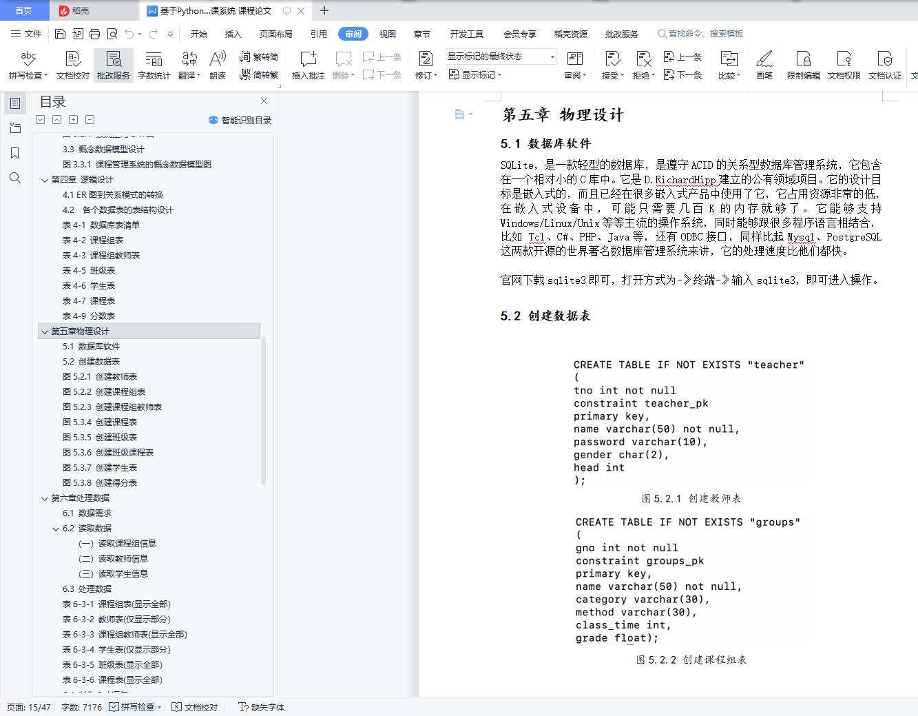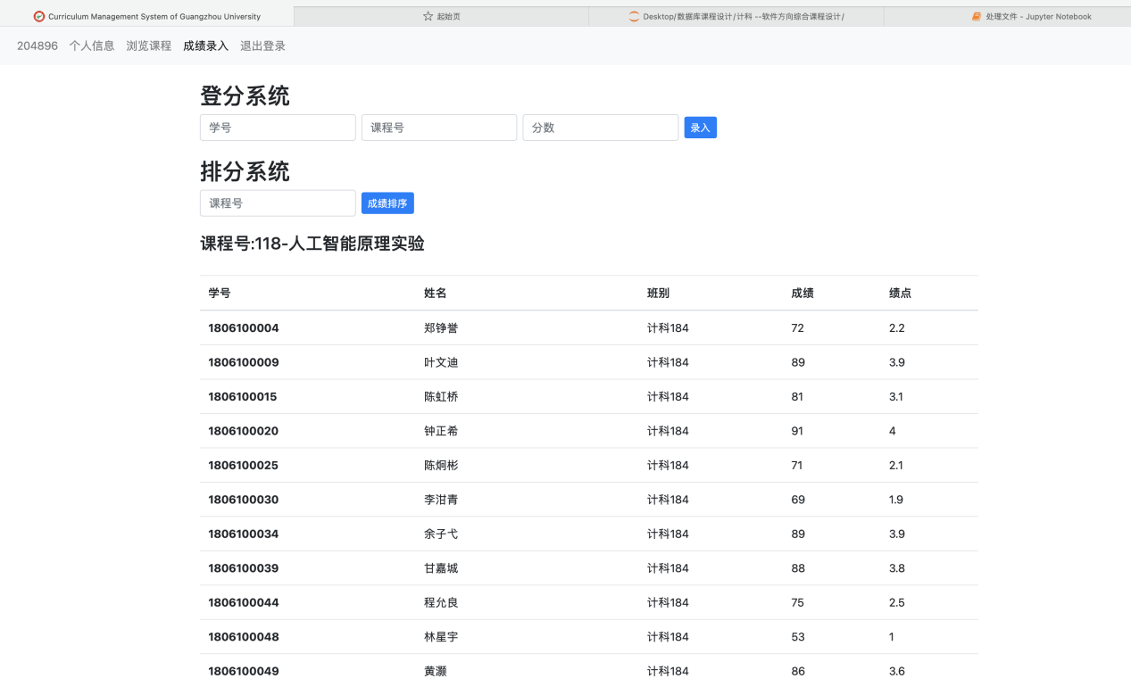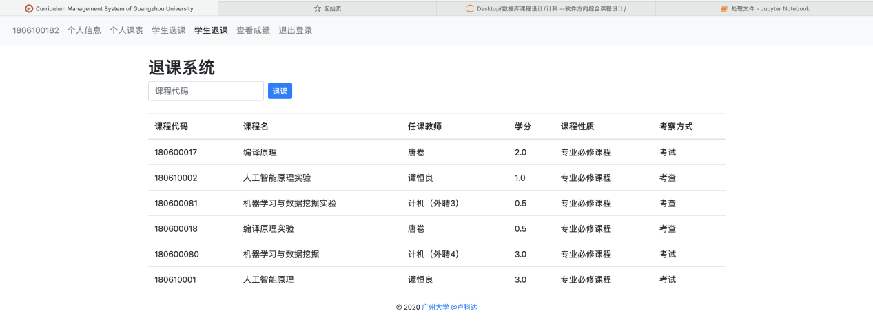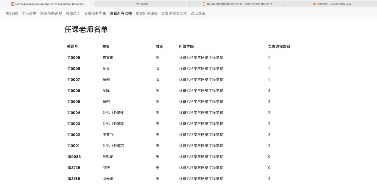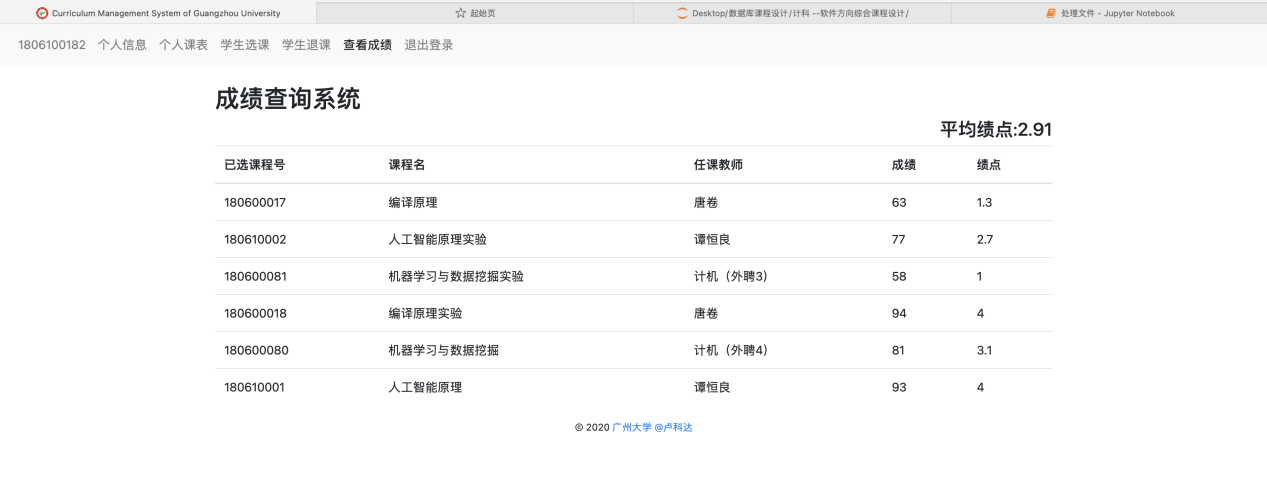 目录第一章 系统需求简介 41.1需求分析 41.2 数据结构需求分析 41.3系统功能设计 5第二章 需求描述 82.1 数据流图 82.2 数据字典 9第三章 概念设计 103.1 实体 103.2 系统全局E-R图 113.3 概念数据模型设计 12第四章 逻辑设计 134.1 ER图到关系模式的转换 134.2 各个数据表的表结构设计 13第五章 物理设计 155.1 数据库软件 155.2 创建数据表 15第六章 处理数据 186.1 数据需求 186.2 读取数据 186.3 处理数据 196.4 制作Sql语句 22第七章 智能排课算法 287.1 排课要求 287.2 准备工作 287.3 遗传算法 307.4 适应度函数 327.5 排课效果 33第八章 系统实现 358.1 登陆界面 358.2 学生界面 358.2.1 学生个人信息界面 358.2.2 学生个人课表界面 368.2.3 学生选课界面 368.2.4 学生退课界面 378.2.5 学生查看成绩界面 378.3 教师界面 378.3.1 教师信息界面 378.3.2 任教课程和调课系统界面 378.3.3 课程学生名单界面 388.3.4 登分、排分系统界面 388.4 系主任界面 398.4.1 查看所有学生界面 398.4.2 班级成绩、专业成绩排序 398.4.3 查看所有老师 408.4.4 查看所有课程 408.4.5 查看所有班级课程表 42第九章 附录 459.1 遗传算法代码 459.2 数据库连接、增删改代码 539.3 前端设计代码 559.4 执行代码 55第一章系统需求简介1.1需求分析实现一个具体的课程管理系统。按照软件工程思路设计简化的专业课数据库,尽量模拟现有专业课程一个学期的选课排课原型实际情况。(注:本系统由本人单独设计、开发完成)1.2 数据结构需求分析课程管理系统需要完成功能主要有:(1) 学生基本信息的查询,学生可以对本人的系统登陆密码进行修改。(2) 学生定制专属课表,可以查看整个学期本人的课程安排,包括课程名称、上课时间、上课地点、任课老师、学分等等。(3) 学生可以进行选课,专业必修课程系统会提前帮助学生们选上。(4) 学生可以进行退课,专业必修课程不允许退课。(5) 学生可以查看自己选上的课的成绩,以及各个课程的得分、绩点,并给出其平均绩点,但不允许查看年级其他人的成绩。(6) 任课教师基本信息的查询,老师可以对本人的系统登陆密码进行修改。(7) 任课教师可以查看本人所任教课程信息,包括课程名称、上课时间、上课地点、上课班级等等。(8) 任课教师可以对其任教课程进行调课,调课在全部课程时间无冲突下可以成功调课。(9) 任课教师可以查看其教的每一个课程的学生名单。(10) 任课教师可以对其教的课程的学生进行登分以及修改分数。(11) 任课教师可以对其任教的班级成绩进行排序。(12) 系主任拥有包括以上所有任课教师所拥有权限,以及以下的额外权限。(13) 系主任可以查看整个系的全部学生以及他们的平均绩点,可以对每个班进行排名,或者也可以对整个系进行排名。(14) 系主任可以查看整个系的任教教师名单,以及他们所负责的课程数目。(15) 系主任可以查看整个学期所开设的所有课程,包括这些课程的全部详细信息。(16) 系主任可以查看每个班的课程安排表。1.3系统功能设计课程管理系统主要分为三个客户端登陆,分别是学生、任课教师和系主任,每个客户端的功能是不同的。这三个客户端的登陆拥有自己的功能实现。下面三个图分别是三个客户端的功能模块图。