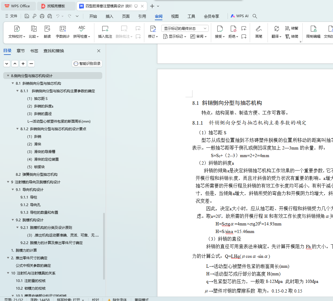 8.1.1 斜销侧向分型与抽芯机构主要参数的确定 …………………17