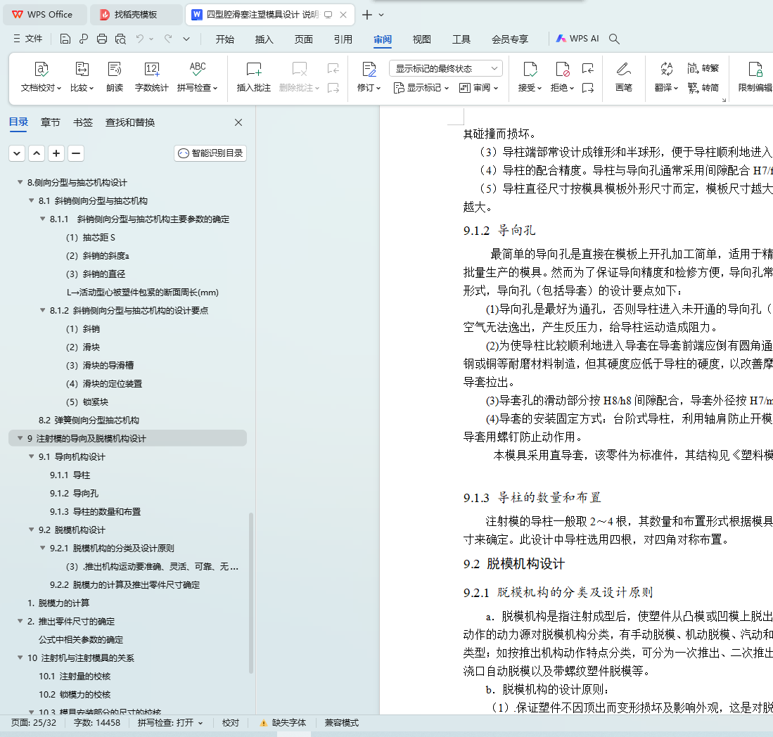 9.2 脱模机构设计……………………………………………………20