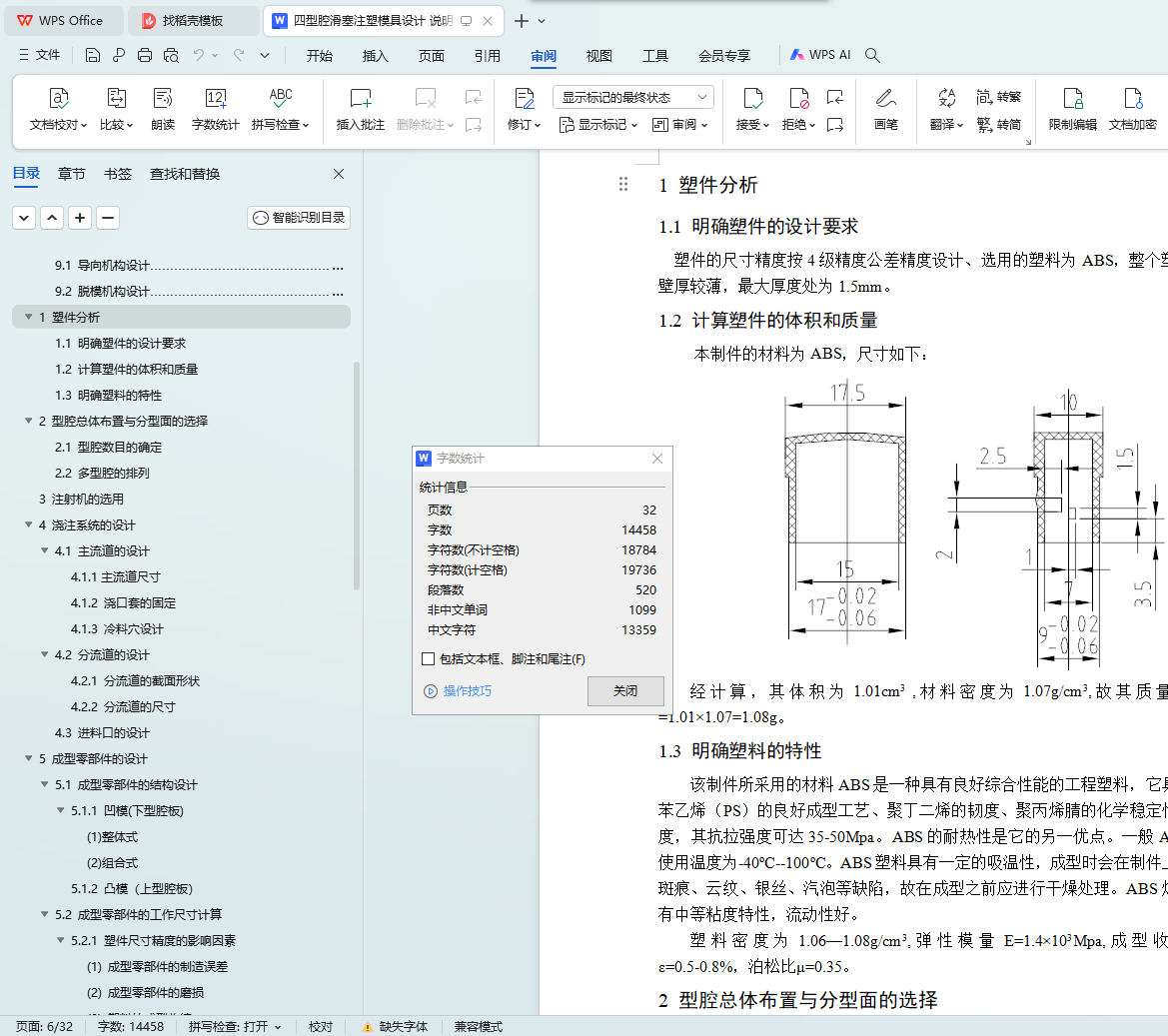 1.2 计算塑件的体积和质量……………………………………………1