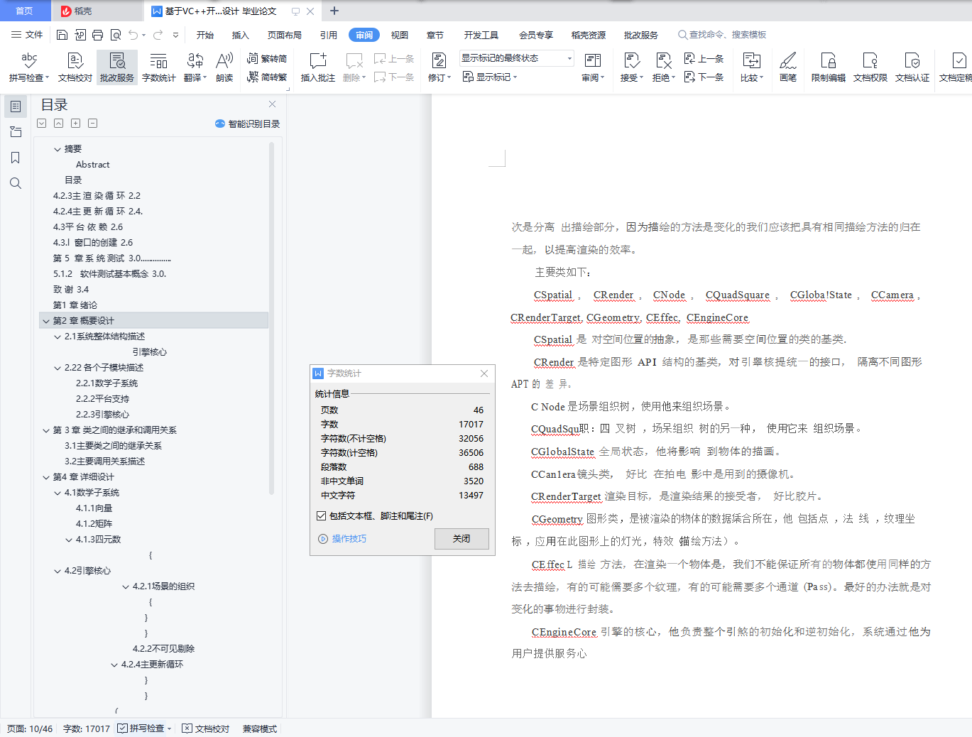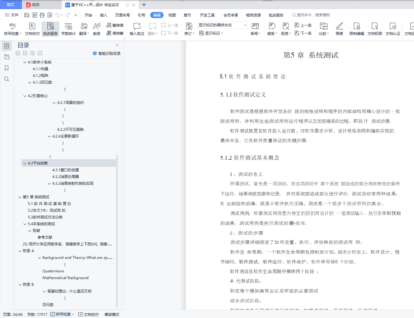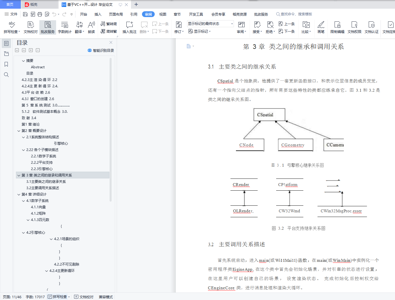 3D 引擎设计摘要本文应用面向对象设计方法, 开发一个实时渲染的图形引睾框架结构。在结构中主要使用OpenGL 函数接口,此结构也适用干 Direct3D。使用设计模,对框架进行抽象,分成以下子系统: 数 学系统,核心系统,平台支持系统。 对千数学系统主要提供在渲染过程中盆要用到的数学, 和线性代数。例如: 向 拭,矩阵等。核心系统 是整个结构的核心, 消息处理, 当 前帧的 渲染 都在核心系统中,它负责 调节, 调用和维护其他的子系统。平台支持,主要考虑到可能的夸平台原因而抽象出来的一层, 为将来使用.从比较低的级别上来看, 图形引擎负责描绘对观察者可见的物体。典型的就是使用阴形 APT. 例如 : O pe nGL、Direct 3D 来进行涫染, 描画相应的物体。从比较高的级别上来看,引煞 主要是封装了一些固定的算法,对场呆的组织和对底层的隔离, 让使用此框架进行应用开的开发人员不必考虑底层的细节问题。本系统在 Windows 平台上使用 VC++进行开发。关键词 3D 引擎结构; 场景组织; 四叉 树; 动态 细节度控制AbstractThls paper uses object-orie nted method to design a 3D graphic engine ru・crutect ure for real time rendering . In this framework major use OpenGL API .But the idea l apply equally as well as Direct3D. Use desigi1 pattern to abstract the stmct ure and divide into such subsystems: Mathematic su bsystem, Core subsystem、Platform supply subsystem. For the Mathematic su bsyste m. the major responsib 山 ty is to provide the require of mathematic and Lin ea r algebra .Such as vector ; matrix etc. Core subsystem is the core of the whole framework ,message process ,render cLment frame are all in this subsystem. It take responsibility for adjustment ,scheduLing and maintain other sttbsystems. Platform supply subsystem is in conside ring of boast platform for the fttture. At low-leve l, a g raphic s engine has the responsibili ty to draw the objects that are visible to an observer. Typically uses a grap hjcs APT such as OpenGL or Direct3D LO impleme nt a renderer whose job it isto correctly di-aw the objects .Al high-level ,a graphics en 伊 ne encapsulations some algorithm ,organize scene, separate the detail from low level, Let application programmers who use this engine without regard for the low level detail. Example with render API to use, develop on which platfor m, how to organize scene and some implicit algorithm. This system in the Windows platform us.ing VC + + for de velopmentKeywords 3D engine: arc血ecrure ; sce ne organize; quaternary t1・ee: dynamic detail control目录摘要 I.Abstract II第 I. 章 绪 论 Il . l 选 题 背 景 及 目 的 Il. 2 课 题 研 究 的 内 容 ......,..................,....................,..................................)第 2 章 概要设计 3..2.l 系 统整体结构描述 3..2.2 各个 子模块描述 ....... ...... .. ....................................….・ … ..................…. ・…・ 32.2.1 数学子系统 , 42.2.2 平 台 支 待 5...2.2.3 弓1 擎 核 心 ... ..................................,................,.........,.............,..........., 5第 3 章 类之间的继承和调用 关系 73.1 主要类之间的继承关系.....................… ...................…. ・・・・・・・・・・ ・・・・・・・・--・・・・ 73.2 主要调用关系描述 7第 4 章 详细设计 9..4.1数 学子系统 9..4.1.1 向黛 9...4.1.2 矩 阵 1.0....4.1.3 四 元数 1.1.....4.2弓!擎核 心 124.2.l 场 景 的 组 织 1.24.2.2 不可 见 剔 除 214.2.3主 渲 染 循 环 2.24.2.4主 更 新 循 环 2.4.4.3平 台 依 赖 2.64.3.l 窗口的创建 2.64.3.2 消息处理器 ....................................................................................2..7.............4.3.3消息映射机制的实现 2.7第 5 章 系 统 测试 3.0...............5.1 软件测试基础理论 3.05.1.l 软件测试定义 305.1.2 软件测试基本概念 3.0.5.2 软 件测试目的 315.3 软件测试方法分类,.......................................................................................3..1...5.3.1 静态浏试与动态测试.......,.............. ......, 315.4 本系统 的 测试 3.1结论..............,.......................,.., 3.3致 谢 3.4参考文献 3.5.附 录 A .............. ......... .. .. ............. ......... .. .. ............. ................ .......................... ........................... 36附录 B 40
