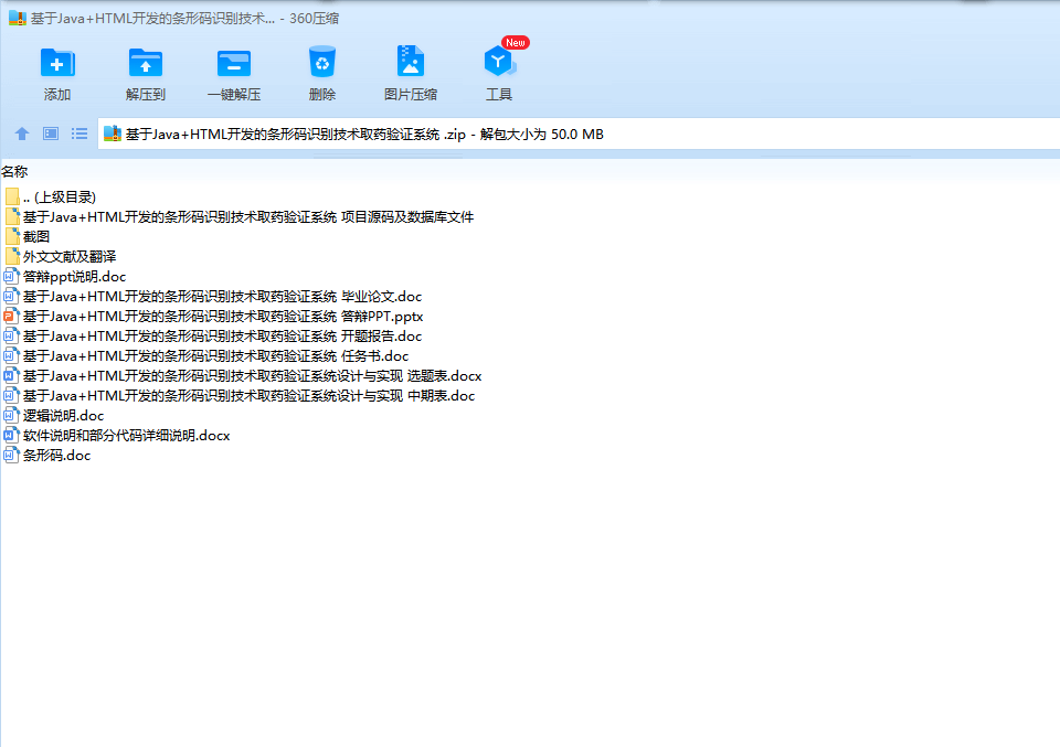 基于Java+HTML开发的条形码识别技术取药验证系统 毕业论文+任务书+选题表+中期表+开题报告+代码说明+外文翻译及原文+答辩PPT及说明+项目源码及数据库文件