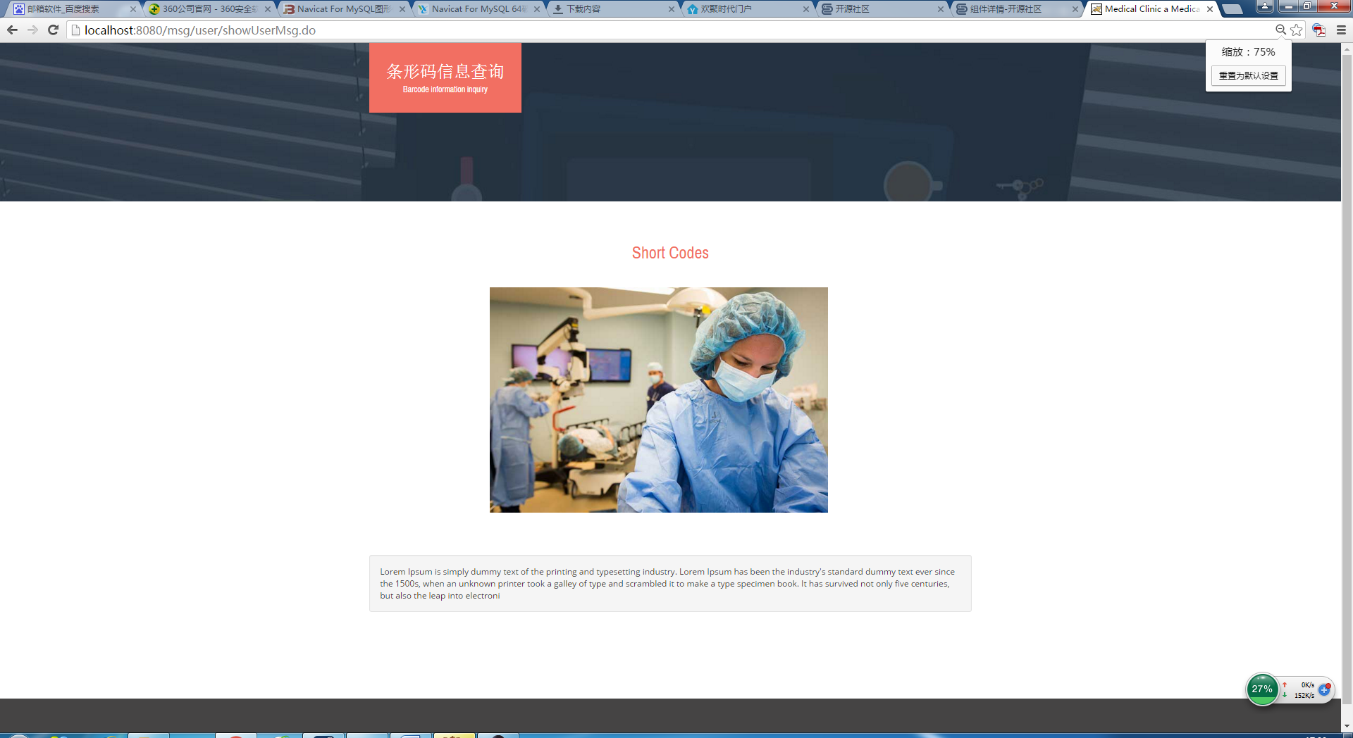 摘要本系统主要致力于验证取药这一环节,运用的是条形码识别技术。系统可以调取药单信息,对药品进行识别验证,将所取之药与药单上的药一一对应,减少取药出错事故。本系统在硬件设备上依赖于计算机与激光条形码阅读器,前端页面采用HTML+CSS布局,使用JavaScript进行数据交互与DOM操作,后端采用Java编程,数据库用的是MySQL。整个系统尽量做到了简洁、易于操作,并且便于与现有的医疗系统对接。通过使用本系统,可以快速地完成取药验证过程。主要目的是避免人多、药品繁杂、或在人工识别药品时出错等问题。通过本系统可查询药品位置,减少寻找药品的时间。并且本系统的存在意义不仅仅是减少药品出错率、解放人力,还与如今快速发展的社会相呼应。通过对现有的医疗系统进行完善,使得医院可以跟上时代的发展。最重要的是系统做到了将目前已经成熟的条形码识别技术应用到日常生活中。关键字:条形码识别技术;激光条形码阅读器;医疗系统;取药验证ABSTRACTThis system is mainly committed to the part of verification of drug taking, according to the use of barcode recognition technology. To reduce the error of drug taking, the system can transfer information list, along with recognizing and verifying of drugs, and correspond the drugs to be taken and drugs in list one-to-one. This system relies on the computer and the laser barcode reader in hardware equipment, and the front page layout uses HTML + CSS, JavaScript data exchange and DOM operation, meanwhile, backend is by means of Java programming and database uses MySQL. The whole system to accomplish simple and easy to operate as far as possible, and easy to dock with the existing medical system.We can complete the process of drug taking and verification quickly through using this system. The main purpose is avoiding some problems, such as crowds and drugs complex or error in manual identification of drugs. We can search the location of drugs and reduce the time of searching drugs through the use of this system. Also, the significance of this system is not only reducing the error rate of drugs and liberating human, but working in concert with rapid development of social nowadays. According to improve and perfect the medical system, hospitals can flow steps with the development of the times. The most important thing is the system can apply the mature barcode recognition technology to the daily life.Keywords: barcode recognition technology; the laser barcode reader; medical system;drug taking and verification目录摘要 IABSTRACT II引言 21 课题研究背景与研究意义 31.1 研究背景 31.2 技术背景 51.2.1 硬件支持 51.2.2 软件支持 61.3 研究意义 72 系统分析 82.1 系统功能要求 82.2 系统性能要求 83 系统设计 103.1 整体逻辑设计 103.2 功能模块设计 103.3 数据库设计 103.3.1 设计概述 103.3.2 数据库设计图 113.3.3 数据表 113.3.4 数据库E-R图 133.4 系统功能流程图 153.4.1 打开首页流程图 153.4.2 系统登录流程图 153.4.3 扫描药单流程图 153.4.4 验证药品流程图 163.4.5 查询药品流程图 173.4.6 药单验证结果流程图 174 系统功能实现与说明 184.1 系统首页 184.1.1 判断管理员是否处于登录状态实现 184.1.2 登录状态页面 184.1.3 未登录状态页面 194.2 登录页 194.2.1 登录页实现 194.2.2 管理员登录页面 204.3 扫描条形码 214.3.1 扫描成功后处理实现 214.3.2 扫描条形码过程 214.4 药单信息 224.4.1 扫描药单处理实现 224.4.2 扫描药单成功页面 224.5 验证药品 234.5.1 扫描药品处理实现 234.5.2 验证药品成功页面 244.5.3 验证药品数量处理页面 244.5.4 验证药品失败页面 254.6 查询药品 254.6.1 查询药品实现 254.6.2 查询药品页面 274.7 验证结果 284.7.1 返回验证药单结果实现 284.7.2 验证药单成功页面 294.7.3 验证药单失败页面 295 结论与展望 30致谢 31参考文献 32