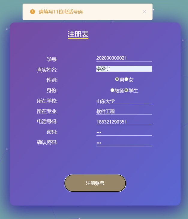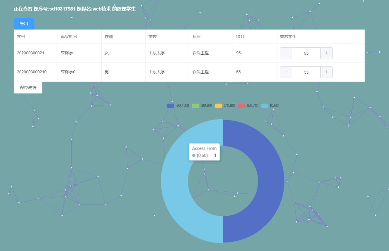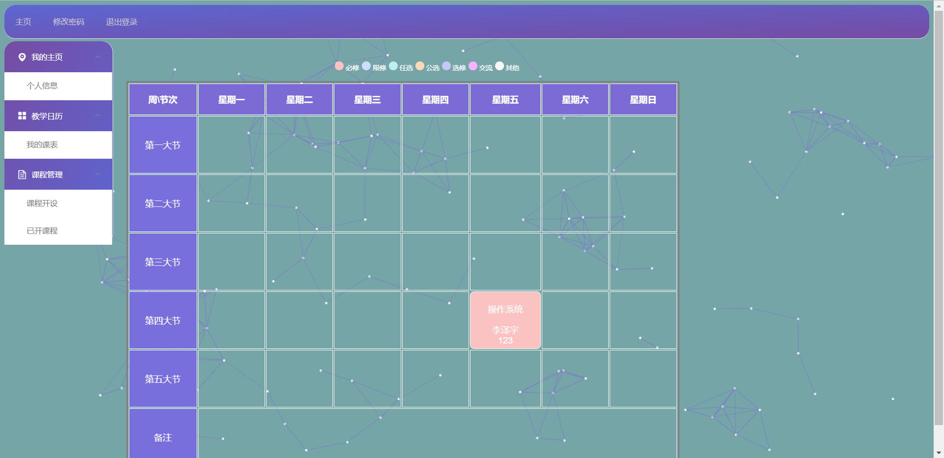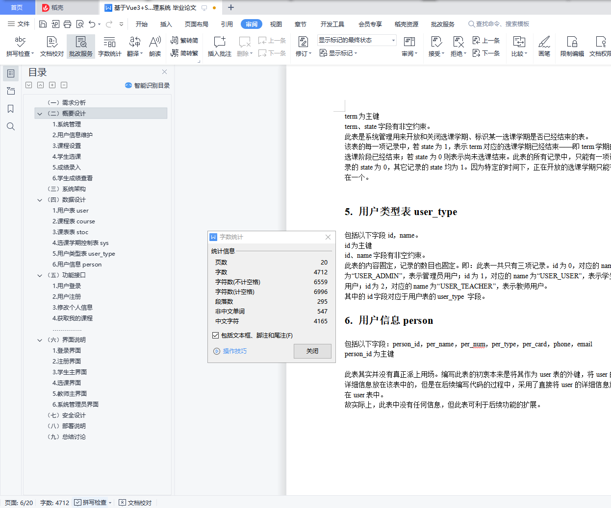 题目:学生选课管理系统目的:熟练掌握和灵活应用网站的规划设计方面的理论知识和技能,规划和设计网站,使设计的网站能够对网页布局有充分的掌控能力,合理的选择颜色、字体、分辨率以及图片、声音、动画等多媒体元素,能最终实现网站的前端设计目标。熟练掌握和灵活应用后端技术,使用java spring boot框架实现与前端的数据交互,实现对数据库的访问。硬件环境: PC、八核、64GB内存软件环境:操作系统:(Windows)开发工具:(IDEA、VS Code)数据服务:(MySql-8)应用服务:(Tomcat)输出成果:报告.docx代码1.zip,内容包括:/CourseSelClient.zip 前端源码/CourseSelServer.zip 后端源码s202000300021_total.jar 前后端集成产物init.sql DB初始化脚本(后端源码CourseSelServer.zip中也有)项目说明:项目客户为老师,工期为一学期,计划投入1人两个月。项目组共有1人,负责前后端开发、数据库设计等。目录(一) 需求分析 2(二) 概要设计 21. 系统管理 32. 用户信息维护 33. 课程设置 34. 学生选课 35. 成绩录入 46. 学生成绩查看 4(三) 系统架构 4(四) 数据设计 41. 用户表user 42. 课程表course 53. 课表表stoc 54. 选课学期控制表sys 55. 用户类型表user_type 56. 用户信息person 6(五) 功能接口 61. 用户登录 62. 用户注册 73. 修改个人信息 84. 获取我的课程 9…………… 9(六) 界面说明 101. 登录界面 102. 注册界面 113. 学生主界面 134. 选课界面 145. 教师主界面 156. 系统管理员界面 17(七) 安全设计 18(八) 部署说明 19(九) 总结讨论 20(一)需求分析系统需要包括学生基本信息维护,学生选课,学生退课, 学生成绩查看, 生成可视化课表; 教师基本信息维护, 教师开课, 教师停开课程, 教师查看所开课程, 教师查看课程所含选课学生, 教师录入学生成绩功能.系统应能支持500总用户量, 500人在线使用,页面最长响应时间为0.3秒。
