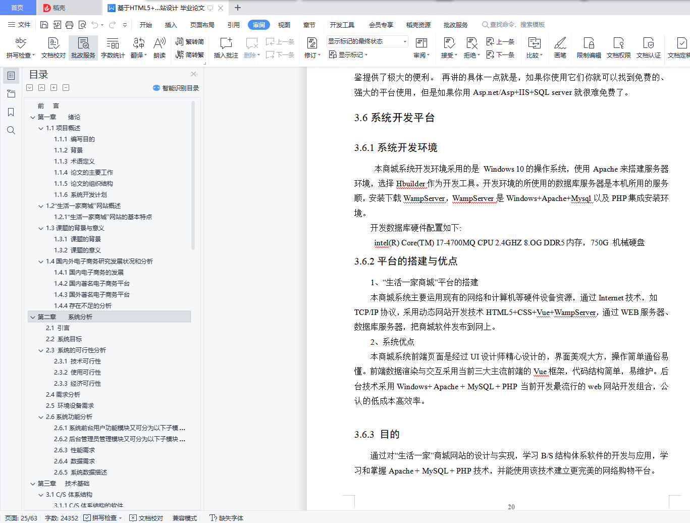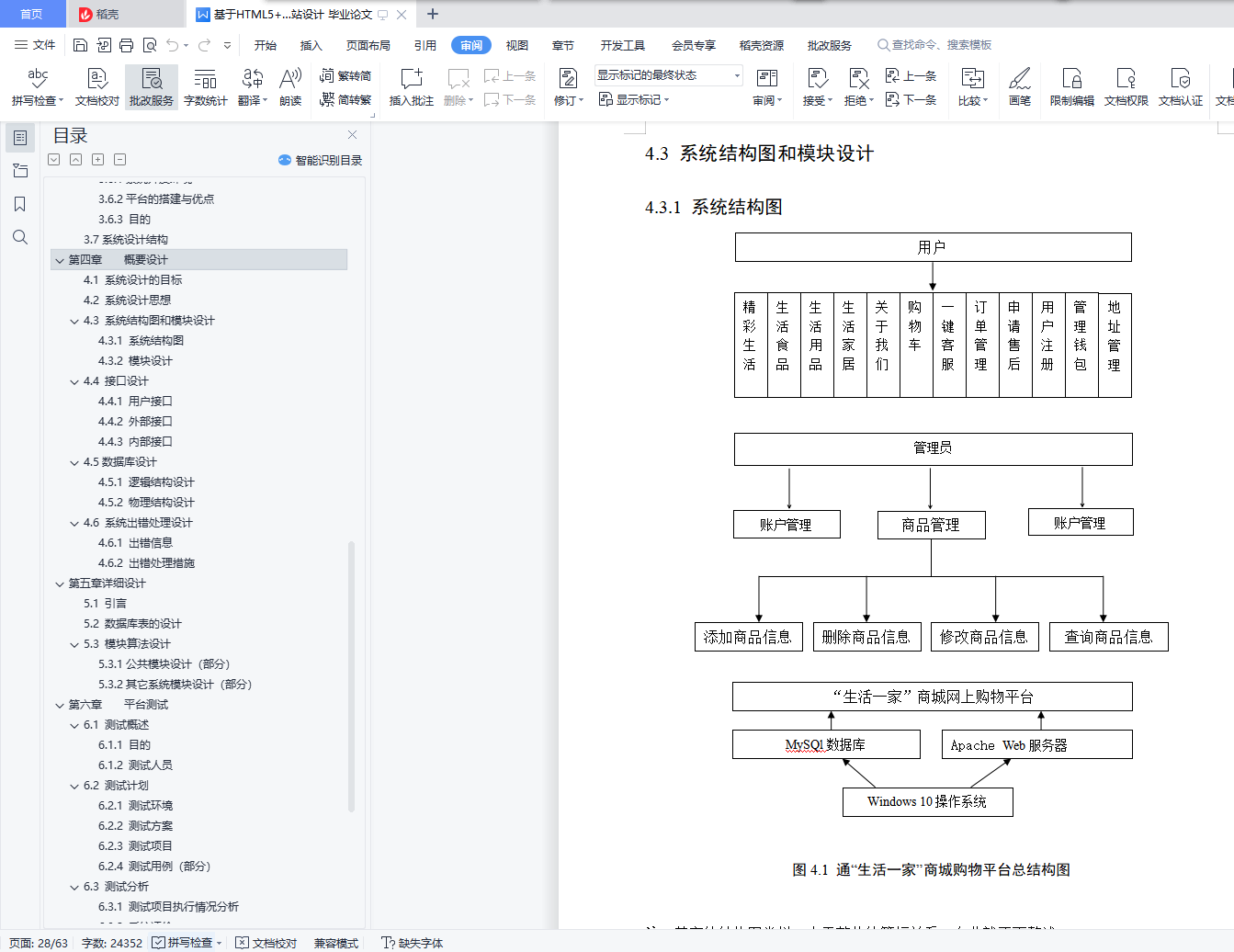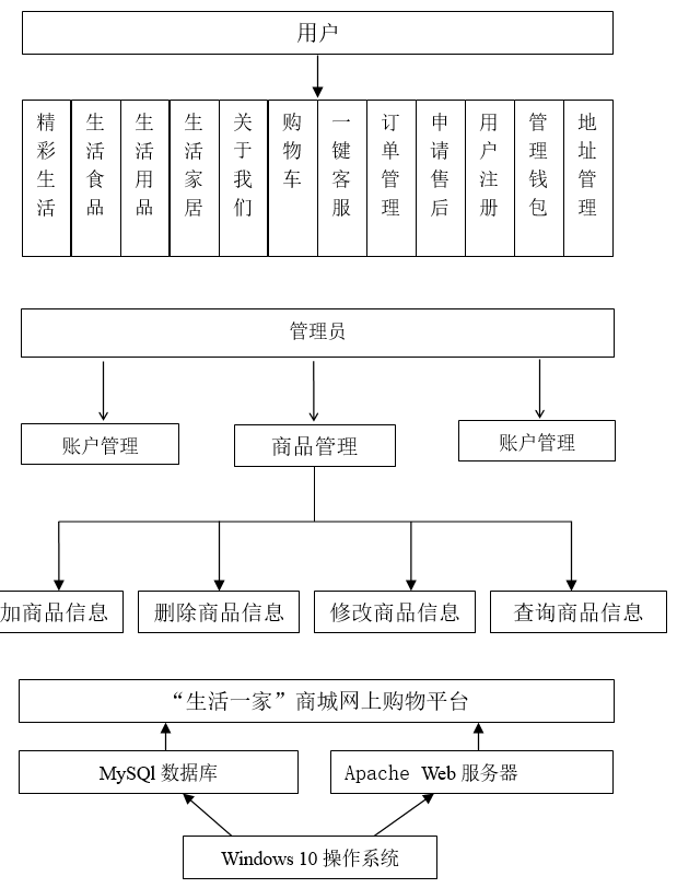 摘 要随着互联网的发展和普及,基于电子商务的网络购物在中国已经被人们所认可,我们的日常生活已经离不开网购。相对于传统的实体经济而言,电子商务的出现打破了传统的实体经济交易模式,将整个交易流程电子化、数字化,一方面以电子商务实现了电子流代替了实物流,因此可以大量减少人力、物力,极大地降低了运输成本;另一方面突破了时空的限制,使得交易活动可以发生任何时间,任何地点,从而大大提高了效率。因此人们更喜爱网络购物。针对这种情况,我以HTML5+JavaScript+CSS3+PHP为开发技术,设计开发了一个基于Web的“生活一家”商城网站。“生活一家商城”网站通过Internet互联网打造一个集搜索、下单、购买一体的一站式网上购物平台,综指是让顾客买的“省心”,用的“放心”。本商城网站分用户系统与管理员系统。用户系统:用于用户浏览商品信息,搜索商品,选择购买的商品放入购物车,查看商品详情,查看服务商家联系方式和地址,购买商品数量的编辑、删除,用户结算。用户个人中心,用于用户个人信息管理,主要包括个人资料管理、订单管理、钱包管理、收藏商品管理、收货地址管理以及意见反馈。管理员系统:用于管理商城与账号权限管理,包括商品添加,商品管理,用户添加,账户管理,商品分类管理,订单管理,权限管理等等。【关键词】电子商务,网上商城,PHP,生活一家,购物网站,一站式AbstractWith the development and popularity of the Internet, online shopping based on e-commerce has been recognized in China, and our daily life has been inseparable from online shopping. Compared with the traditional economic entities, the emergence of electronic commerce has broken the traditional real economy trading mode, the entire transaction process electronic, digital, on the one hand, electronic commerce has realized electronic flow instead of the logistics, it can reduce a lot of manpower and resources, greatly reduce the transportation cost; on the other hand breakthrough time and space constraints, making transactions can occur at any time, any place, thus greatly improving the efficiency. As a result, people prefer online shopping. In view of this situation, I use HTML5+JavaScript+CSS3+PHP as the development technology, design and develop a Web based "life one" mall website. "Life, a mall" website through the Internet Internet to create a set of search, order, buy one of the one-stop shopping platform online, the composite index is to let customers buy "worry", with "rest assured.".Our website is divided into user system and administrator system. User system: for users to browse commodity information, commodity search, choose to buy the merchandise into the shopping cart, view product details, see the service business contact and address, purchase goods number edit, delete, user accounts. User personal center, for personal information management, mainly including personal data management, order management, wallet management, collection commodity management, delivery address management and feedback.Administrator system: used to manage the mall and account authority management, including commodity addition, commodity management, user add, account management, merchandise classification management, order management, authority management and so on.【Keywords】 E-commerce, online shopping mall, PHP, life one, shopping website, one-stop前 言 1第一章 绪论 21.1项目概述 21.1.1 编写目的 21.1.2 背景 21.1.3 术语定义 21.1.4 论文的主要工作 31.1.5 论文的组织结构 41.1.6 系统开发计划 41.2“生活一家商城”网站概述 41.2.1“生活一家商城”网站的基本特点 51.3课题的背景与意义 51.3.1 课题的背景 51.3.2 课题的意义 51.4国内外电子商务研究发展状况和分析 61.4.1国内电子商务的发展 61.4.2国内著名电子商务平台 61.4.3国外著名电子商务平台 71.4.4存在不足的分析 7第二章 系统分析 82.1 引言 82.2 系统目标 82.3 系统的可行性分析 82.3.1 技术可行性 82.3.2 使用可行性 92.3.3 经济可行性 92.4需求分析 92.5 环境设备需求 102.6系统功能分析 112.6.1系统前台用户功能模块又可分为以下子模块: 112.6.2后台管理员管理模块又可分为以下子模块: 122.6.3 性能需求 122.6.4 数据需求 132.6.5 系统数据描述 13第三章 技术基础 163.1 C/S体系结构 163.1.1 C/S体系结构的软件 163.2 B/S体系结构 173.2.1 B/S体系结构软件 173.2.2 B/S体系结构软件的特点 173.3 C/S与B/S结构不同点分析及比较 183.4 动态网站开发所需的Web构件 183.5 几种主流的Web应用程序平台 193.5.1 Windows + IIS + SQL Server + Asp(Asp.net) 193.5.2 Unix+ Tomcat + Oracle+ JSP (JavaEE) 193.5.3 Linux + Apache + MySQL + PHP (LAMP、LNMP) 193.6系统开发平台 203.6.1系统开发环境 203.6.2平台的搭建与优点 203.6.3 目的 203.7系统设计结构 21第四章 概要设计 224.1 系统设计的目标 224.2 系统设计思想 224.3 系统结构图和模块设计 234.3.1 系统结构图 234.3.2 模块设计 244.4 接口设计 244.4.1 用户接口 244.4.2 外部接口 244.4.3 内部接口 244.5数据库设计 254.5.1 逻辑结构设计 254.5.2 物理结构设计 274.6 系统出错处理设计 284.6.1 出错信息 284.6.2 出错处理措施 28第五章 详细设计 295.1 引言 295.2 数据库表的设计 295.3 模块算法设计 315.3.1公共模块设计(部分) 315.3.2其它系统模块设计(部分) 34第六章 平台测试 396.1 测试概述 396.1.1 目的 396.1.2 测试人员 396.2 测试计划 396.2.1 测试环境 396.2.2 测试方案 396.2.3 测试项目 406.2.4 测试用例(部分) 406.3 测试分析 416.3.1 测试项目执行情况分析 416.3.2 系统评价 416.3.3 系统的不足 416.4 测试结论 41第七章 系统运行 427.1引言 427.