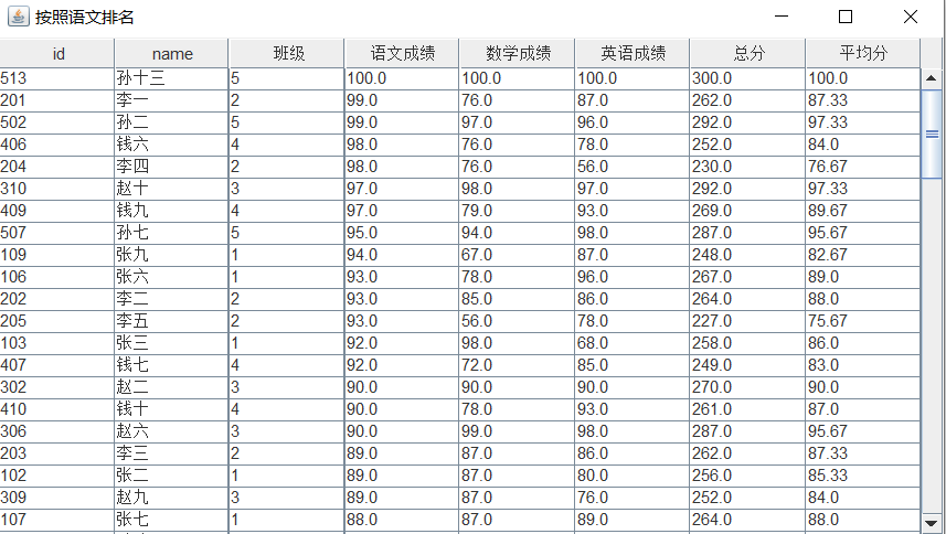 4.7 按照语文成绩排名
