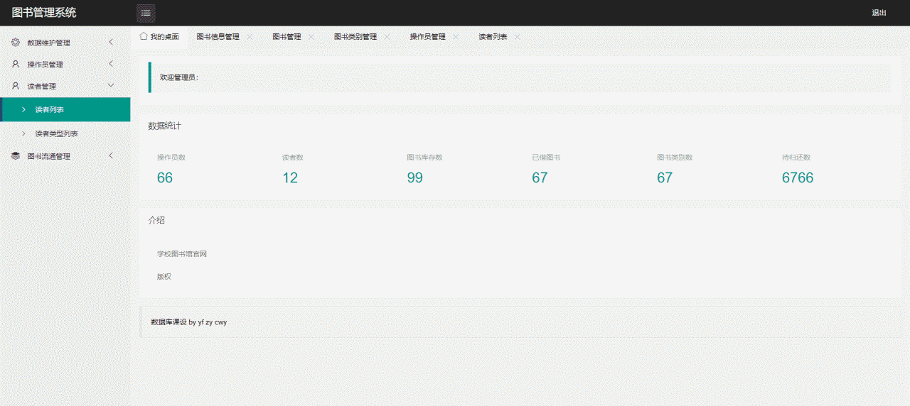 图书馆管理系统是图书馆管理中一个不可缺少的部分,它的内容对于图书馆的管理者和来访的读者来说都至关重要。随着社会知识水平的不断提高,图书馆读者数量急剧增加,有关图书馆各项事务的各种信息量也成倍增长。面对庞大的信息量需要有图书馆管理系统来提高管理员管理工作的效率。一个完善的图书馆管理系统能够极大地提高读者和图书信息管理的效率,具有检索迅速、查找方便、可靠性高、存储量大、更新快、寿命长、成本低等优点。本图书馆管理系统包括图书信息登记管理、读者信息登记管理、管理员信息登记管理、图书借阅归还信息管理四大模块并且及时记录存储各个环节信息的变更,以便管理、查询、显示、输出。本系统因为考虑到本身系统的特殊性,所以本系统只有管理员模式一种。管理员可以拥有完全的权限管理系统,可以完成对图书、读者、管理员、借阅归还信息的查询,并且完成读者借阅登记、读者归还记录、读者借阅查询、所有信息的添加、修改和删除等操作。