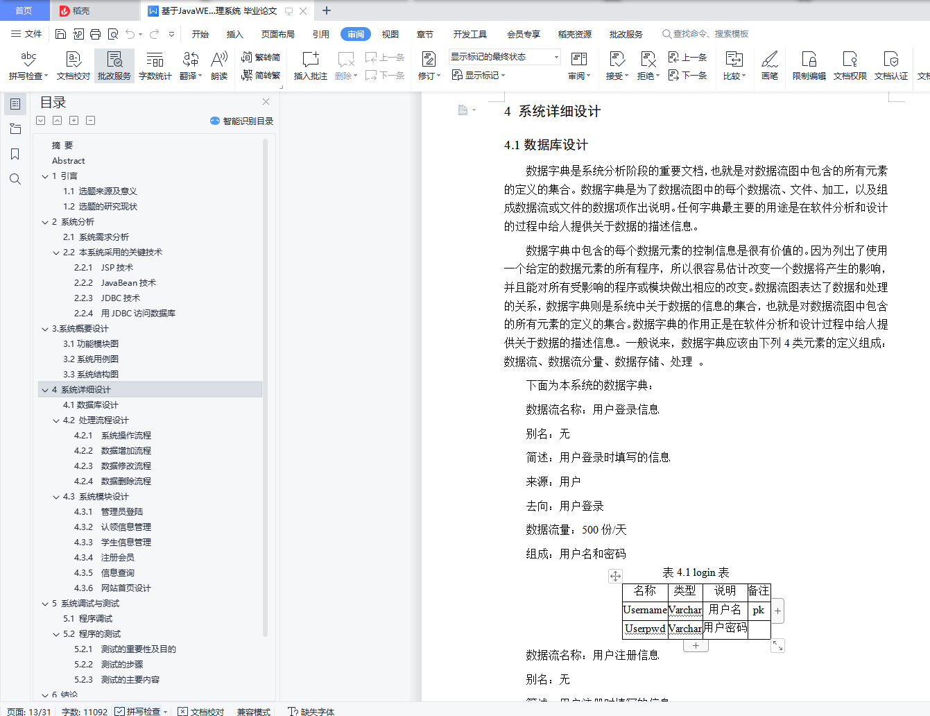 目 录摘 要 IAbstract II1 引言 11.1 选题来源及意义 11.2 选题的研究现状 12 系统分析 22.1 系统需求分析 22.2 本系统采用的关键技术 22.2.1 JSP技术 22.2.2 JavaBean技术 42.2.3 JDBC技术 52.2.4 用JDBC访问数据库 53.系统概要设计 83.1功能模块图 83.2系统用例图 83.3系统结构图 94 系统详细设计 104.1数据库设计 104.2 处理流程设计 124.2.1 系统操作流程 124.2.2 数据增加流程 134.2.3 数据修改流程 144.2.4 数据删除流程 144.3 系统模块设计 154.3.1 管理员登陆 154.3.2 认领信息管理 164.3.3 学生信息管理 174.3.4 注册会员 184.3.5 信息查询 204.3.6 网站首页设计 215 系统调试与测试 225.1 程序调试 225.2 程序的测试 225.2.1 测试的重要性及目的 225.2.2 测试的步骤 235.2.3 测试的主要内容 236 结论 256.1 系统评价 256.2 安全性问题 25致谢 27参考文献 28摘 要在许多社区或校园里,常常有人遗失物品或者捡到物品,个人物品的遗失是普遍存在的一个现象,物品的遗失对于失主的工作、生活将会造成较大影响,特别是部分有特殊价值的物品,对于失主来说意义更大,而捡到失物者却因为无法联系到失主而失去了拾金不昧的机会,他们由于没有一个良好的消息交流平台,而给生活带来了极大的不便。本系统就是为失主和捡到物品的人搭建一个发布信息的平台。失主可以通过网络进入到本系统,查询自己丢失的物品是否已被好心人拾到并交给了招领中心和对好心人表示感谢等;拾到物品的人可以通过该系统直接发布拾到物品的信息;管理员可通过本系统对失物信息、报失信息、留言信息等进行有效的管理。基于WEB的遗失物品管理系统就是对遗失物品进行有效的管理和宣传,尽可能的实现物归原主,在减少失主损失的情况下,还能使拾金不昧的良好道德风尚得以发扬。关键字:遗失物品管理系统 B/S架构 JSP SQL serverAbstractIn many communities or on campus, people often pick up lost items or items, which is a common phenomenon for loss of items for the owner who will be in a great impact in his life and work. Especially, some special value items are very meaningful for the owner, but who picked up the lost can’t contact the owner, therefore, they lost the opportunity of returning lost money, because they do not have a good message exchange platform that enables the owner failed to even find lost property, bring to life a great deal of inconvenience.This system is for the owner and the person picked up items to build a platform for information dissemination. Owner can access to the system through the network, check whether the items lost his good-hearted people have been picked up and handed over to the center and on the well-intentioned people claiming gratitude, etc.; picked up items directly through the system who can picked up by articles published information; administrator of the system through the lost property information, missing information, message information, and easy to manage. "WEB-based management system for missing items" is for effective management and publicity on the missing items, as far as possible to achieve restitution and in case of loss reduction of owner, at the same time, to carry forward the good morality of returning money.Keyword:management system for missing items B/S JSP SQL server