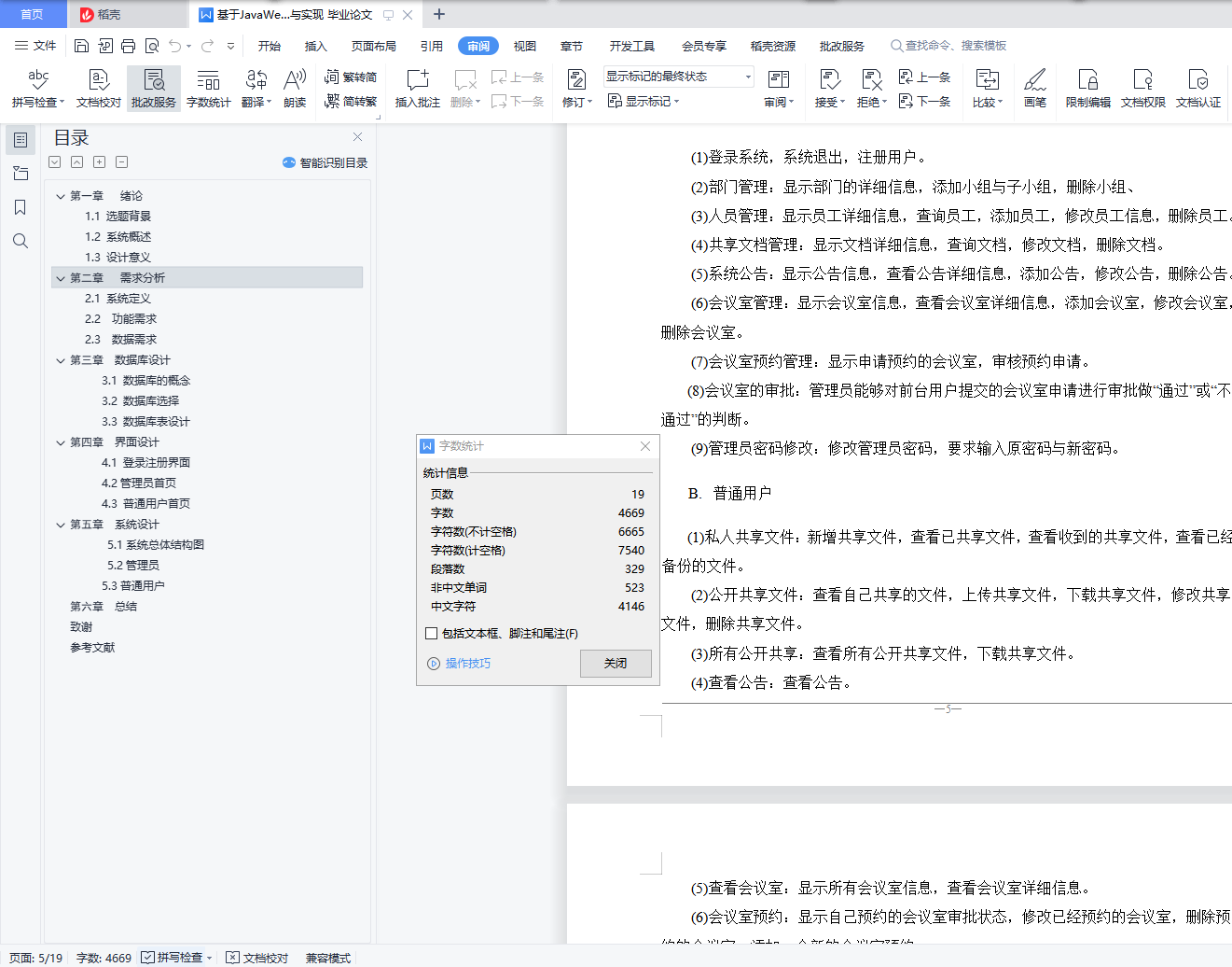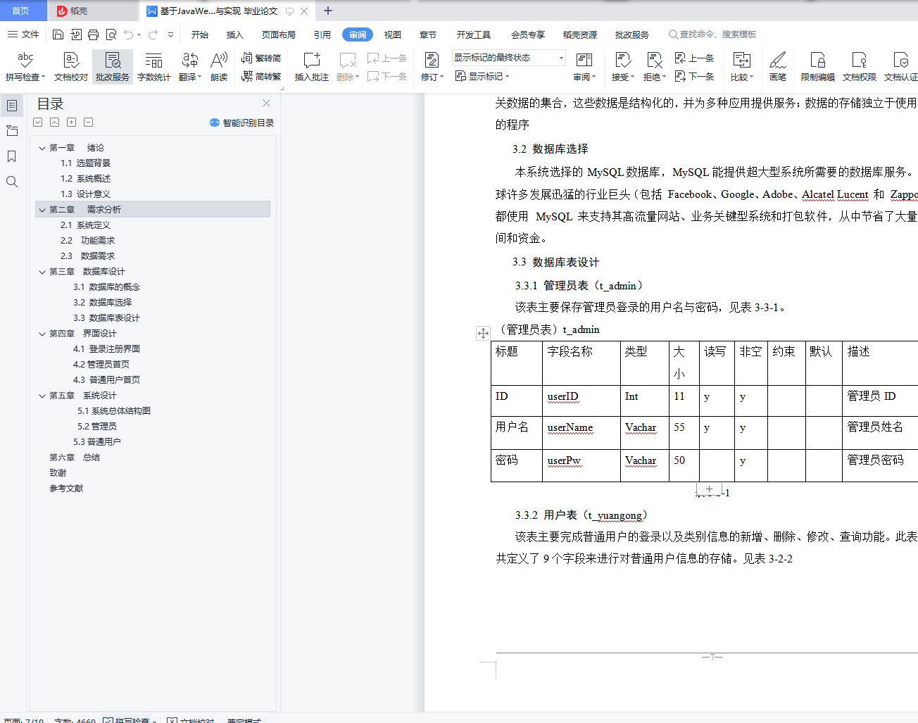 目 录第一章 绪论 31.1 选题背景 31.2 系统概述 31.3 设计意义 3第二章 需求分析 42.1 系统定义 42.2 功能需求 42.3 数据需求 5第三章 数据库设计 63.1 数据库的概念 63.2 数据库选择 63.3 数据库表设计 6第四章 界面设计 84.1 登录注册界面 84.2管理员首页 94.3 普通用户首页 9第五章 系统设计 105.1系统总体结构图 105.2管理员 115.3普通用户 13第六章 总结 15致谢 15参考文献 17基于Java Web的会议室预约系统的设计与实现【摘 要】本系统适用于企业的会议室的预约管理。会议室预约管理系统基于B/S结构,采用JAVA作为编写语言、通过JavaScript和JSP、MYSQL等工具及技术实现功能。系统按功能划分为普通用户预约管理子系统,系统管理员会议室管理子系统、人员信息与文件共享管理子系统。根据面向对象的思想,本系统采用的是典型的MVC架构,分为action控制层,service业务逻辑层,Dao数据库连接层,orm实体类层。【关键词】 JAVA ;B/S结构 ;JSP;JavaScript;MySQL;会议室预约。Based on the Java Web's Design and implementation of the conference room reservation system [abstract] This system is applicable to the appointment management of enterprise conference rooms.Conference room reservation management system is based on B / S structure, using JAVA as the writing language, through JavaScript and JSP, MYSQL and other tools and technologies.The system is divided into ordinary user appointment management subsystem, system administrator conference room management subsystem, personnel information and file sharing management subsystem.According to the object-oriented idea, this system adopts a typical MVC architecture, which is divided into action control layer, service business logic layer, Dao database connection layer, and orm entity class layer. [Key words] JAVA; B / S structure; JSP; JavaScript; MySQL; Conference room reservation.
