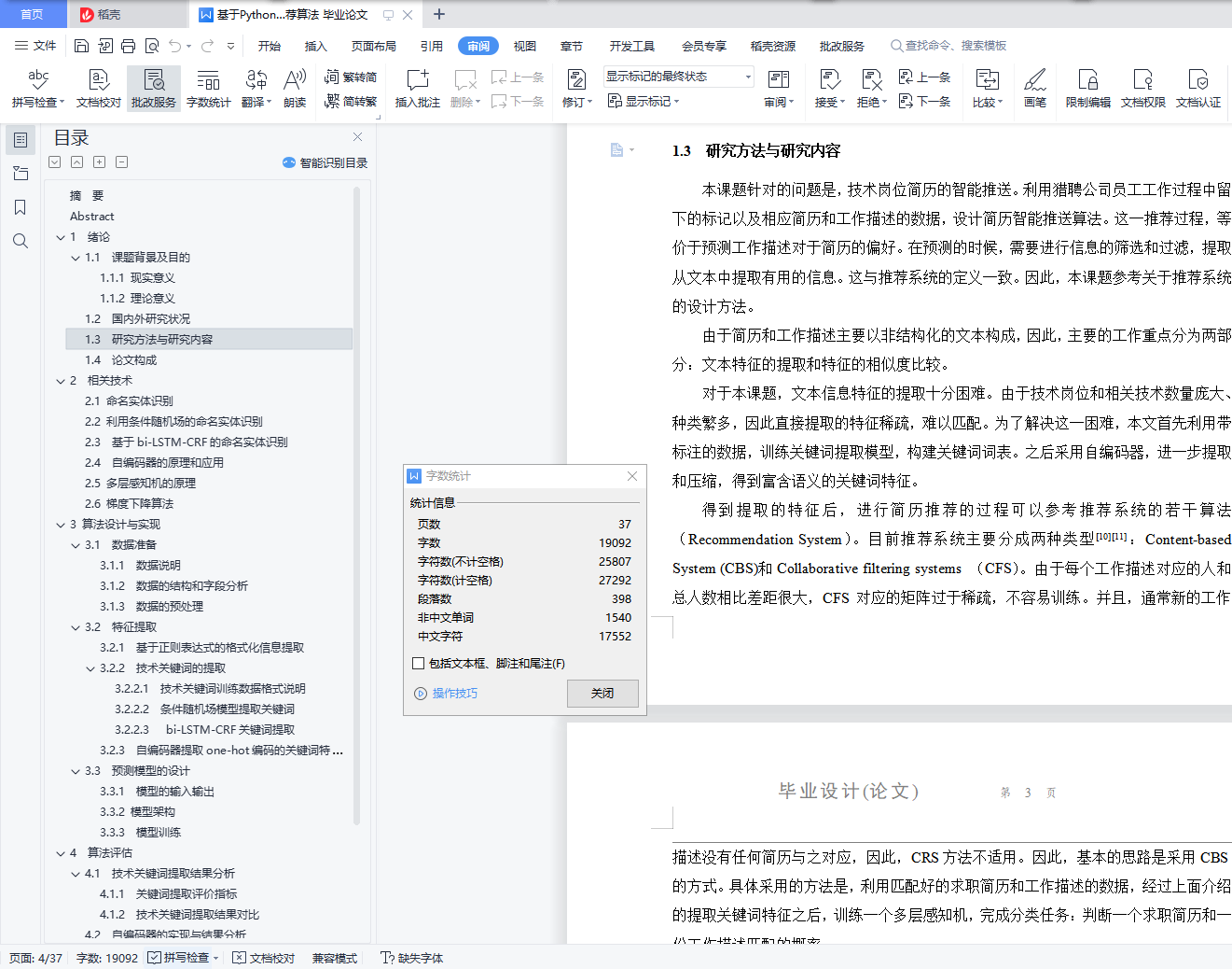 基于Python实现的简历智能推荐算法 毕业论文+任务书+答辩PPT+项目源码及数据+知网查重报告