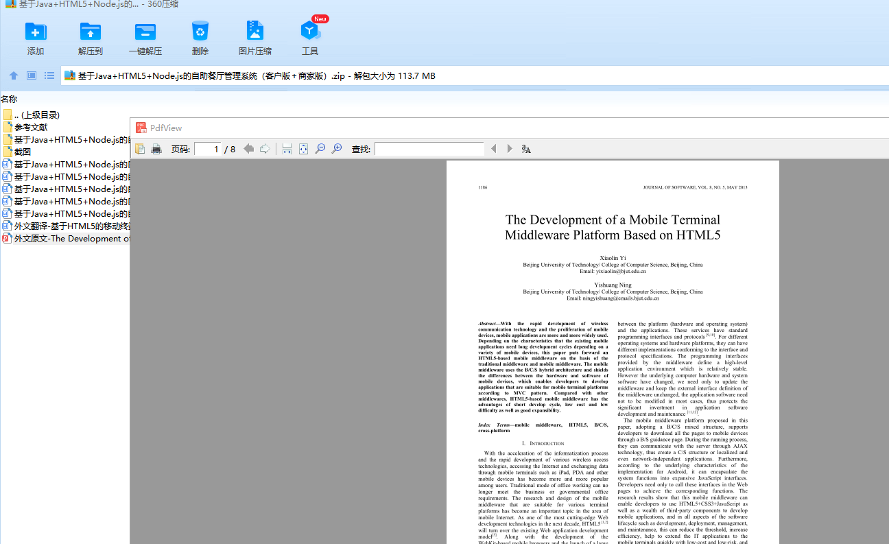 摘要随着智能移动设备的普及,移动互联网在生活中的重要性越来越明显,为了适应快速发展的Web技术以及不断提出的移动Web应用需求,HTML5应运而生。而传统餐饮管理系统由于功能有限,很难满足移动端访问、快捷预定和数据可视化等功能。本文介绍了该课题的研究意义,设计了自助餐厅在线订购系统所需要实现的一些基本功能和拓展功能,建立完整的需求分析和数据库设计,结合最新的HTML5框架(Bootstrap)、Node.js、Mysql,前端数据可视化、Gulp前端模块化构建、前后端分离、MVC、AJAX等技术,开发了一套基于HTML5的自助餐厅管理系统(客户版+商家版),并部署在本人的服务器上测试运行。关键词:HTML5;移动开发;餐饮服务;管理系统;B/S模式ABSTRACTWith the popularity of smart mobile devices, mobile Internet has become more and more obvious in life, in order to adapt to the rapid development of Web technology and proposed mobile Web applications, HTML5 came into being. While the traditional catering management system function is limited, it is difficult to meet the mobile terminal access, fast reservation and data visualization function. This paper introduces the significance of the topic, design the cafeteria online ordering system needs to realize some of the basic functions and development capabilities, to establish a complete requirements analysis and database design, with the latest HTML5 framework(Bootstrap), node.js, front data visualization, front-end module block building, front end separation, MVC, AJAX and other technology, developed a set based on HTML5 cafeteria management system (version of the client + businesses) and deployment on my server using the test.Keywords: HTML5; mobile development;food and beverage service; management system;B/S model目录摘要 IIIABSTRACT IV第1章 绪论 61.1 课题背景 61.2 国内外现状分析 61.3 课题的目的和意义 81.4 本文组织结构 9第2章 开发的相关技术介绍 102.1 HTML5技术新特性 102.2 Bootstrap3框架 112.3 Mysql数据库 112.4 B/S结构 112.5 AJAX数据交互 112.6 Node.js编程语言 122.7前端数据可视化 122.8 Gulp前端模块化构建 122.9前后端分离开发模式 122.10 MVC框架模式 132.11 本章小结 13第3章 系统分析与设计 143.1 系统需求分析 143.1.1 客户版功能需求分析 143.1.2 商家版功能需求分析 143.1.3 非功能性需求分析 153.2 系统模块划分 163.3 系统数据库设计 173.3.1物理数据库设计 173.3.2 数据库字段和关系说明 183.4 本章小结 19第4章 系统实现 204.1 系统开发环境搭建 204.2 系统技术实现细节 204.2.1 gulp自动化构建方案 204.2.2 JavaScript模块化加载 244.2.3 模板引擎 264.2.4 前后端数据连调机制 294.2.5 响应式设计实现 304.3 系统主要功能的实现 314.3.1 客户版功能实现 314.3.2 商家版功能实现 394.4 本章小结 50第5章 总结与展望 515.1 总结 515.2 展望 51参考文献 52致谢 54