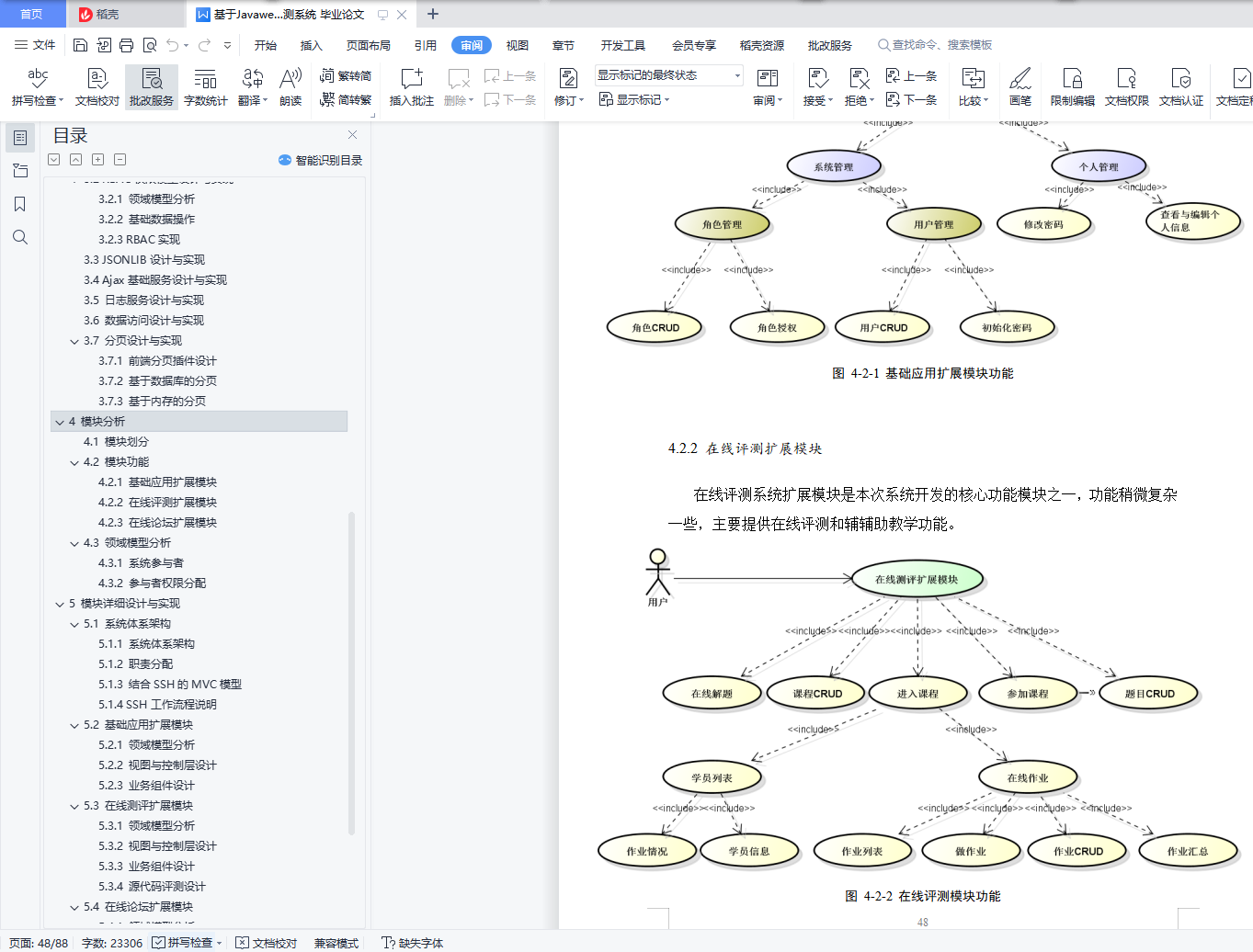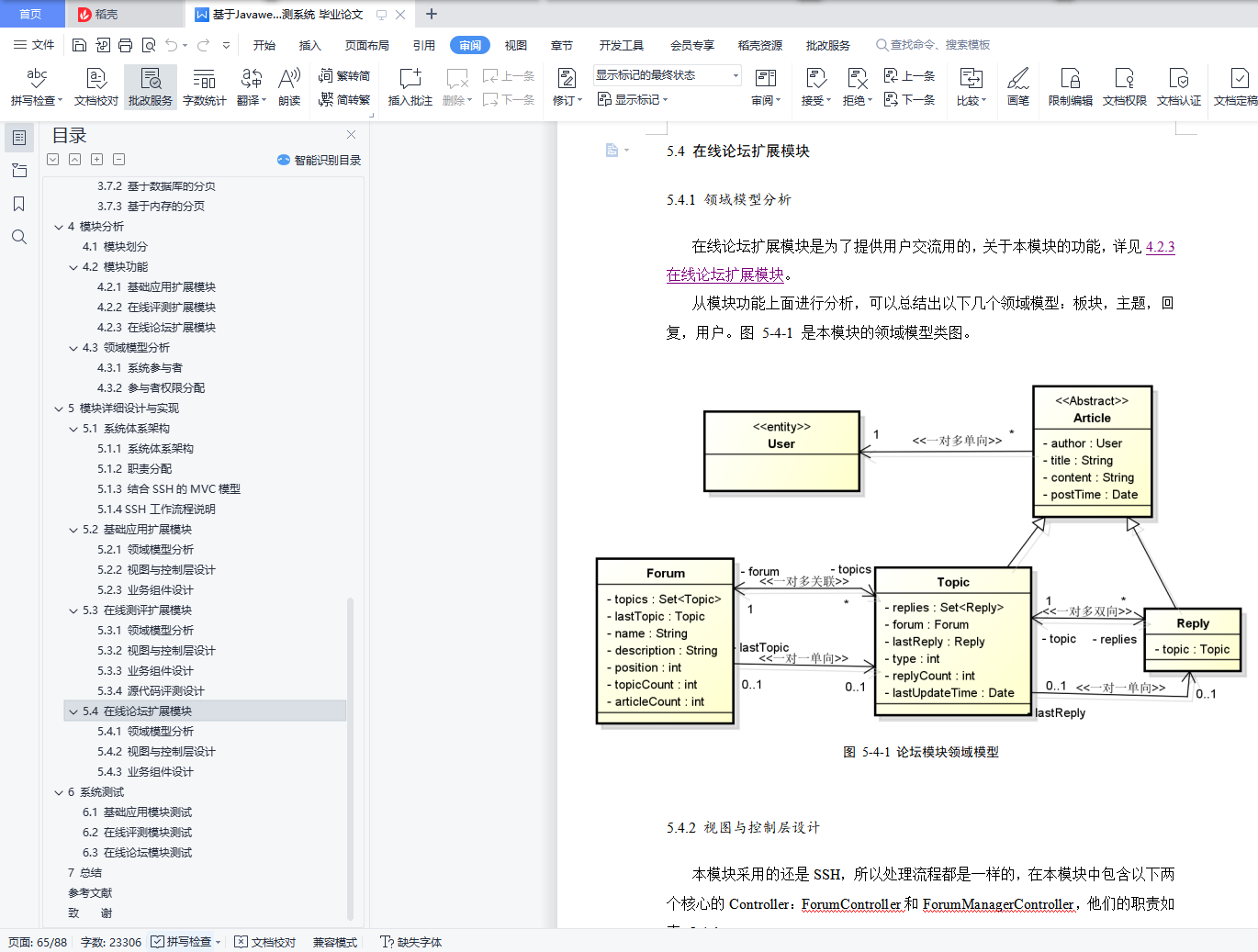 摘 要程序语言课程是计算机相关专业的核心教学内容之一,要提高程序语言设计能力必须通过大量的实践练习与交流。在传统的学习过程中,往往通过人工方式对程序的源代码进行评测,遇到问题,不易于学习交流。本系统目的便是构建一个基于B/S的,能够方便扩展系统功能的在线评测系统。同时在基础框架之上扩展出几个模块,以增强程序学习者之间的学习交流,简化程序的评测过程,提高程序学习的效率。本系统结合当前优秀的开源框架,构建一个相对易于扩展的web在线评测系统。系统总体框架实现和技术主要为Spring,Hibernate,MySQL,Lucene等主流技术。采用Spring MVC来控制主要的业务逻辑,Hibernate实现数据的ORM映射,MySQL实现系统数据的存储。前端使用JSP进行显示,用jQuery进行行为的控制,前后端之间Ajax传输JSON格式数据。本论文阐释了如何可扩展系统,jQuery插件开发,Ajax服务的构建,易用的DAO模块设计,基于角色的权限控制等适应于本系统的基础应用。这些基础应用的设计最大好处就是能加快系统开发,提高系统的扩展性及灵活性。最后在这些技术的基础之上扩展了三个模块,分别是,基础管理模块,在线评测模块和论坛模块。关键字:可扩展 SpringMVC Hibernate Ajax RBACAbstractCourse of programming design is the mainly teaching contents of computer relative majors. Only take more practice and active communications can improve the programming ability. When in traditional learning process, people do the code judge work by their eyes. Meanwhile, it is not convenient to communicative with each other. The purpose of this system is to build and Program Online Judge which is B/S based and easy extensible. Several modules will be developed to promote the communication beyond learners. What’s more, teaching assistant, easily judge processing and more effective programming learning will be provided.This system is based on fluency and excellent open source framework. To building a WEB online judge system which is easy to extend. The implementation of system’s framework and the technology mainly for SPRING, HIBERNATE, MYSQL and so on. Spring MVC is used to control the main business logic, while Hibernate implements the Object-Relation Mapping, and the MYSQL will store the system data. In the front page, JSP is ready to display. Meanwhile, web action will be controlled by the JQUERY. AJAX will be using to the transfer of data between front and back side without fresh, always the JSON formatted data.This paper is ready to showing basic application’s and framework’s design of extensible system, the development of JQUERY plugin, AJAX service building and the Role-Based Access Control (RBAC) system. All of above is the basic applications which suitable for the core system. Finally, will extend three modules, respectively is the basic management module and program online judge module and BBS module.Key words: Extensible; Spring MVC; Hibernate; Ajax; RBAC目 录1 前 言 61.1 研究目的 61.2 研究意义 61.2.1 在线学习程序设计语言 61.2.2 学员间交流 61.2.3 基于角色的权限控制 71.3 国内外研究概况 71.3.1 国内研究现状 71.3.2 国外研究现状 81.4 项目开发必要性 81.5 系统需求 81.5.1 外部行为需求 81.5.2 内部特性需求 91.6 系统开发环境 101.6.1 客户端软件 101.6.2 服务端软件 101.6.3 开发工具 102 相关技术概述 102.1 Spring 112.1.1 简介 112.1.2 应用场景 132.1.3 价值 142.2 Hibernate 142.3 jQuery 152.4 Ajax 152.5 WEB中的RBAC概述 162.6 分页概述 172.6.1 分页前端显示 182.6.2 基于数据库查询的分页 192.6.3 基于内存的数据分页 203 基础架构设计与实现 213.1 可扩展架构设计与实现 213.1.1 可扩展架构设计 213.1.2 可扩展架构实现 253.2 RBAC权限模型设计与实现 273.2.1 领域模型分析 283.2.2 基础数据操作 293.2.3 RBAC实现 303.3 JSONLIB设计与实现 323.4 Ajax基础服务设计与实现 353.5 日志服务设计与实现 383.6 数据访问设计与实现 393.7 分页设计与实现 413.7.1 前端分页插件设计 413.7.2 基于数据库的分页 433.7.3 基于内存的分页 454 模块分析 474.1 模块划分 474.2 模块功能 474.2.1 基础应用扩展模块 474.2.2 在线评测扩展模块 484.2.3 在线论坛扩展模块 494.3 领域模型分析 494.3.1 系统参与者 494.3.2 参与者权限分配 505 模块详细设计与实现 535.1 系统体系架构 535.1.1 系统体系架构 535.1.2 职责分配 545.1.3 结合SSH的MVC模型 555.1.4 SSH工作流程说明 575.2 基础应用扩展模块 575.2.1 领域模型分析 575.2.2 视图与控制层设计 585.2.3 业务组件设计 605.3 在线测评扩展模块 605.3.1 领域模型分析 605.3.2 视图与控制层设计 615.3.3 业务组件设计 635.3.4 源代码评测实现 635.4 在线论坛扩展模块 655.4.1 领域模型分析 655.4.2 视图与控制层设计 655.4.3 业务组件设计 676 系统测试 686.1 基础应用模块测试 696.2 在线评测模块测试 726.3 在线论坛模块测试 757 总结 85参考文献 87Abstract 2致 谢 87