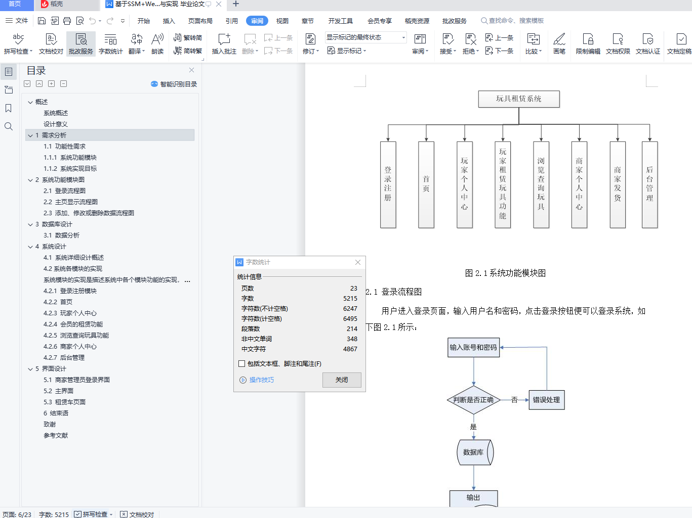 目录概述 1系统概述 1设计意义 11 需求分析 21.1 功能性需求 21.1.1 系统功能模块 21.1.2 系统实现目标 22 系统功能模块图 32.1 登录流程图 32.2 主页显示流程图 42.3 添加、修改或删除数据流程图 53 数据库设计 53.1 数据分析 54 系统设计 64.1 系统详细设计概述 64.2 系统各模块的实现 64.2.1 登录注册模块 64.2.2 首页 84.2.3 玩家个人中心 84.2.4 会员的租赁功能 94.2.5 浏览查询玩具功能 114.2.6 商家个人中心 114.2.7 后台管理 125 界面设计 135.1 登录界面 135.2 主界面 145.3 租赁车页面 156 结束语 15致谢 16参考文献 16基于Java Web的玩具租赁系统摘要 系统采用B/S结构,使用常用浏览器,如IE,火狐,谷歌浏览器访问系统,系统后台采用MVC结构,具有层次清晰,便于维护,安全可靠等特点,后台框架采用springMVC+spring+myBatis。数据库运用了mysql,这个玩具租赁系统,运用jquery、以及html5+css3前端技术,使系统界面美观,操作简单。后台管理员可以发布玩具以及管理会员等功能,前台用户可以浏览和租赁玩具等功能。关键词 javaWeb;Html;Spring;mybatisToy Leasing System Based on Java WebAbstract The system adopts a B/S structure, uses a common browser, such as IE, Firefox, Google Browser access system, the system background adopts an MVC structure, has a clear hierarchy, easy to maintain, safe and reliable features, and the background framework adopts a spalling MVC + spalling + myBatis. The database uses MySQL, a toy rental system that uses jQuery and HTML 5 + CSS3 front-end technology to make the system interface beautiful and simple to operate. Backstage administrators can publish toys and manage members and other functions. Front desk users can browse and lease toys and other functions.Keywords javaWeb;java;Html;Spring;mybatis