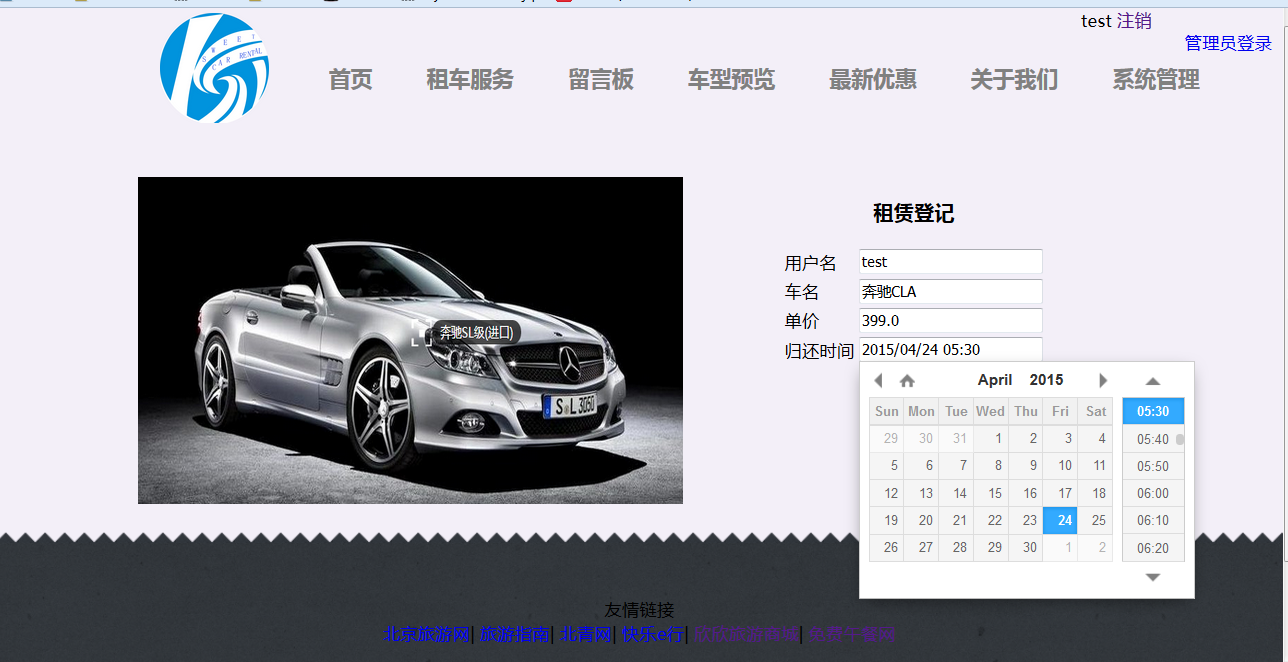 摘 要随着社会的发展,信息网络化成为时代的主题。许多行业在经营管理过程中对计算机技术的依赖程度也不断增强。对于汽车租赁行业来说,其工作管理流程复杂、多样。计算机已完全能够胜任汽车租赁管理工作,而且能够使管理工作变得更加准确、高效。汽车租赁管理系统有效的解决了纸质手工处理业务时效率低下和数据信息易丢失的问题,使得用户查询车辆信息更方便快捷,同时便于管理员对车辆和用户的管理,从而给汽车租赁管理工作带来更高的效率。由此,本报告设计实现了一个汽车租赁管理系统,完成了系统需求分析、系统设计、系统测试等方面的工作,较为详细地介绍了系统实现开发的整个过程。最后介绍了系统的测试与维护,使系统在之后的运行过程中尽量少的出现错误。该系统采用了SSH2框架技术,使用JSP网络编程技术,前台采用Myeclipse开发环境,后台采用MySQL数据库为开发平台。系统主要实现了车辆信息管理和用户信息管理。应用于汽车租赁的日常管理,界面直观,操作简单方便,有较强的实用价值。关键词:JSP,SSH2,汽车租赁,MySQL目 录第一章 选题依据 11.1选题背景 1第二章 技术简介 3第三章 系统需求分析 53.2 系统角色分析 53.2.1 管理员的功能需求 53.2.2 客户的功能需求 53.3 系统运行环境需求 53.4 系统可行性分析 63.4.1 技术可行性 63.4.2 经济可行性 63.4.3 社会可行性 63.4.4 操作可行性 7第四章 系统设计 84.1 系统总体设计 84.2 数据库设计 84.2.1 目的 84.2.2 背景 84.2.3 数据库物理设计 8第五章 系统的实现 115.1前台页面 115.1.1客户注册页面 125.1.2租车服务模块 135.1.3留言板模块 135.1.4车型预览模块 145.1.5最新优惠模块 155.1.6关于我们模块 165.2 后台页面 165.2.1系统管理模块 165.2.2客户管理中心 175.2.3车辆信息中心 175.2.4留言中心 205.2.5管理员中心 21第六章 系统测试 226.1 测试计划 226.1.1 目的 226.1.2 范围 226.2 测试环境策略 226.3 测试环境需求 236.4 测试用例 23第七章 系统安全性 257.1 系统安全 257.1.1 防sql注入 257.1.2 SHA512加密 257.1.3 角色权限 257.2 物理设备安全 26总 结 27致 谢 28参考文献 29