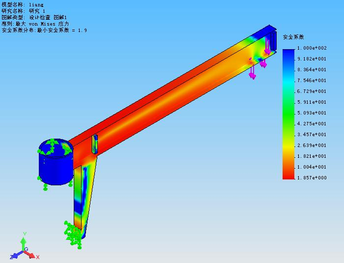 Based on the overall design, the main mechanism components of cantilever and pillar of 2T fixed-pillar cantilever crane are designed and calculated in turn.Main components such as bolts and open gear are selected.The cantilever structure was designed to meet the requirements, and mechanical properties such as bearing, weld strength and rotating shaft key strength and stiffness were checked.During the design process, the optimum design method is used to achieve the most reasonable arrangement and selection of each structure.
