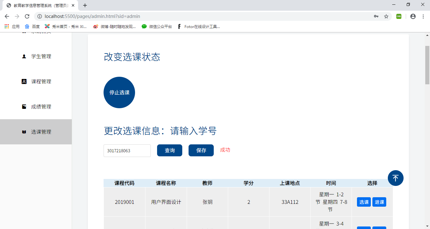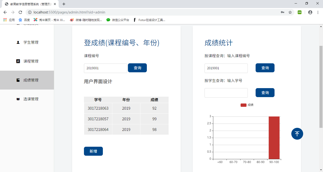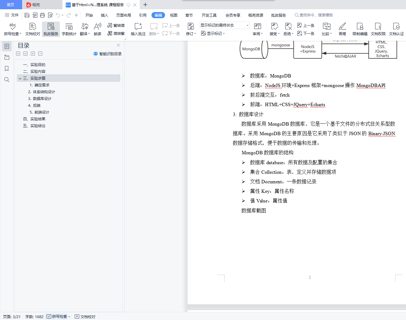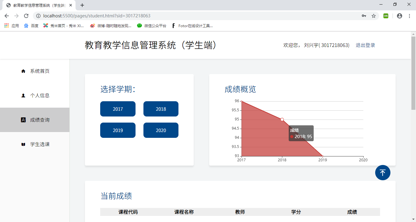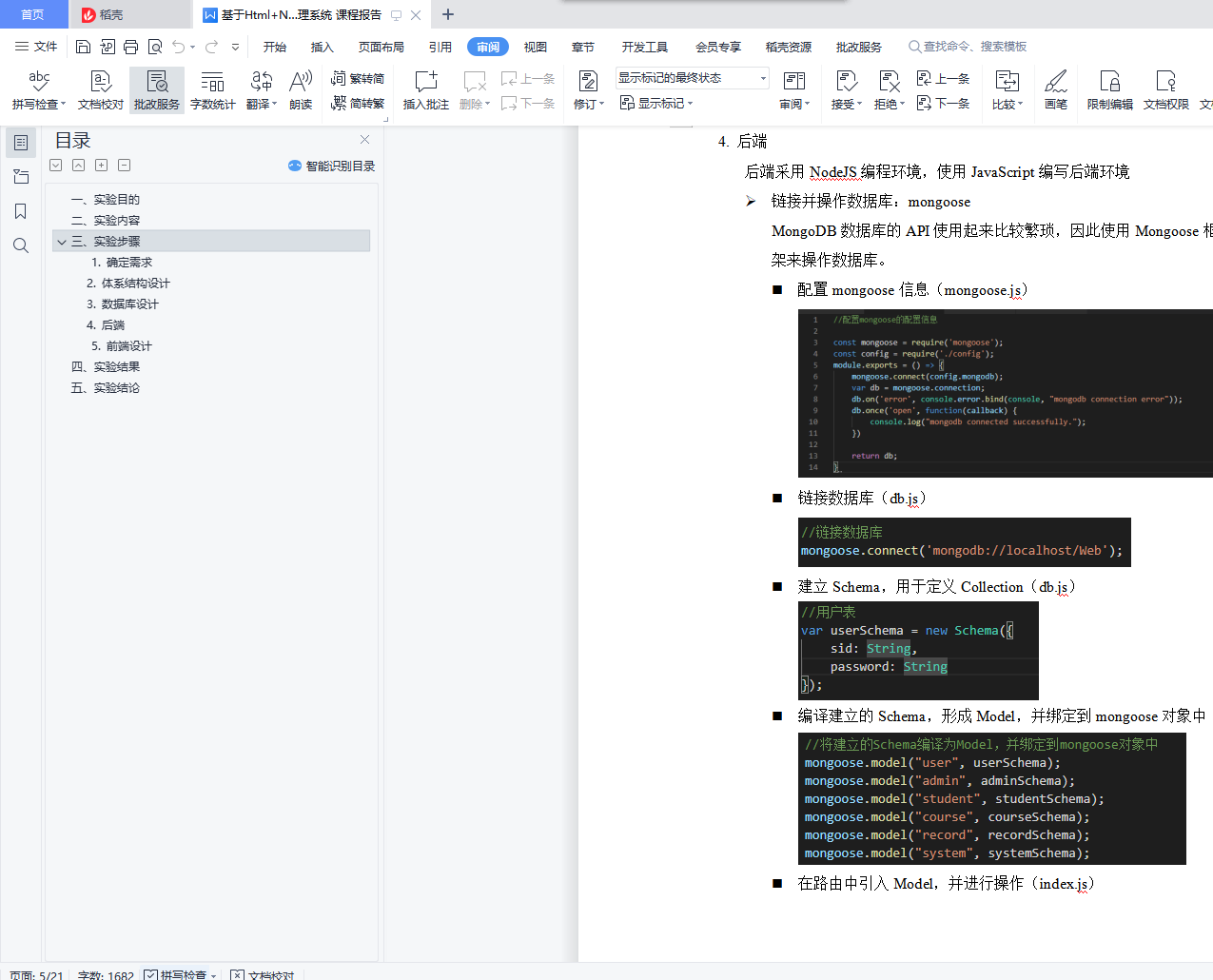 目录一、 实验目的 1二、实验内容 1三、实验步骤 11. 确定需求 12. 体系结构设计 23. 数据库设计 24. 后端 45. 前端设计 7四、实验结果 12五、实验结论 20一、实验目的本次实验题目为综合性的Web项目练习,自选题目实现全栈开发。我的作业题目是《教育教学信息管理系统》二、实验内容开发全栈Web项目天津大学教育教学信息管理系统,包括数据库设计、后端、前端三、实验步骤1. 确定需求系统分为管理员端和用户端。在登录界面可以选择学生登录或者教师登录、注册学生账号注册学生账号:只有注册了学籍的学生才可以使用学号注册账户学生登录需要先注册管理员登录拥有固定的密码学生端分为四个功能主页面:显示欢迎语、时间信息(入学天数和周数)、今日课程、教务通知个人信息:查看自己的学籍信息、课程表、修改密码成绩管理:查看各学期的加权成绩折线图、选择年份查看具体年份的成绩及雷达图选课管理:选课未开始不能选课,选课开始可以选课和退课,并且显示实时课程表管理员端分为五个功能主页面:显示欢迎语、时间信息、修改管理员密码、修改教务通知学生管理:添加学籍、修改学籍信息、删除学籍课程管理:添加课程、修改课程信息、删除课程成绩管理:登课程成绩、修改学生成绩、按课程或学生查看成绩统计信息选课管理:开始/停止选课,为特定学生选课并实时显示课程表