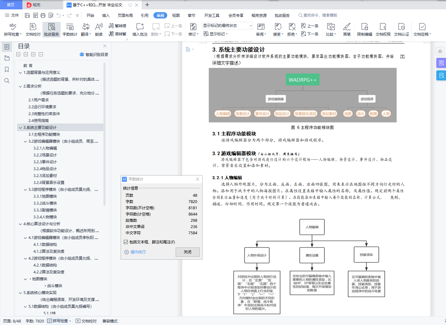 目录前 言 11. 选题背景与应用意义 12. 需求分析 12.1 用户需求 12.2 运行环境要求 22.3 完整性约束条件 42.4 使用指南 53.系统主要功能设计 83.1 主程序功能模块 83.2 游戏编辑器模块(由小组成员、周至编写) 83.2.1 人物编辑 83.2.2 场景设计 83.2.3 事件设计 93.2.4 物品设计 93.2.5 添加素材 103.2.6 背景音乐设置 103.3 游戏程序模块(由小组成员莫允扬、周至编写) 103.3.1 地图模块 103.3.2 战斗模块 103.3.3 剧情模块 123.3.4 人物模块 124.核心算法设计与分析 104.1 游戏编辑器模块(由小组成员李秋阳、周至编写) 104.1.1 数据结构 104.1.2 算法及复杂度 104.2 游戏程序模块(由小组成员莫允扬、周至编写) 104.2.1 数据结构 104.2.2 算法及复杂度 10・ 地图模块 105.系统核心模块实现 195.1 数据结构(由小组成员莫允扬编写) 195.2 游戏编辑器部分(由小组成员李秋阳、周至编写) 245.3 游戏程序部分(由小组成员莫允扬、周至编写) 31图片 12 地图显示界面 326.调试分析记录 396.1 问题及解决方法 396.2 运行时间及内存空间的测定 396.3 改进设想 397.运行结果与分析 408.教师指导建议及解决记录 448.1 开题指导及中期检查 448.2 软件验收 459.总结(收获与体会) 46前 言《软件设计与开发实践 A》是基于自选项目的实践训练,学生将综合利用《集合论与图论》、《数据结构》、《算法设计与分析》、《高级语言程序设计 I 及 II》等方面的基本概念、原理、技术和方法,开展实际应用问题设计求解和对应系统软件开发两大方面的实践。通过本课程的学习、训练和实践,引导学生熟练掌握问题设计求解和软件编程开发的一般过程、相关技术、方法和途径;训练综合运用所学的理论知识和方法独立分析和解决问题,提高问题分析、问题求解和软件开发能力;培养学生能够针对实际问题,选择适当的数据结构、设计有效算法,提高程序设计的能力和编码质量;训练和学会用系统的观点和软件开发一般规范进行软件设计开发,培养软件工作者所应具备的科学工作方法和作风,提高工程素质;并通过采用团队协作、构建项目组的形式,来培养学生的团队合作与交流能力。本课程要求学生分组进行(每组 1~3 人),通过一定的调研来自行结合实际应用需求来选题,并由任课教师来对学生选题做筛选评定。要求所设计开发的软件具有一定的实用性和系统完整性,要有较友好的图形交互操作界面,并对输入数据有较强的完整性约束,要以用户需求作为出发点来设计软件界面和功能模块。本课程主要教学环节包括:学生自选任务、软件开发、软件验收、任务报告撰写提交和任务资料整理归集等。
