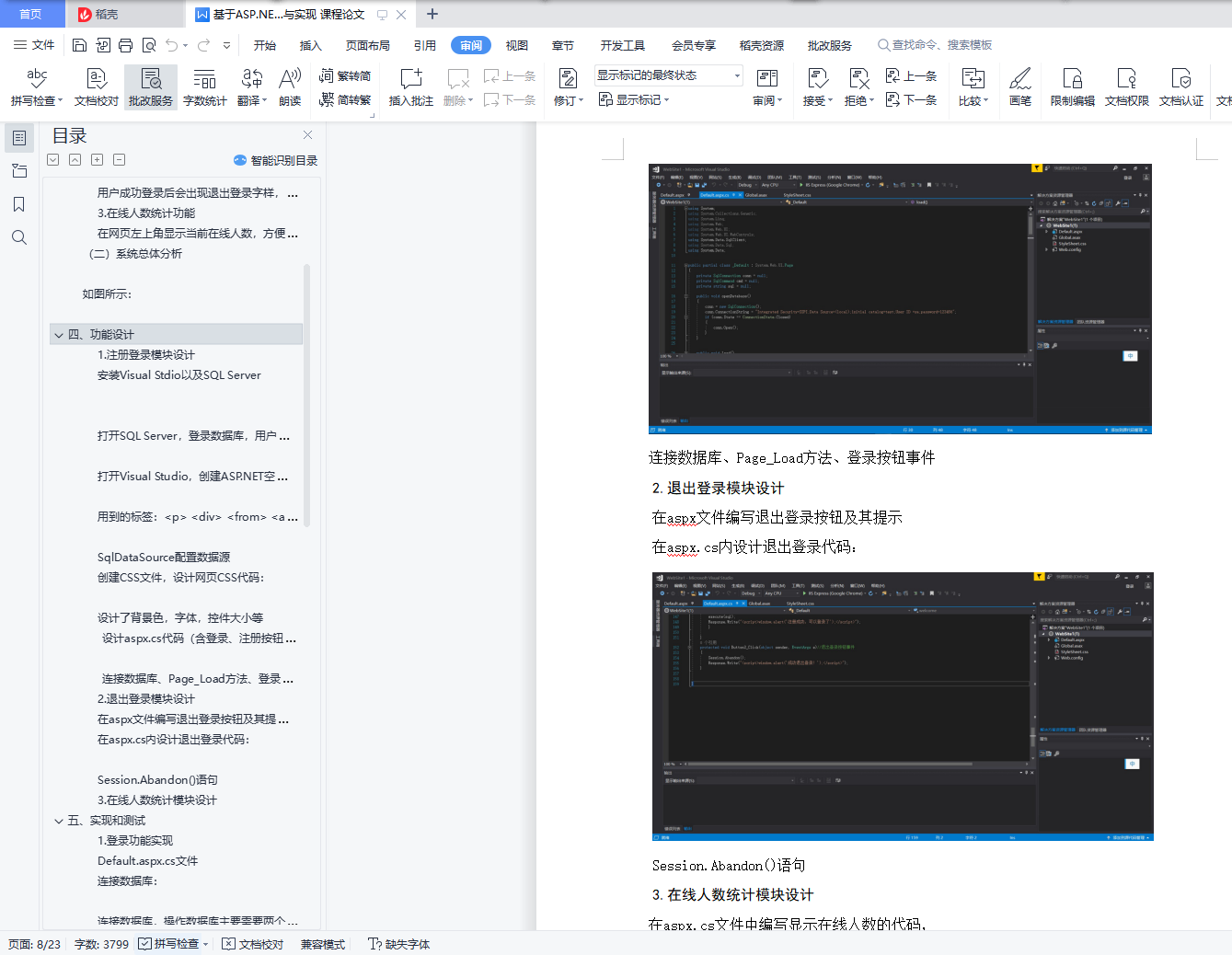 基于ASP.NET的网站登录注册功能设计与实现摘 要近年来随着网络的飞速发展,越来越多的公共网站在提供功能之前要求用户注册和登录。这不仅有助于网站的管理和统计,也为用户提供了方便。本文以Visual Stdio、SQL Server为平台,运用Html语言和C#来设计与实现简单的网站登录注册功能。关键词:网站设计;ASP.NET技术;SQL Server;Visual Stdio;注册和登录Design and implementation of website login registration function based on ASP.NETABSTRACTWith the rapid development of the Internet in recent years, more and more public websites require users to register and log in before providing functions. This not only contributes to the management and statistics of the site, but also provides convenience for users. This paper takes Visual Stdio and SQL Server as the platform, USES Html language and C# to design and implement simple website login registration.function.Keywords: Web Design; ASP.NET Technology; SQL Server;Register and Log in目 录摘要与目录 1第一章 绪论 31.选题背景及意义 32.论文内容 3第二章 相关技术概述 31.三层B/S结构 32..NET技术 33.SQL Server 2017 44.Visual Studio 2017 4第三章 需求分析 4(一)功能分析 41.注册登录功能 42.退出登录功能 43.在线人数统计功能 4(二)系统总体分析 4第四章 功能设计 51.注册登录模块设计 52.退出登录模块设计 83.在线人数统计模块设计 8第五章 实现和测试 91.登录功能实现 92.注册功能实现 103.退出登录功能实现 114.在线人数统计功能实现 12第六章 具体代码 121.网页主页代码 122.网页css代码 143.aspx.cs代码 144.Global.aspx代码 18参考文献 20