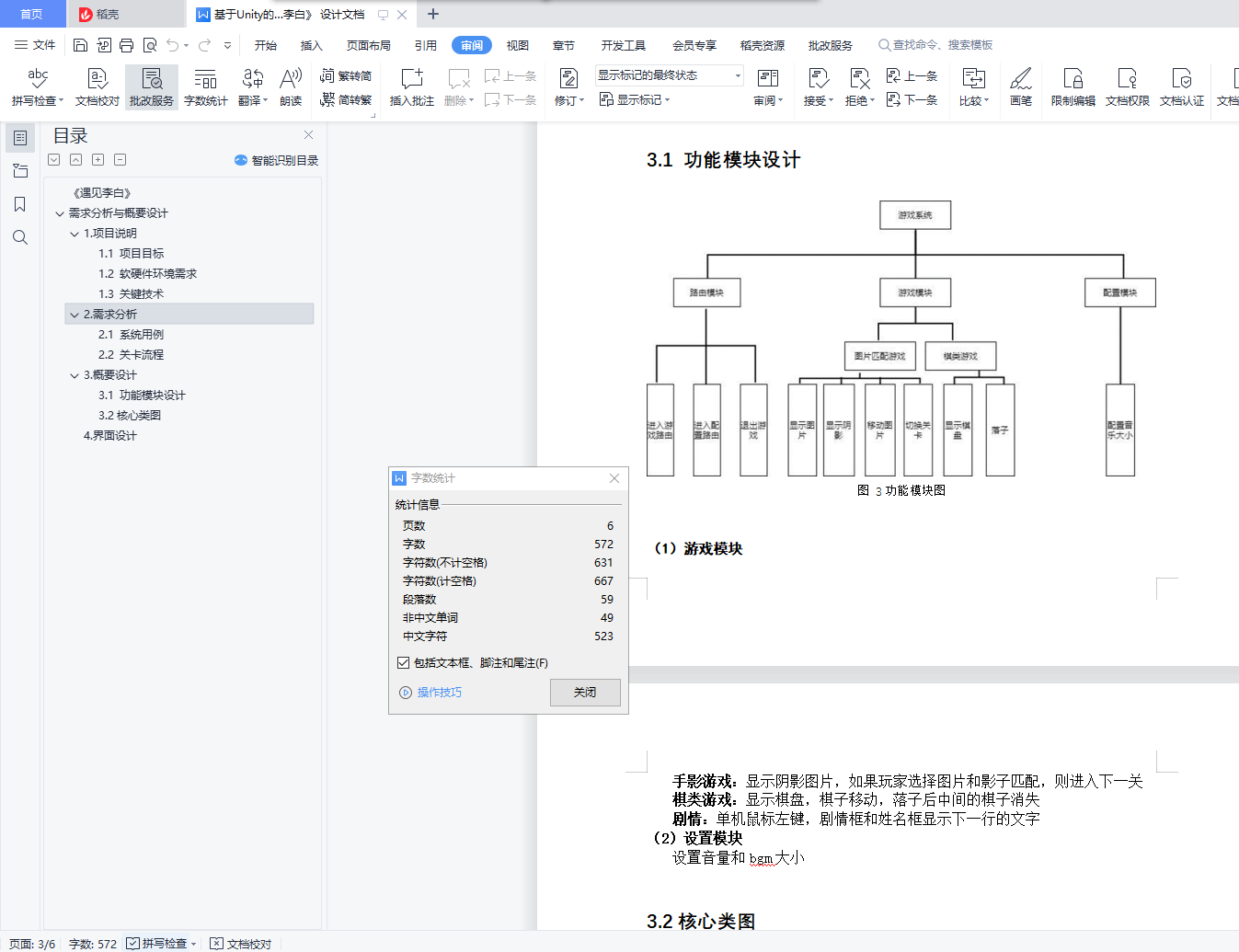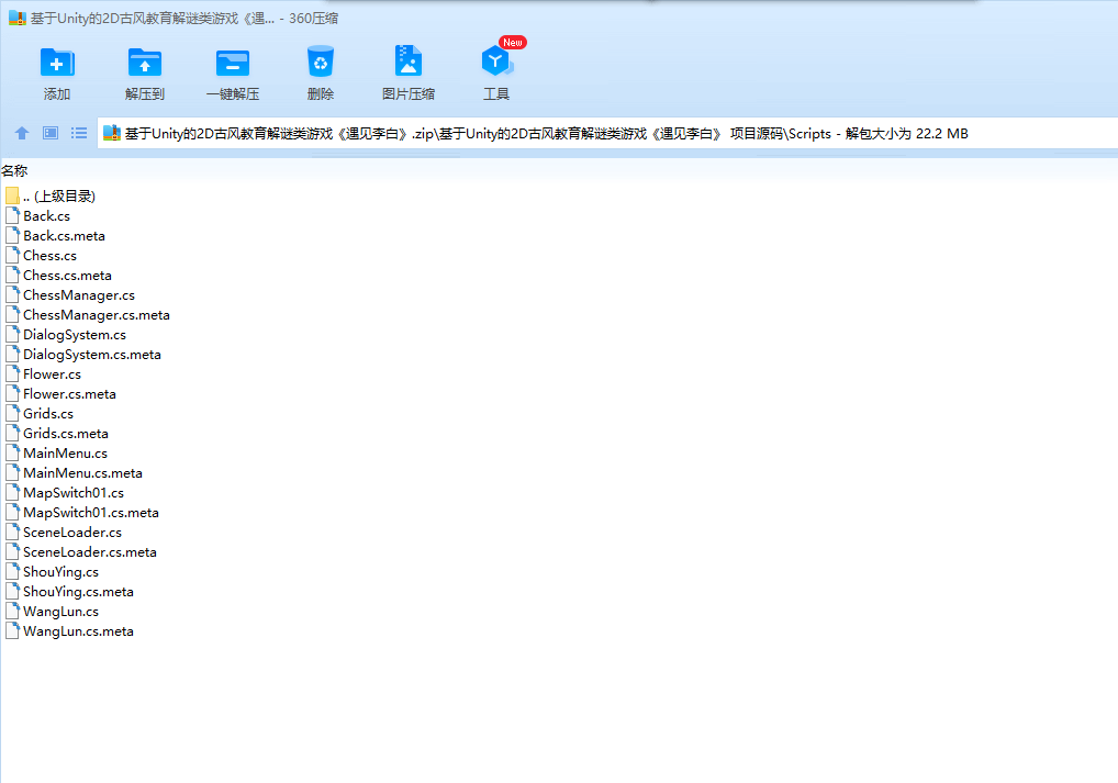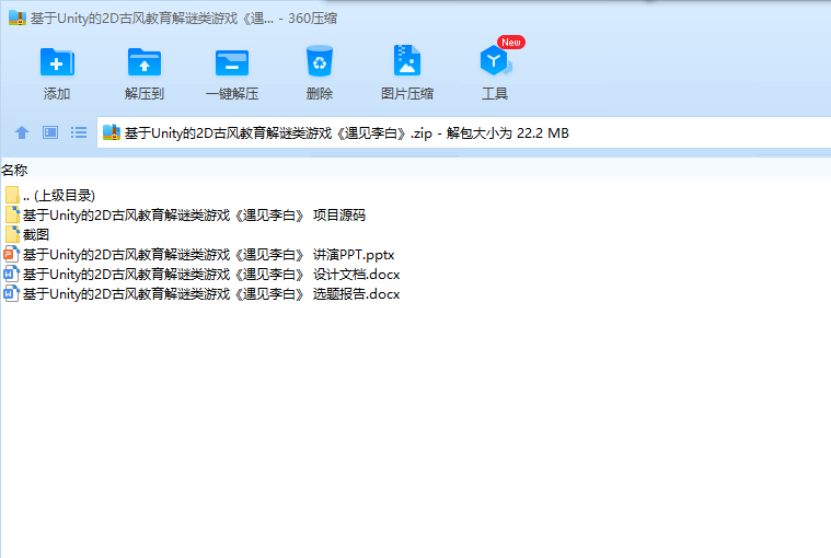 《遇见李白》目录《遇见李白》 1需求分析与概要设计 11. 项目说明 11.1 项目目标 11.2 软硬件环境需求 11.3 关键技术 22. 需求分析 22.1 系统用例 22.2 关卡流程 33. 概要设计 33.1 功能模块设计 33.2核心类图 44. 界面设计 5需求分析与概要设计1.项目说明1.1 项目目标本项目要实现的是一款2D古风教育解谜类游戏,将李白的生平作为线索,穿插其特定场景下创作的诗句,并与有趣的小游戏相结合,在游戏中使孩子们更加了解李白,改变玩家对于李白的刻板印象,关卡难度设计偏简单,以科教目的为主,不需要过多操作。考虑到时间及精力等因素,本项目仅完成2个大场景的Demo实现。1.2 软硬件环境需求操作系统:win10开发引擎:Unity编程软件:VS20191.3 关键技术基础场景构建及场景切换人物对话交互关卡2的数据结构设计及代码实现关卡1的代码实现