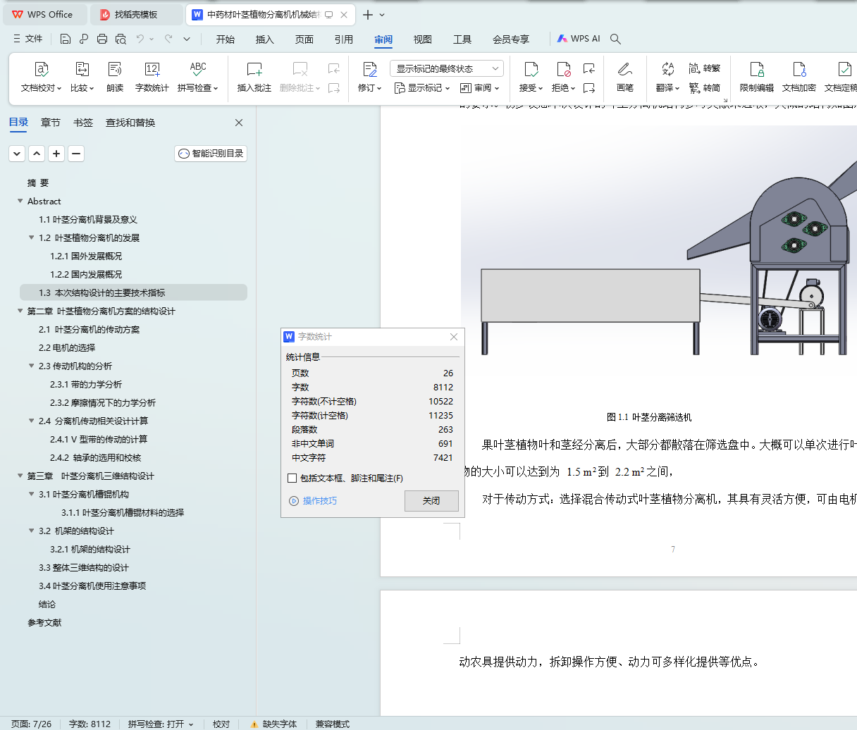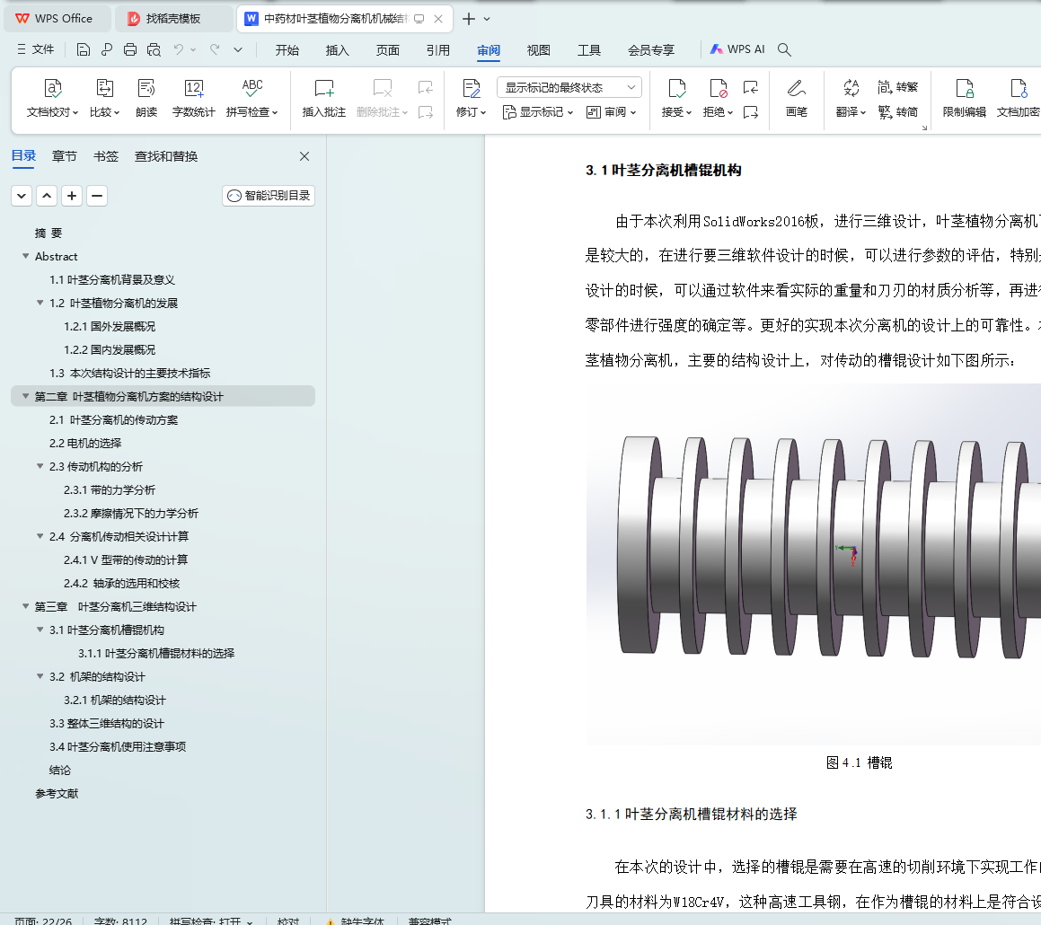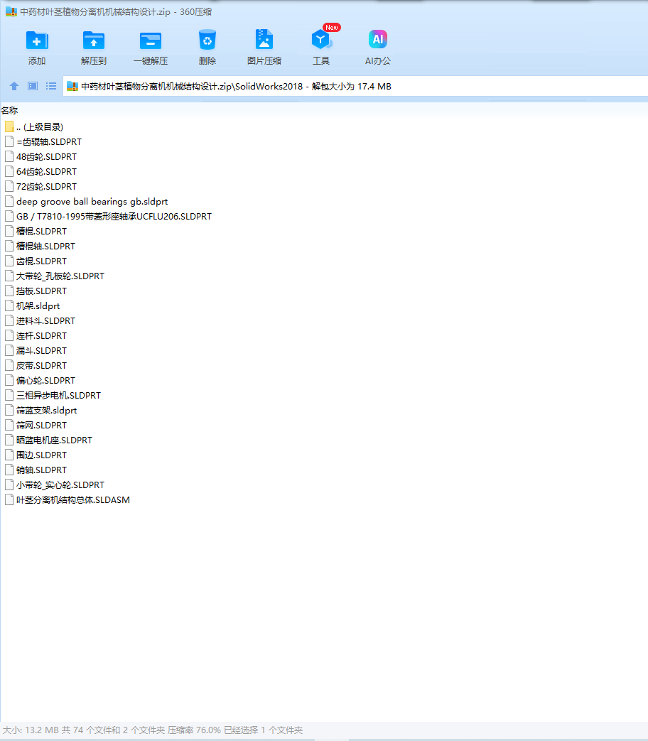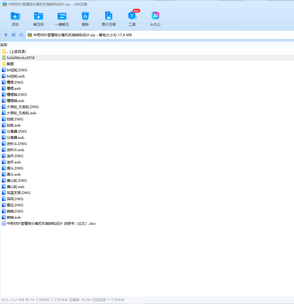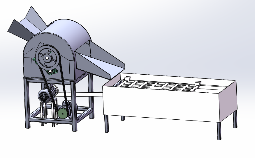 This design is the leaf stem separator, mainly for the structural design of the leaf stem separator, including the design of the feeding mechanism, the design of the drum structure, the selection of the transmission mode, the structural analysis and design of the separation device.
