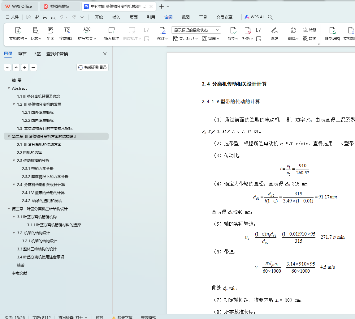2.4 分离机传动相关设计计算