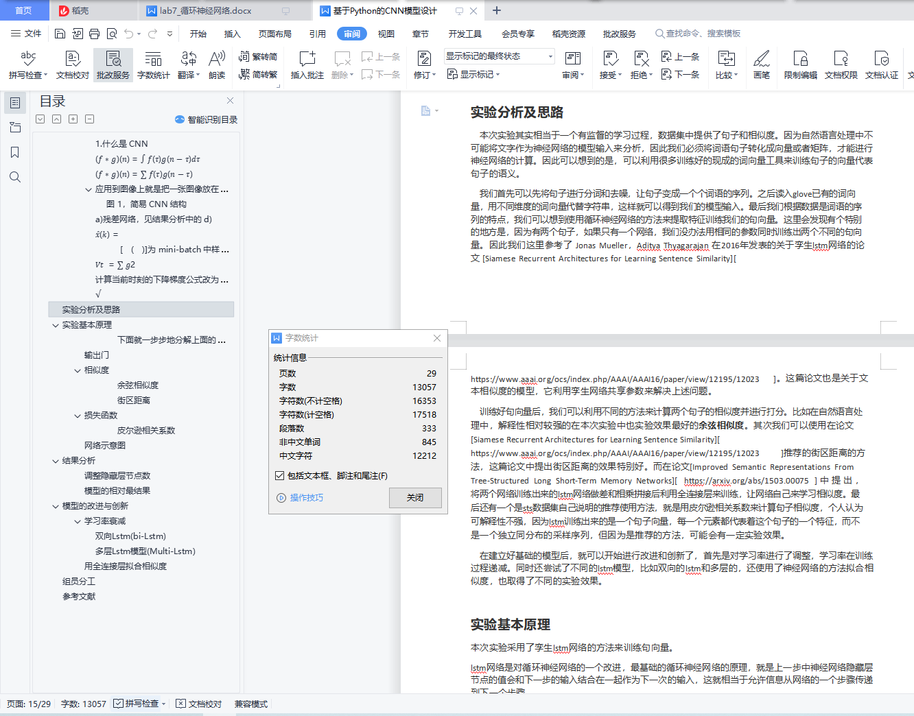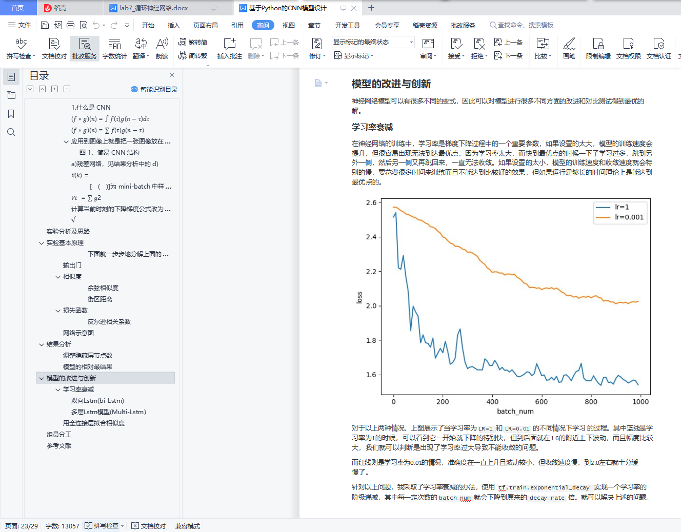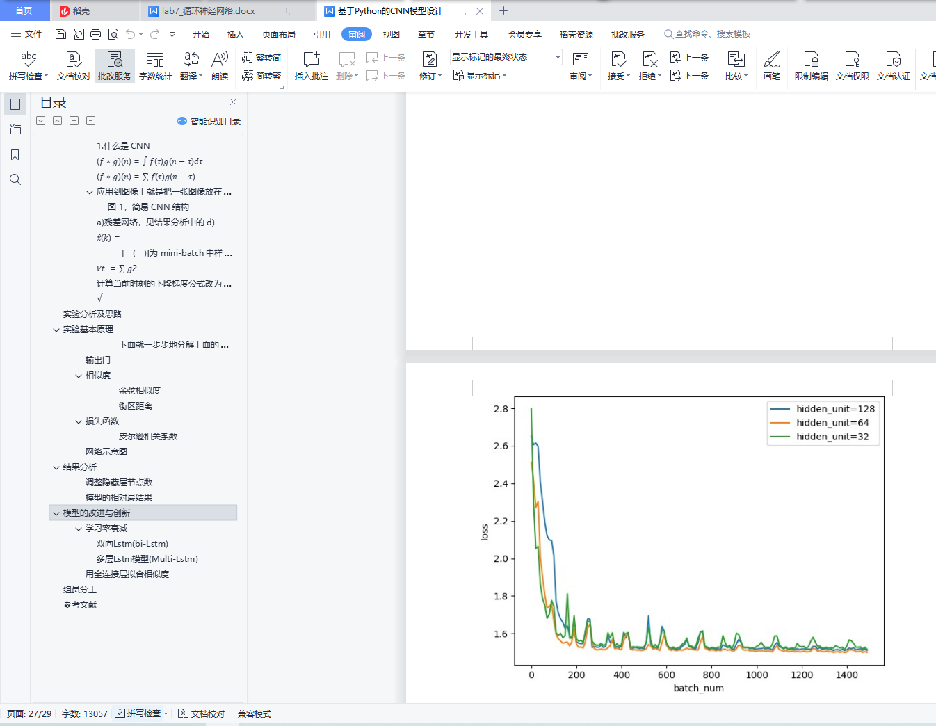 目录一、 CNN 模型原理 1CNN 模型 11. 什么是 CNN 22. 为什么要用 CNN 23. CNN 的内在原理 2a) 以人的神经系统识别陌生人脸为引。 2b) 卷积层的作用 3c) padding 的作用 3d) 池化层的作用 4二、 网络结构图 5三、 创新点 7四、 结果分析 7a) 有无 Batch Normalization[1] 7b) 使用不同 batch size 9c) 使用不同的优化器 10𝑡 11𝜏=1 11d) 使用残差网络[4] 13e) 多尺度检测 14f) 仿 FPN 的多尺度特征图融合、多尺度特征图预测 15数据预处理 17实验分析及思路 17实验基本原理 18遗忘门 20输入门 20Cell state(单元状态流) 20均方误差(MSE) 22结果分析 23调整batch_size大小 241. 随着数据集的海量增长和内存限制,一次性载入所有的数据进来变得越来越不可行 242. 训练速度太慢,没办法查看更新过程loss下降变化和参数的变化 24模型的改进与创新 27组员分工 32参考文献 32一、 CNN 模型原理CNN 模型1.什么是 CNN在数字图像处理中有一个称为“边缘检测”的技术,它用到了信号的卷积操作,使用 Sobel 算子和原图像做卷积,得到的结果就是反映原图像的边界的。 受该启发,我们可以通过设计特定的卷积核,让它跟图像做卷积,就可以识别出图像中的某些特征。我们的 CNN 主要就是通过一个个的卷积核,不断地提取特征,从局部的特征到总体的特征,从而实现图像识别等功能。而我们应该怎样去设计卷积核呢?这在数字图像处理中也是一个难题,不同的卷积核就会提取到不同的特征,而我们可能不知道应该提取哪些特征。但是结合了神经网络以后,我们就不用去考虑卷积核如何设计了,因为各个卷积核的参数都是通过神经网络自己学习得到的,这就是 CNN 的思想。CNN 一般包含卷积层、池化层和全连接层,下面会给出解释。2.为什么要用 CNN权值共享。考虑32 × 32 × 3的一张 RGB 图像,即输入层有32 ∗ 32 ∗ 3 = 3072维,若隐藏层与输入层的维数一样,则输入层到隐藏层的全连接参数个数为 3072 ∗ 3072 = 9,437,184维,数目非常大,难以训练。假设使用卷积后隐藏层的每个神经元只和输入层的 5×5 个像素相连,则参数个数变为3072 ∗ 25 = 76,800, 对比全连接的情况大大减少了参数个数,易于训练。局部连接。局部连接使网络可以提取数据的局部特征,再结合池化操作实现了数据的降维,将低层次的局部特征组合成为较高层次的特征。最后再通过全连接层把卷积网络提取到的所有局部特征综合起来,得到一个全局的特征,则该全局特征既考虑了图像的各个局部细节,又考虑了图像的整体轮廓,所以有很好的识别效果。