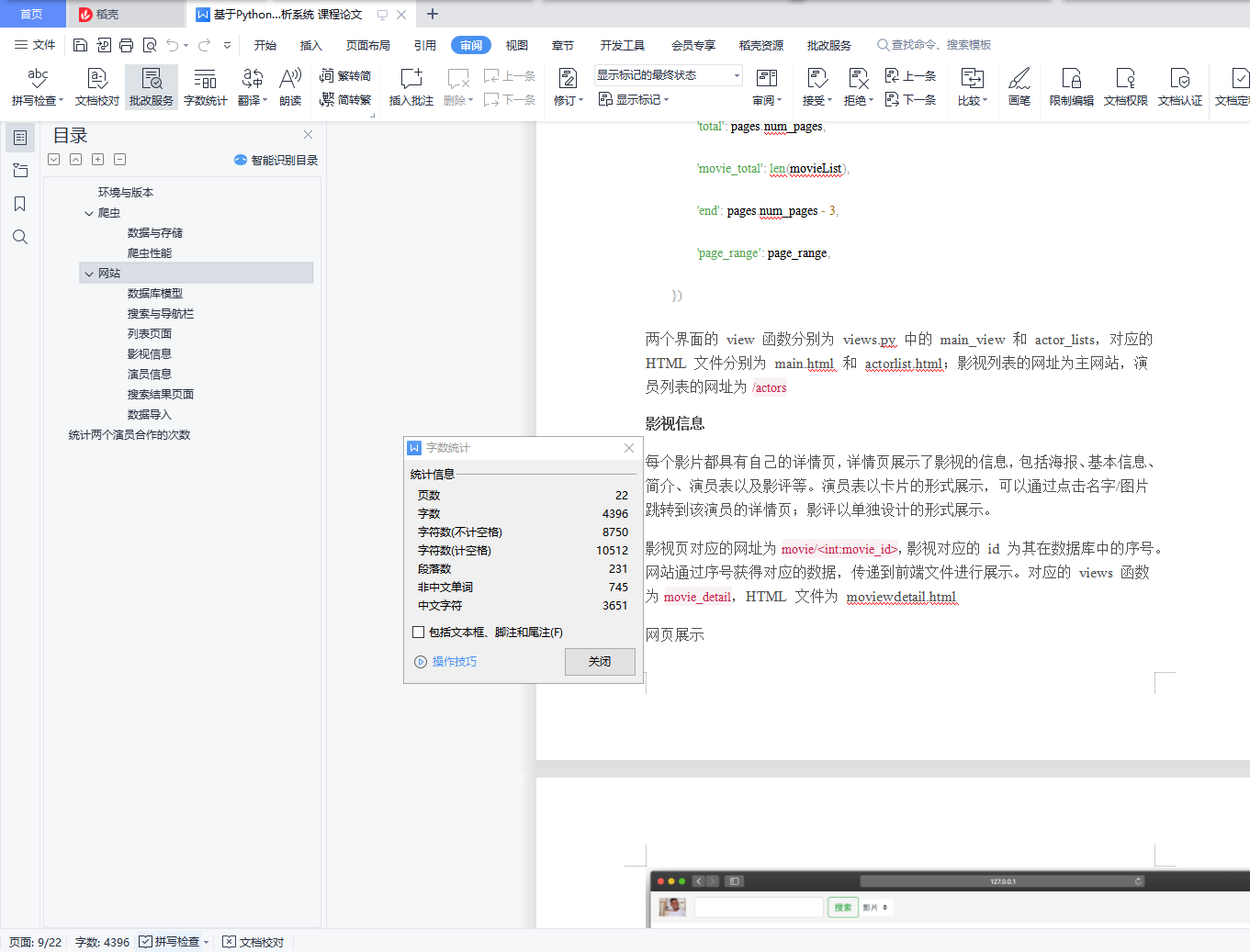目录环境与版本 1爬虫 1网站 4统计两个演员合作的次数 22环境与版本1.python 版本:3.8.52.Django 版本:3.0.33.网站已在 Safari、Opera、Chrome 浏览器中测试兼容爬虫爬虫以豆瓣电影为源网站爬取影视、演员和影评数据,共爬到 1066 部影视、5327 条影评以及 6596 位相关演员。数据与存储对于每部影视,从豆瓣网中爬取了影视标题、海报图片、影视简介、演员列表、5 条短评以及包括语言、发行时间等在内的其他信息。爬取下来的文字图片分别以 JSON 和 jpg 的格式保存在文件夹中。文件标题为影视的题目。以下文件为例,title、actors、brief、other、comment 分别储存了影视的标题、爬取的相关演员、影视简介、其他信息以及 5 条评论。{"title": "2001太空漫游 2001: A Space Odyssey","actors": ["凯尔・杜拉","加里・洛克伍德","威廉姆・西尔维斯特","丹尼尔・里希特","雷纳德・洛塞特","罗伯特・比提","肖恩・沙利文","艾德・毕肖普","格伦・贝克","艾伦・吉福德"],"brief": "\n 这部影片是库布里克花了四年时间制作的充满哲学命题的鸿篇巨制。一块大黑石树立在史前人类的面前,他们刚刚开始认识工具,进入到进化的里程碑。同样的黑石还在宇宙多处出现,它们矗立在月球上,漂浮在太空中,带着某种神秘的寓意。\n \n 现在的时间是2001年,为了寻找黑石的根源,人类开展一项木星登陆计划。飞船上有冬眠的三名宇航员,大卫船长(凯尔・杜拉 Keir Dullea饰)、富兰克飞行员(加里・洛克伍德 Gary Lockwood饰),还有一部叫“HAL9000”的高智能电脑。HAL在宇宙飞行过程中发生错乱,令到富兰克和三名冬眠人员相继丧命,剩下波曼和这台电脑作战。\n \n 从死亡线上回来的大卫一气之下关掉主脑系统,HAL彻底失效。现在,茫茫宇宙中只剩大卫一人,向木星进发。穿越瑰异壮观的星门,大卫仿佛去到一个奇特的时空,那里有人类无尽的生死轮回和宇宙的终极知识……\n ",